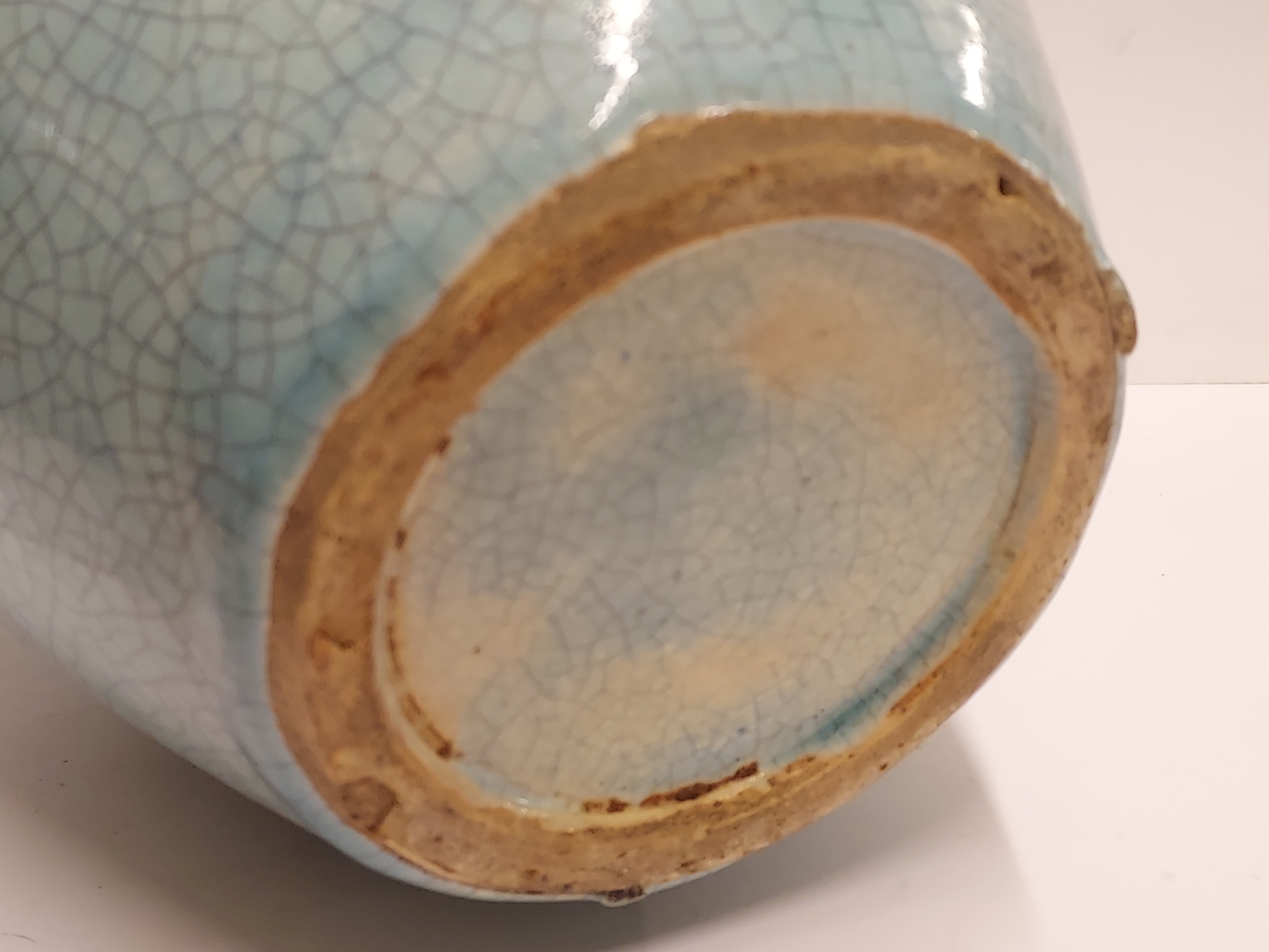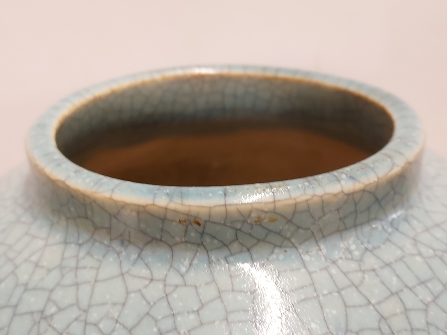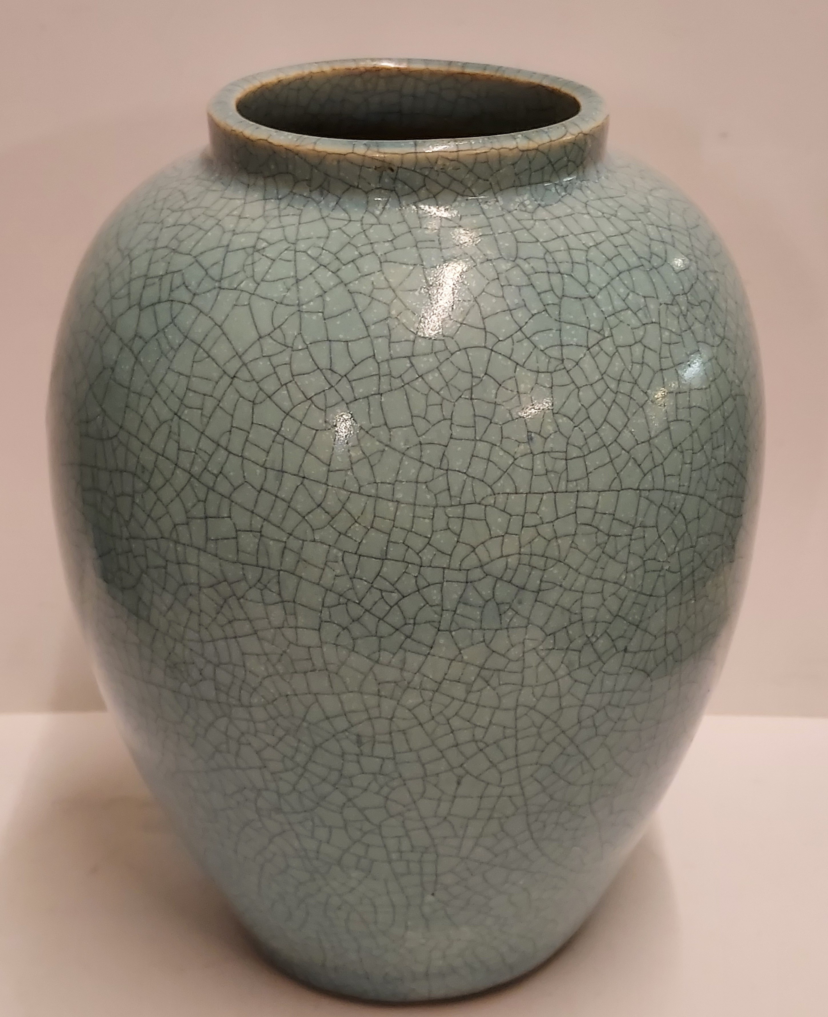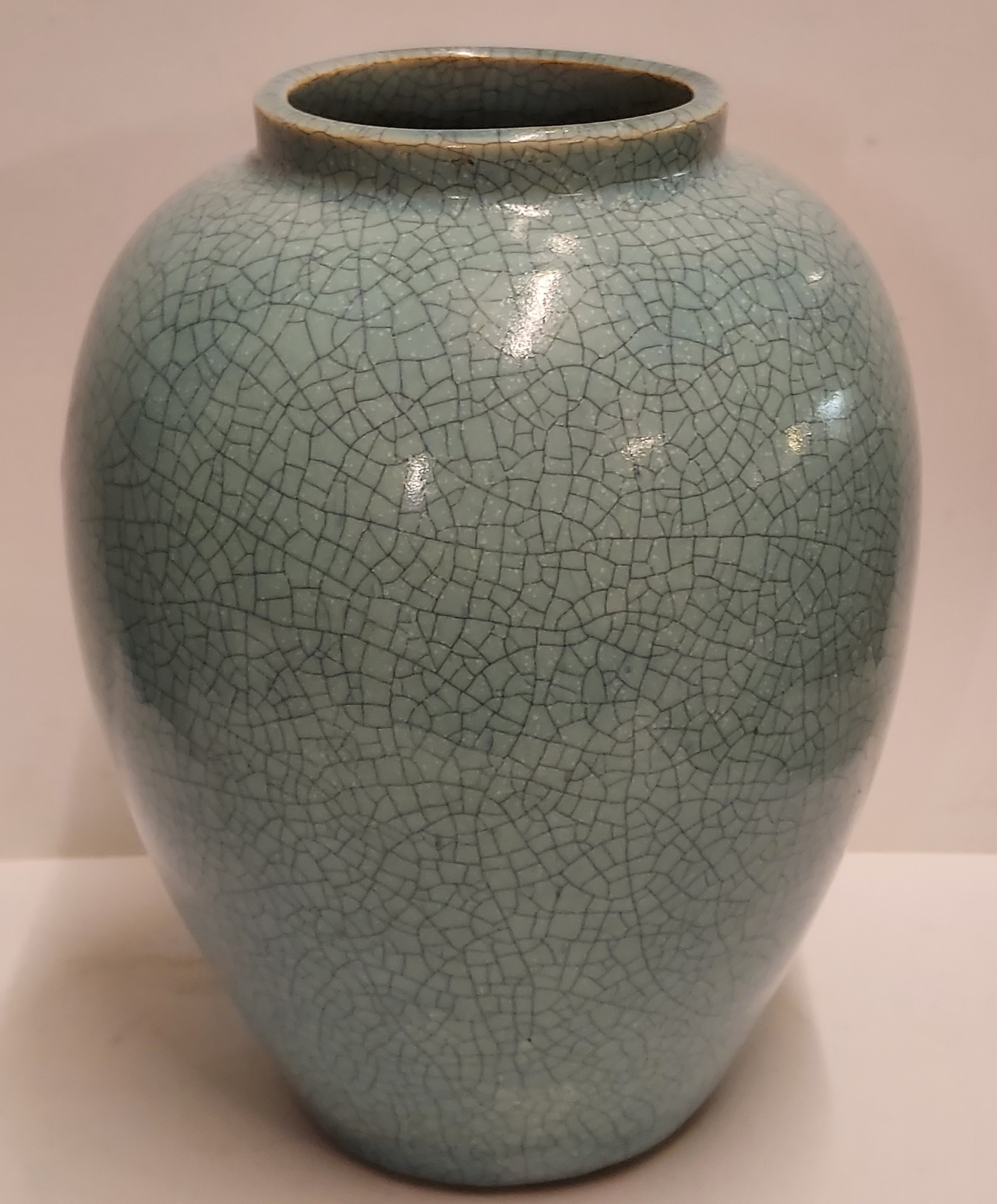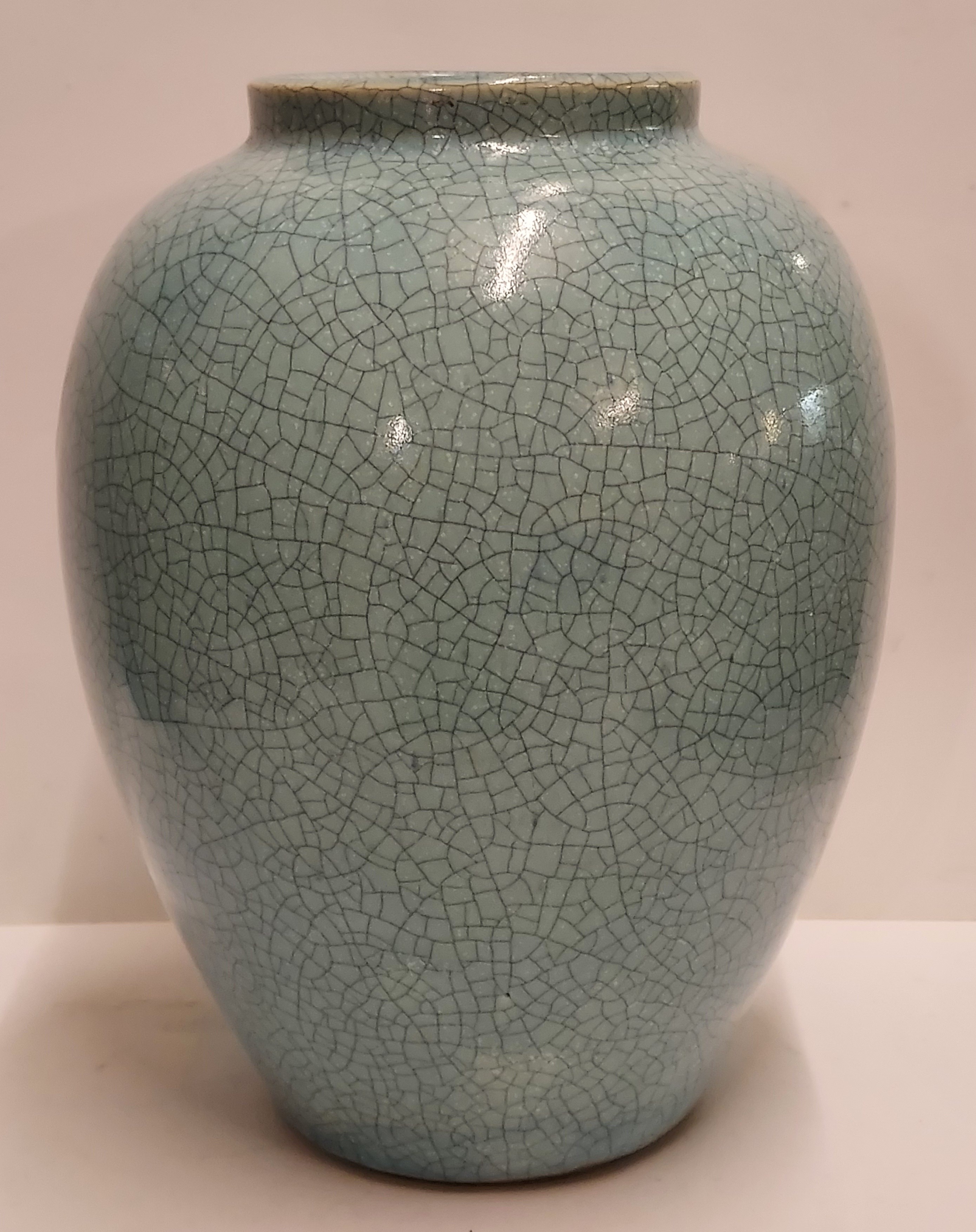 Grande vaso con smalto craquelé azzurro chiaro. Non firmato.