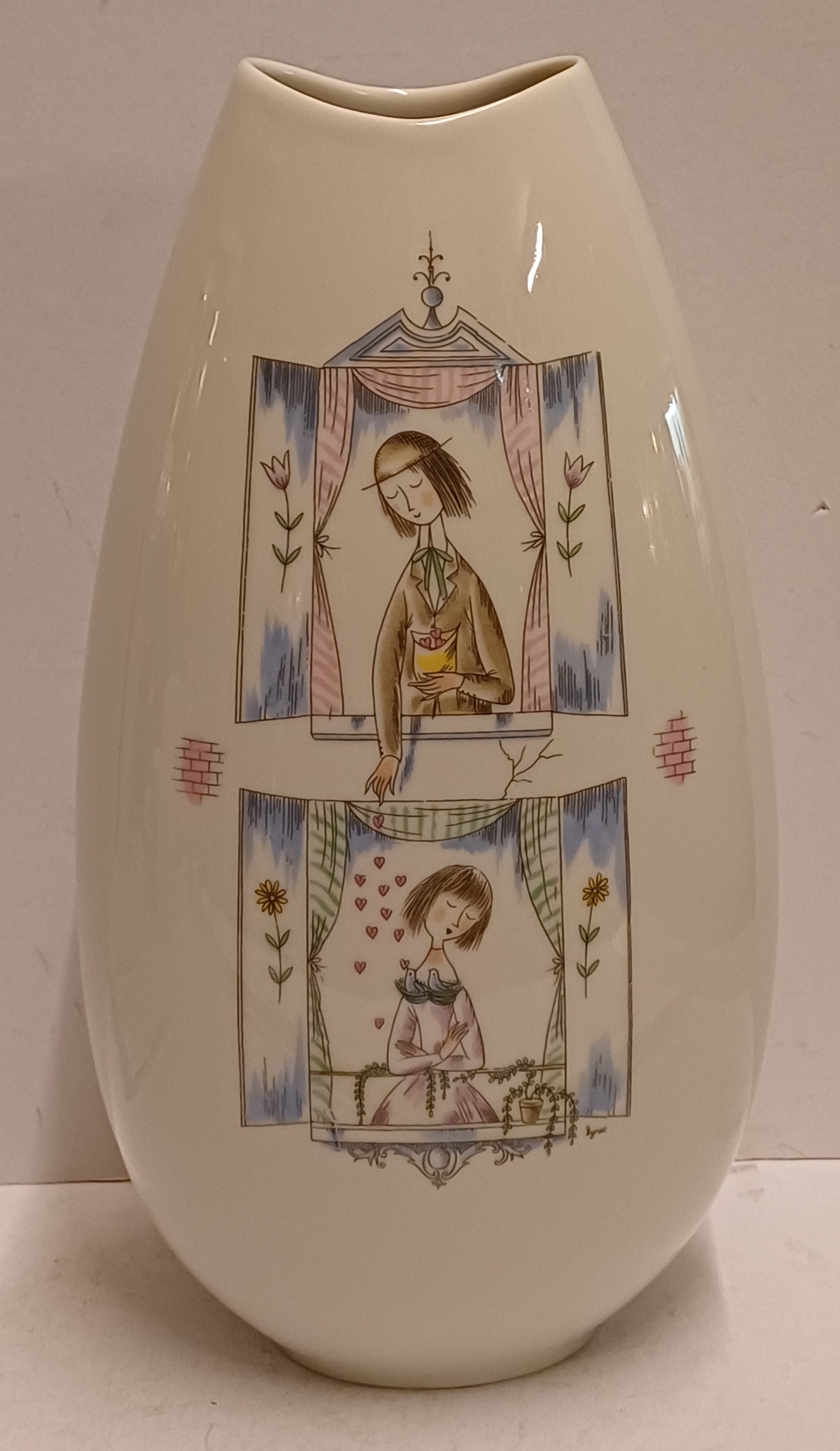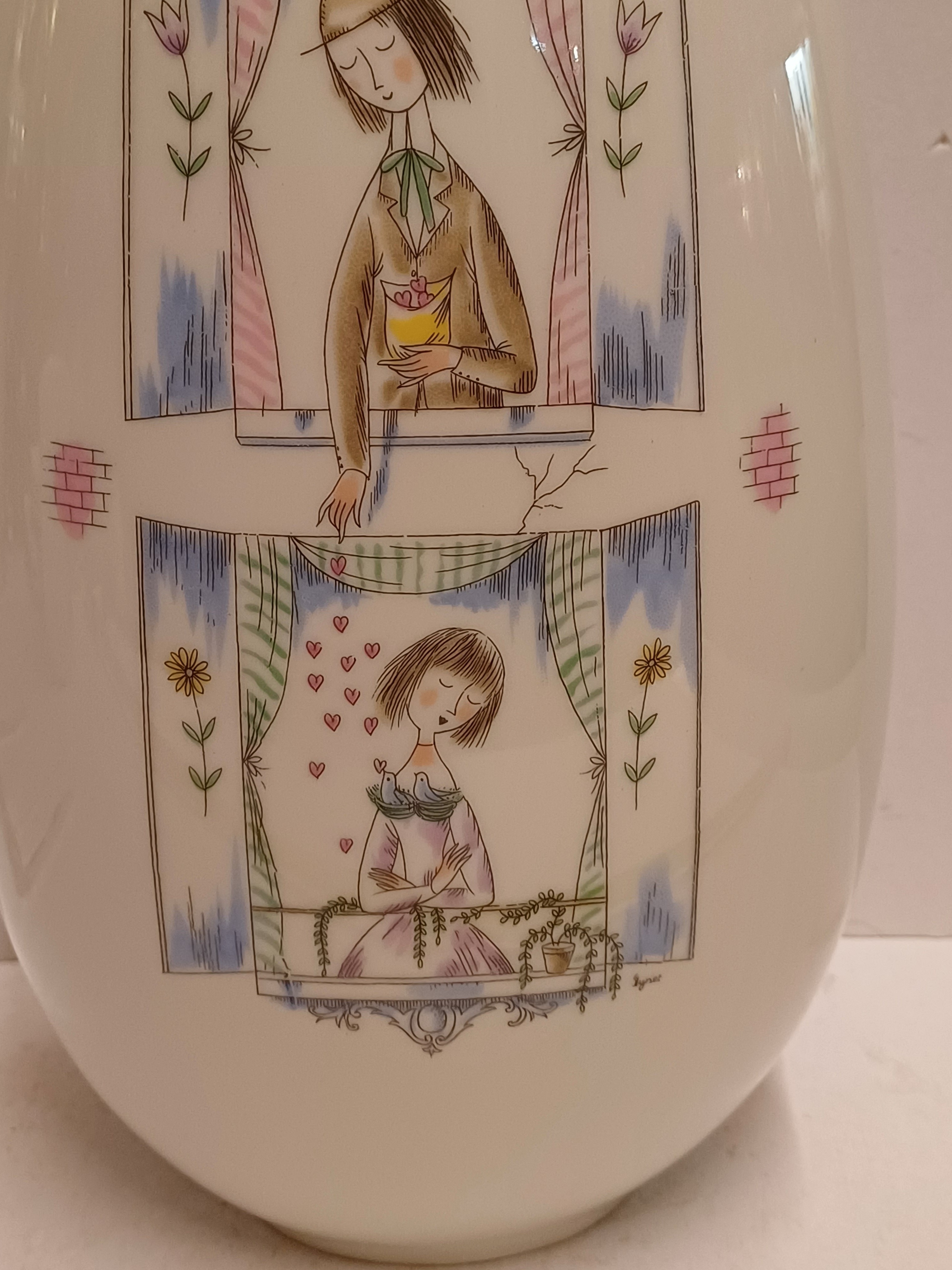 Grande vaso con raffigurazione di una coppia innamorata. Parte inferiore con marchio di fabbrica.