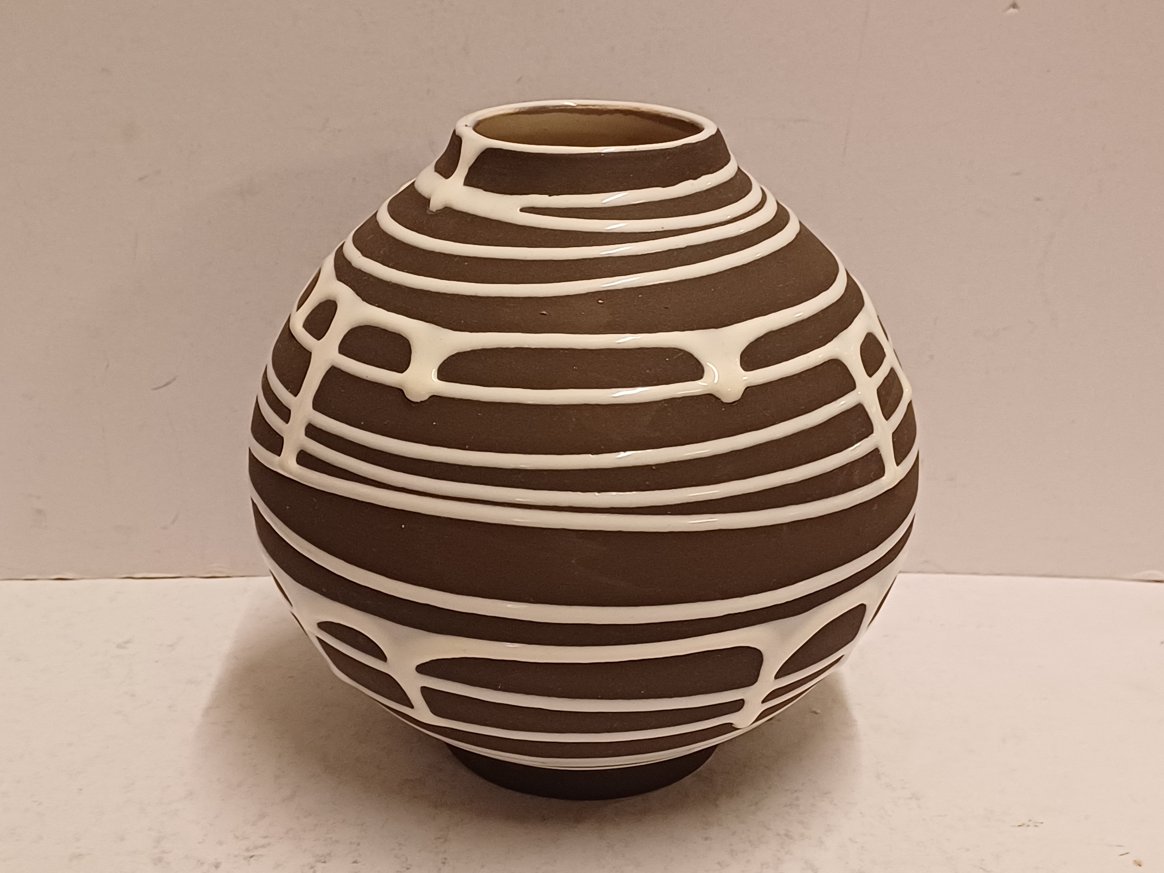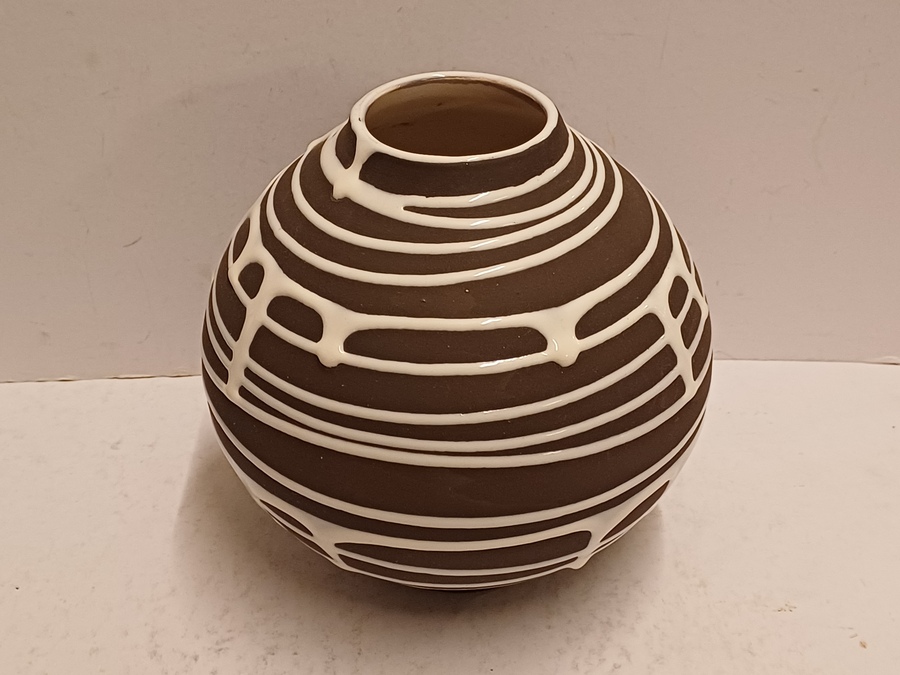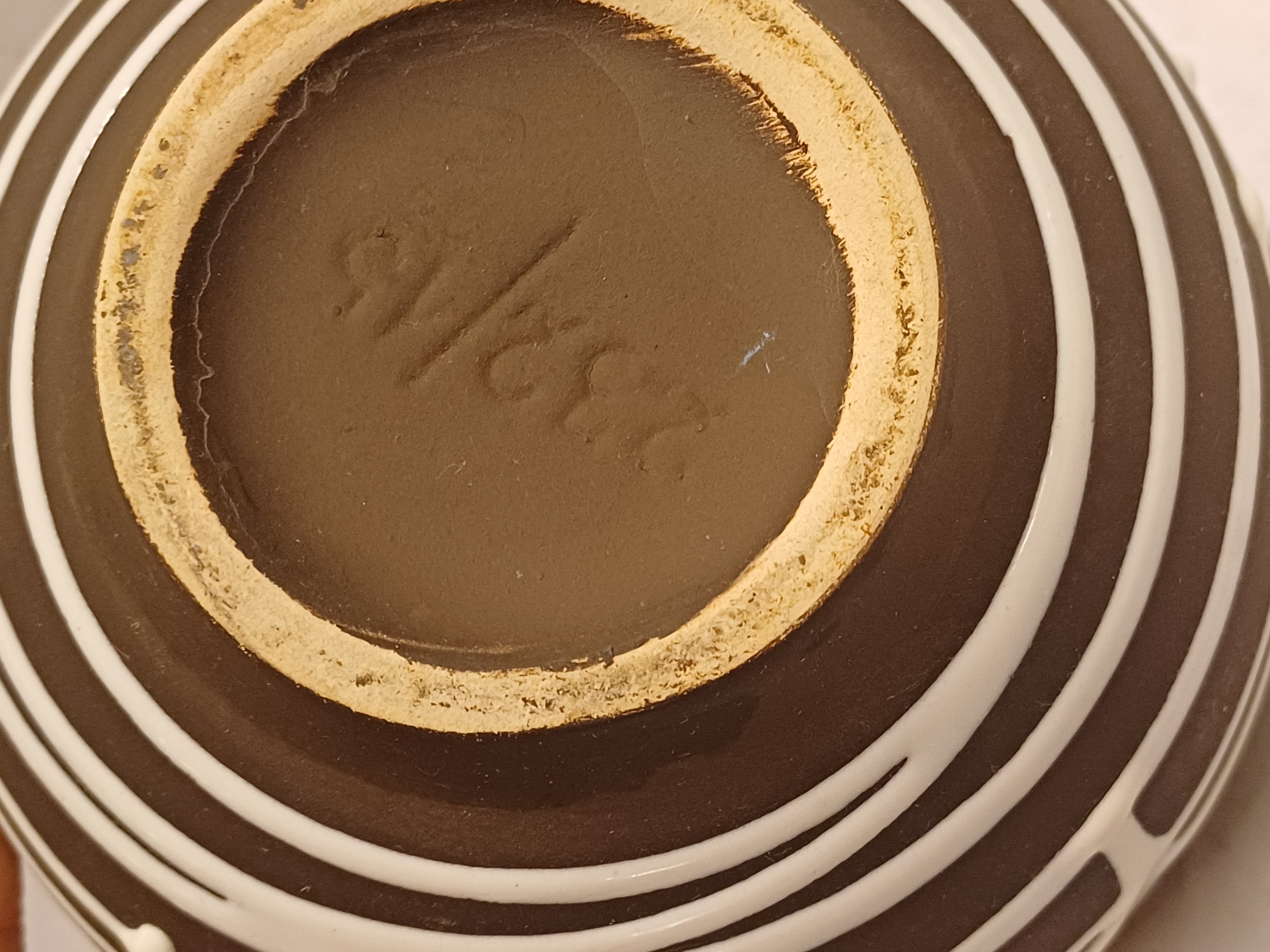 Gegoten vaas met decoratie Roulette. Ontwerp Liesel Spornhauer voor Schlossberg. Onderzijde met modelnummer.