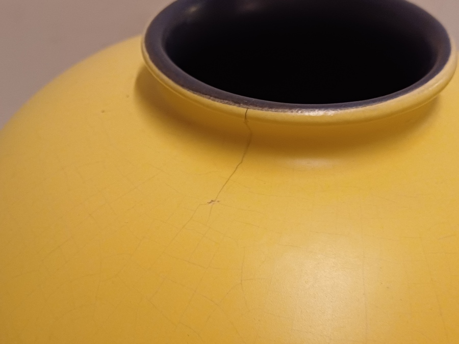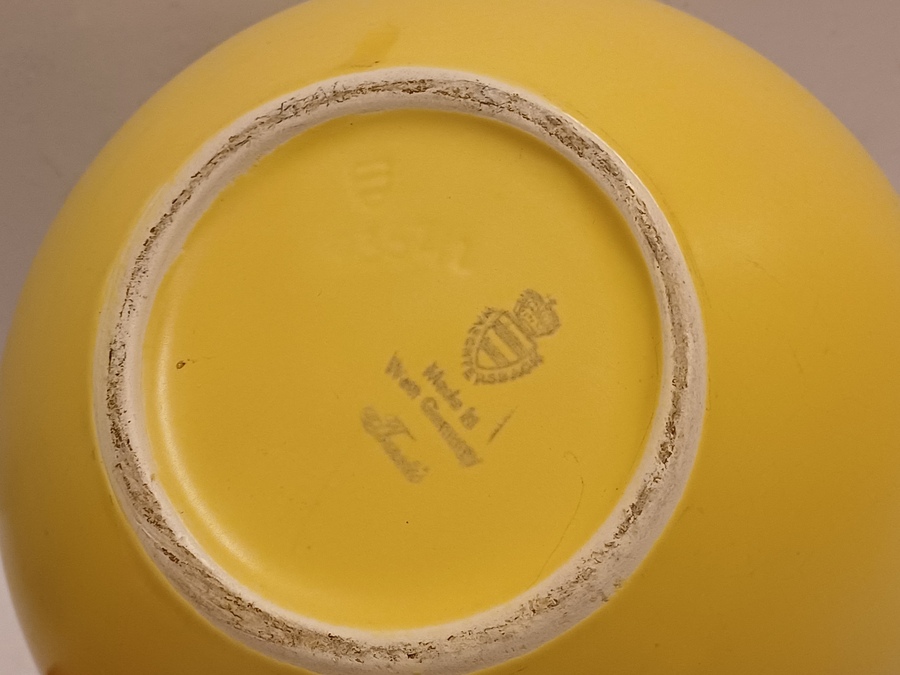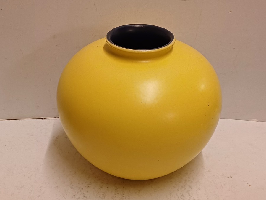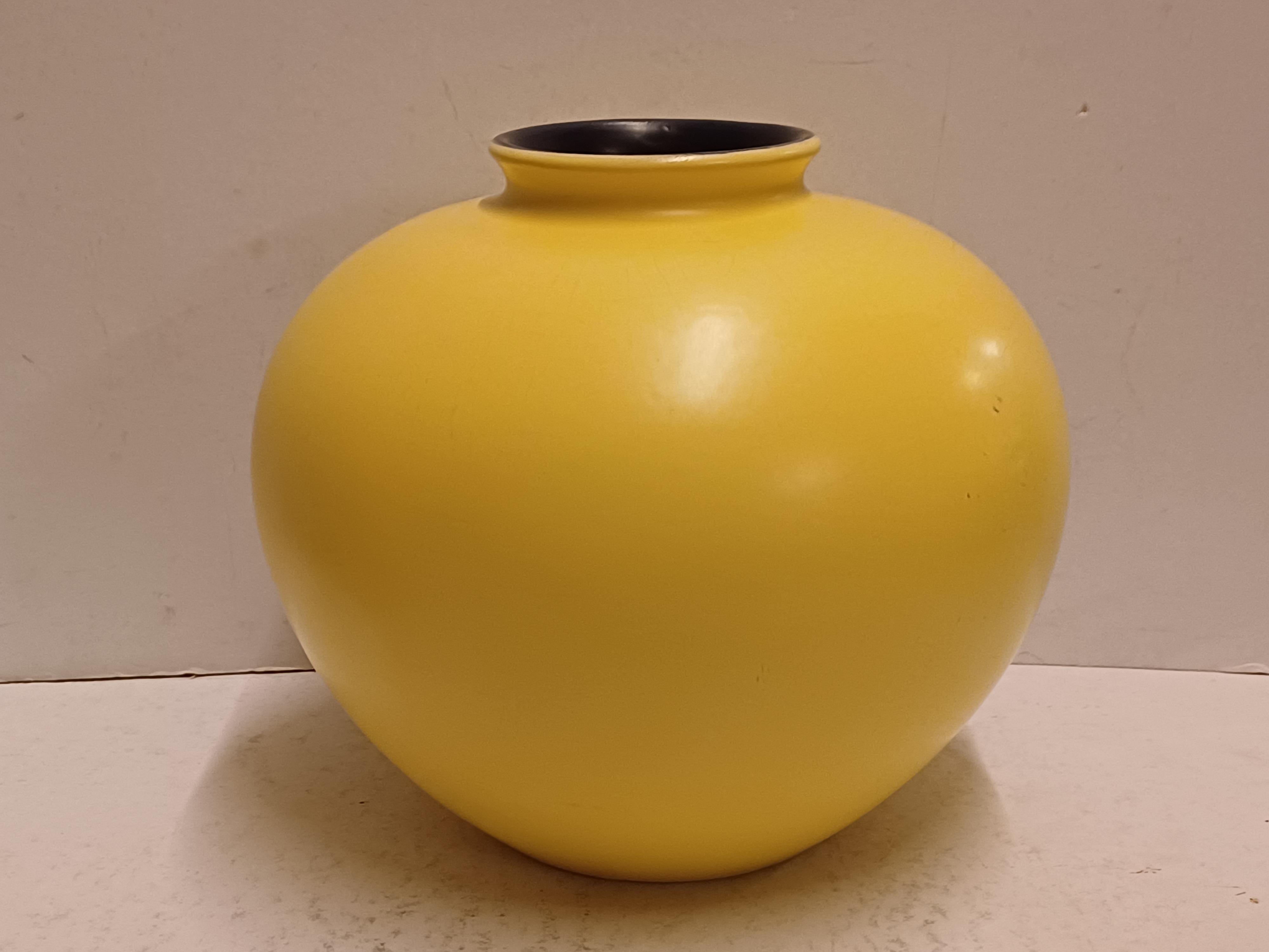 Vaas met gele spuitglazuur en zwarte binnenzijde. Decornaam Taxis, onderzijde met fabrieksmerk.