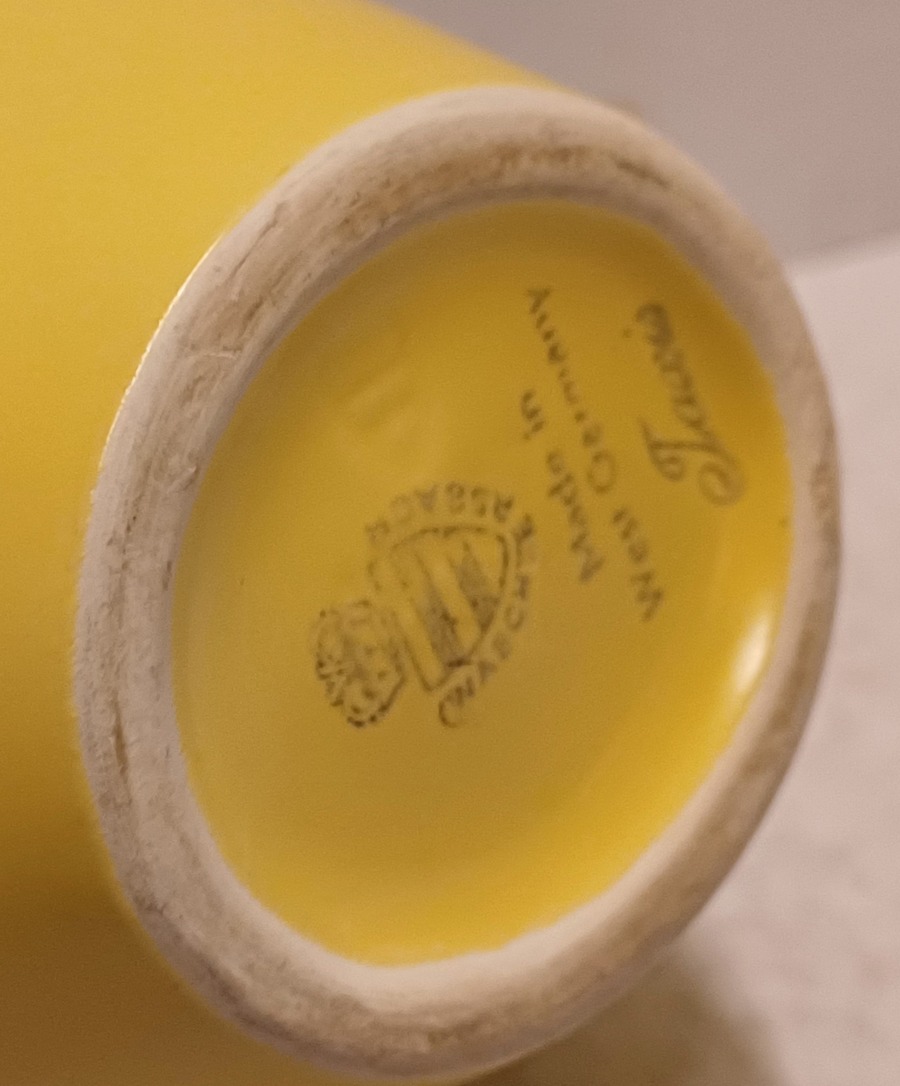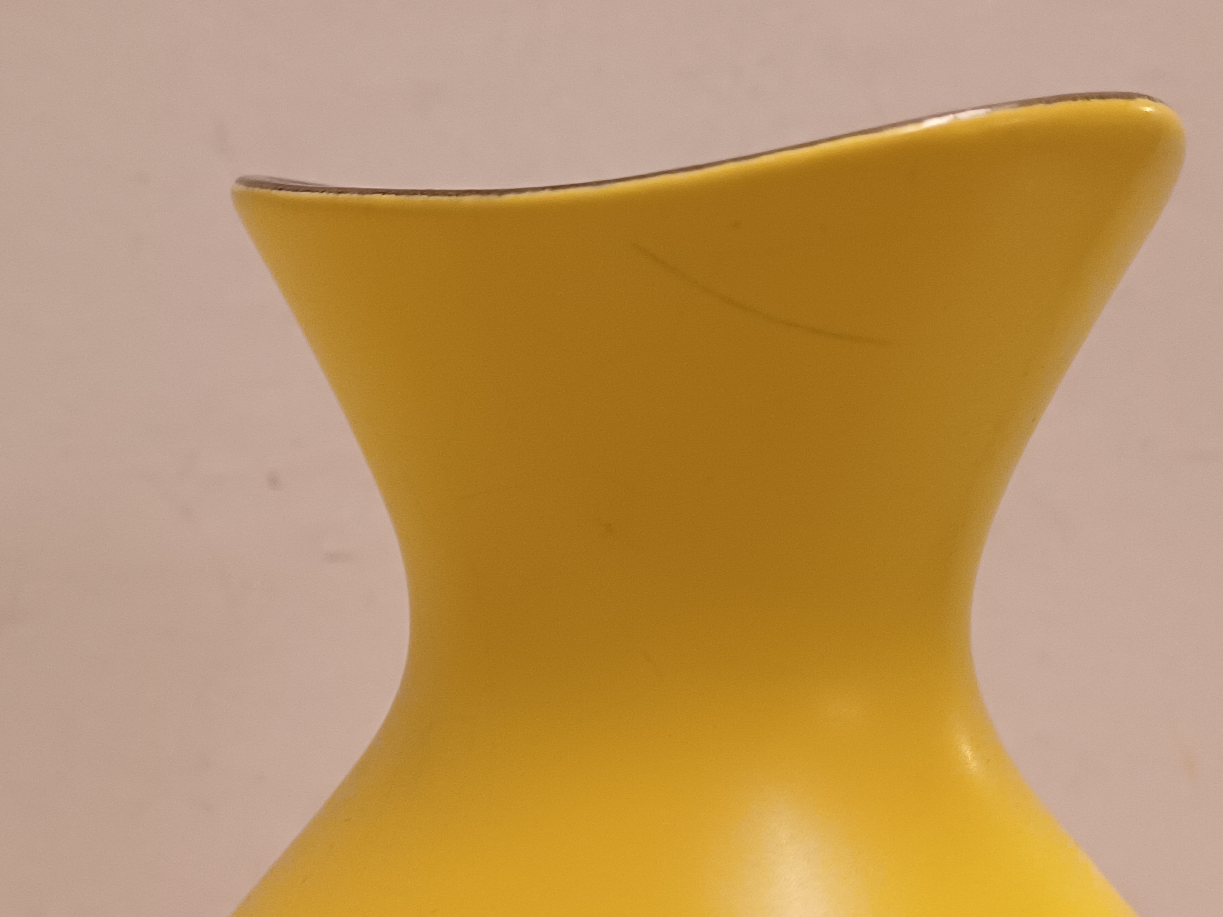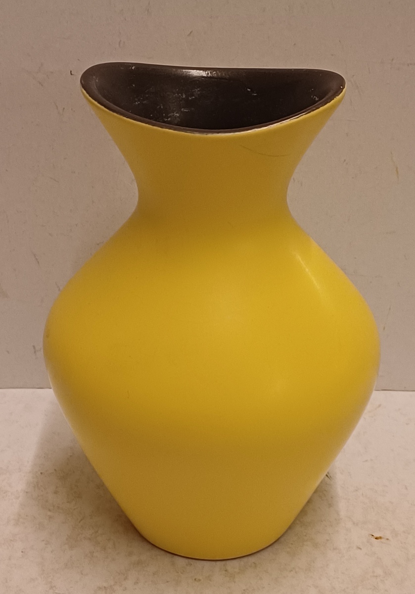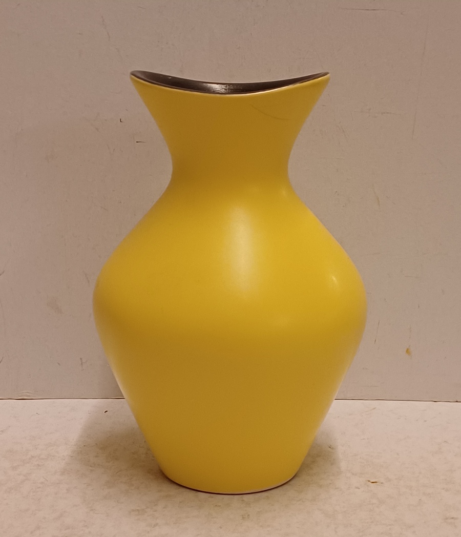 Vaas met gele glazuur en zwarte binnenzijde. Decornaam Taxis, onderzijde met fabrieksmerk