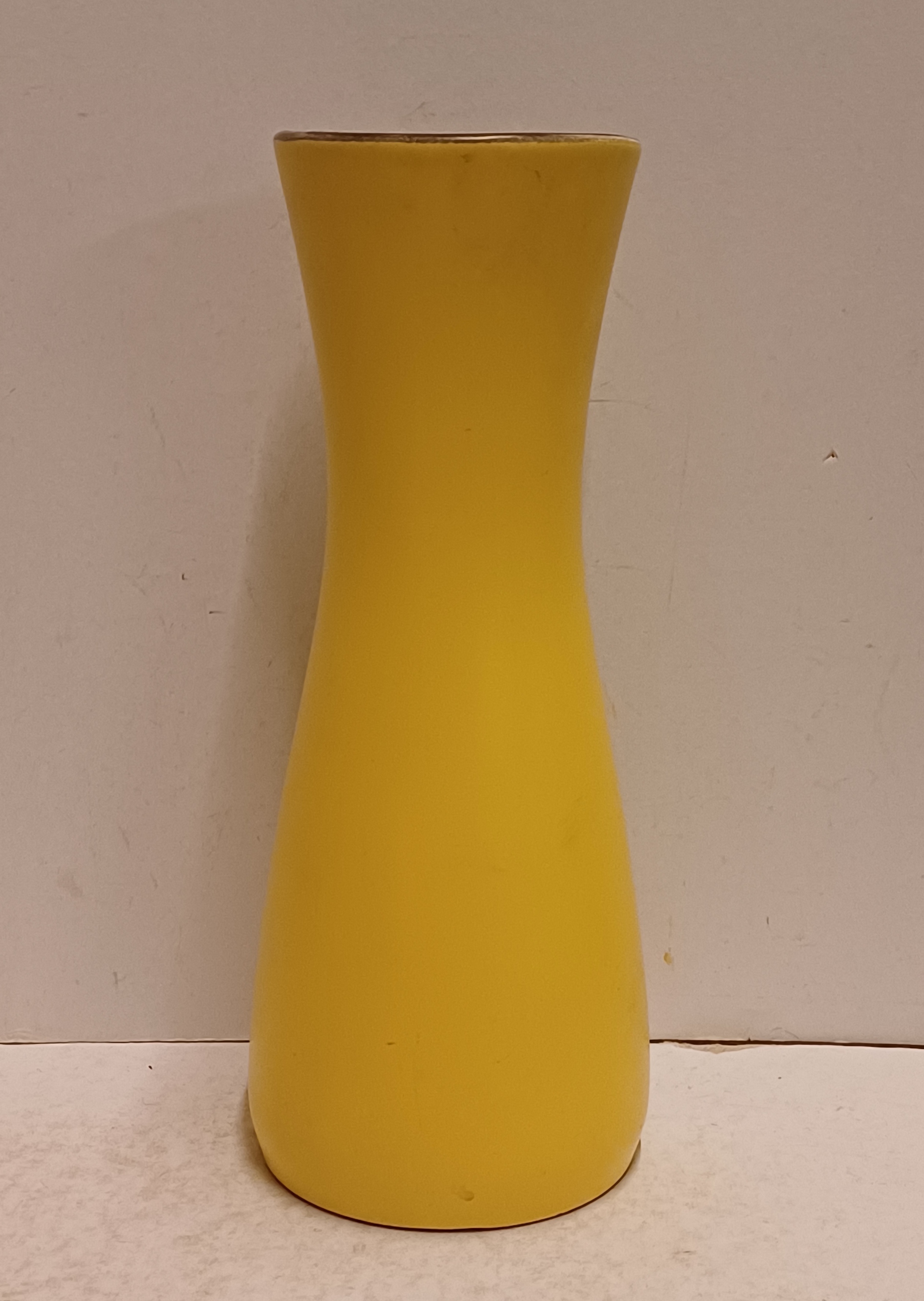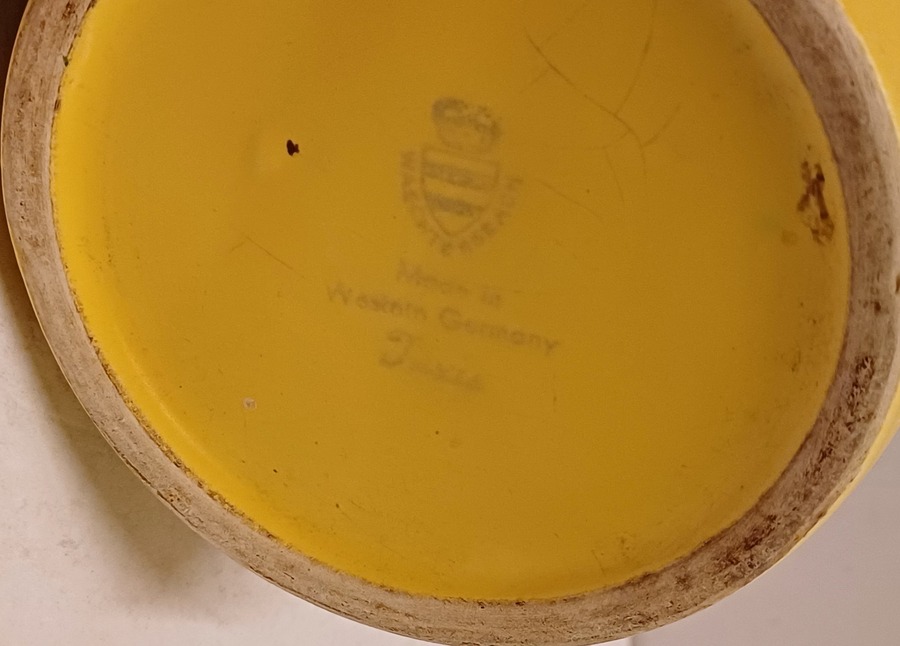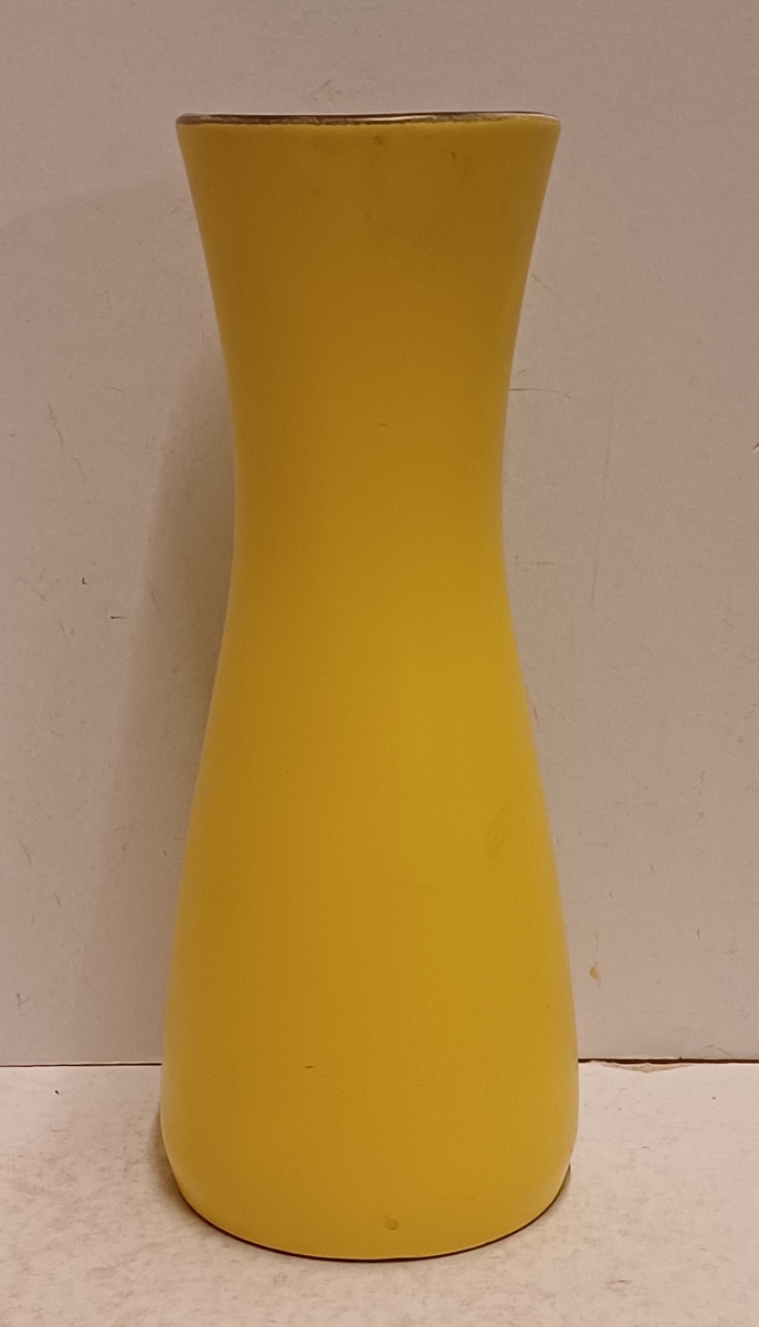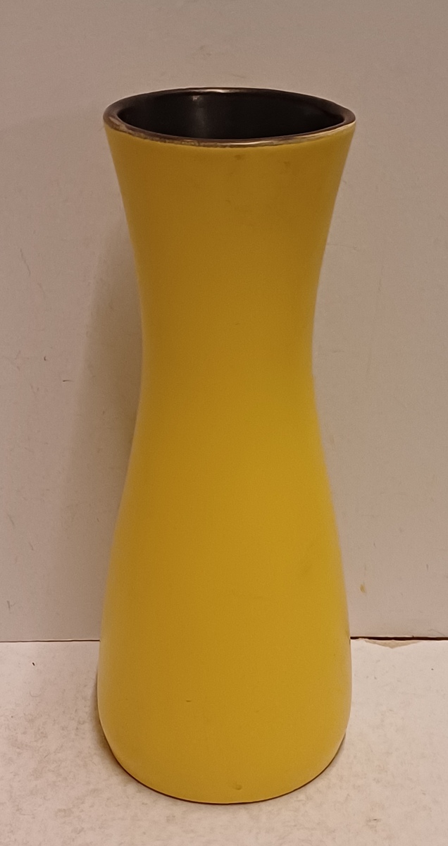 Vaas met gele glazuur en zwarte binnenzijde. Decornaam Taxis, onderzijde met fabrieksmerk