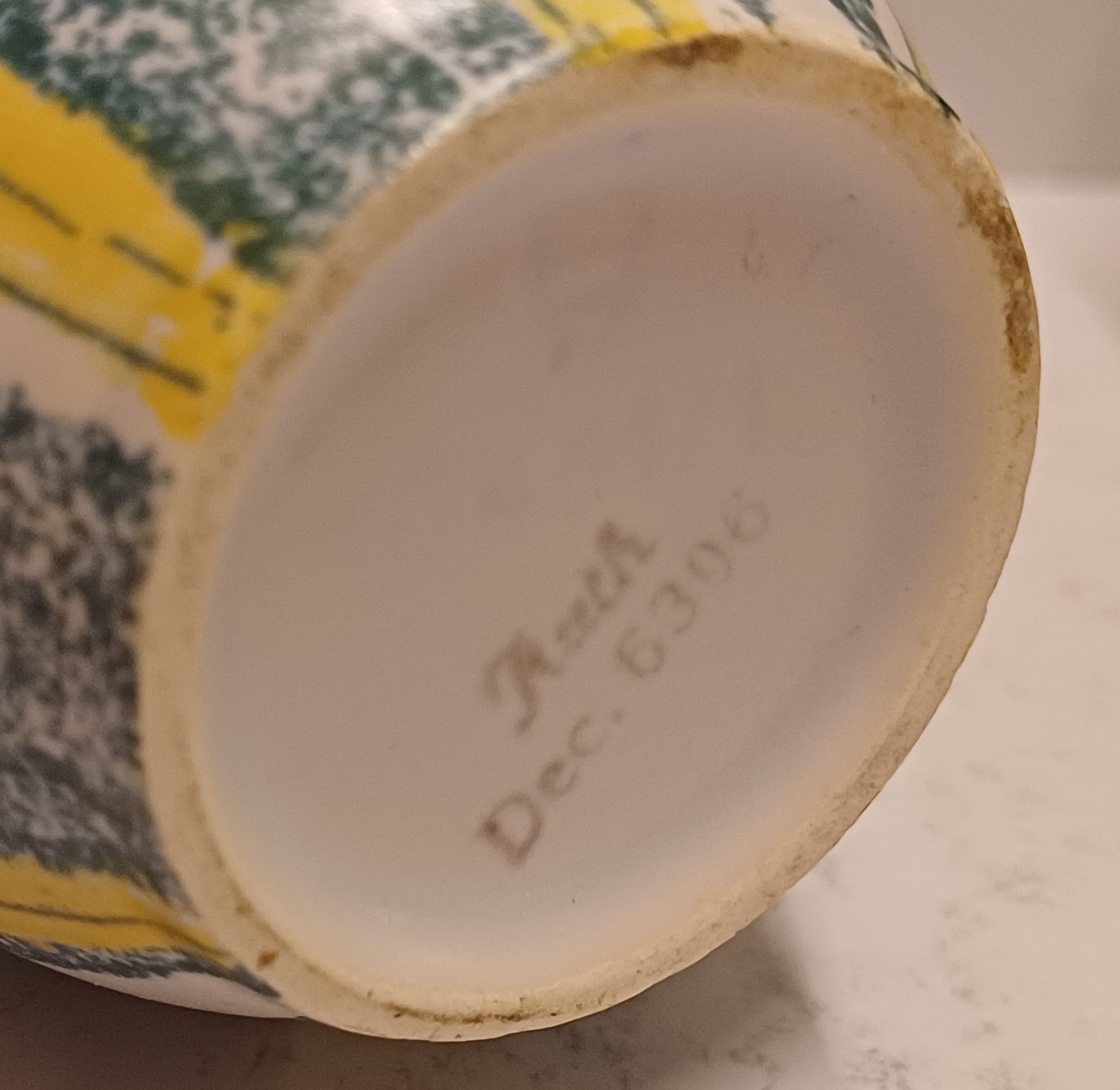 Fifties vaas van Waechtersbach Met decoratie 6306 Ruth. Ontwerp decor en vorm Ursula Fesca. Onderzijde met fabrieksmerk