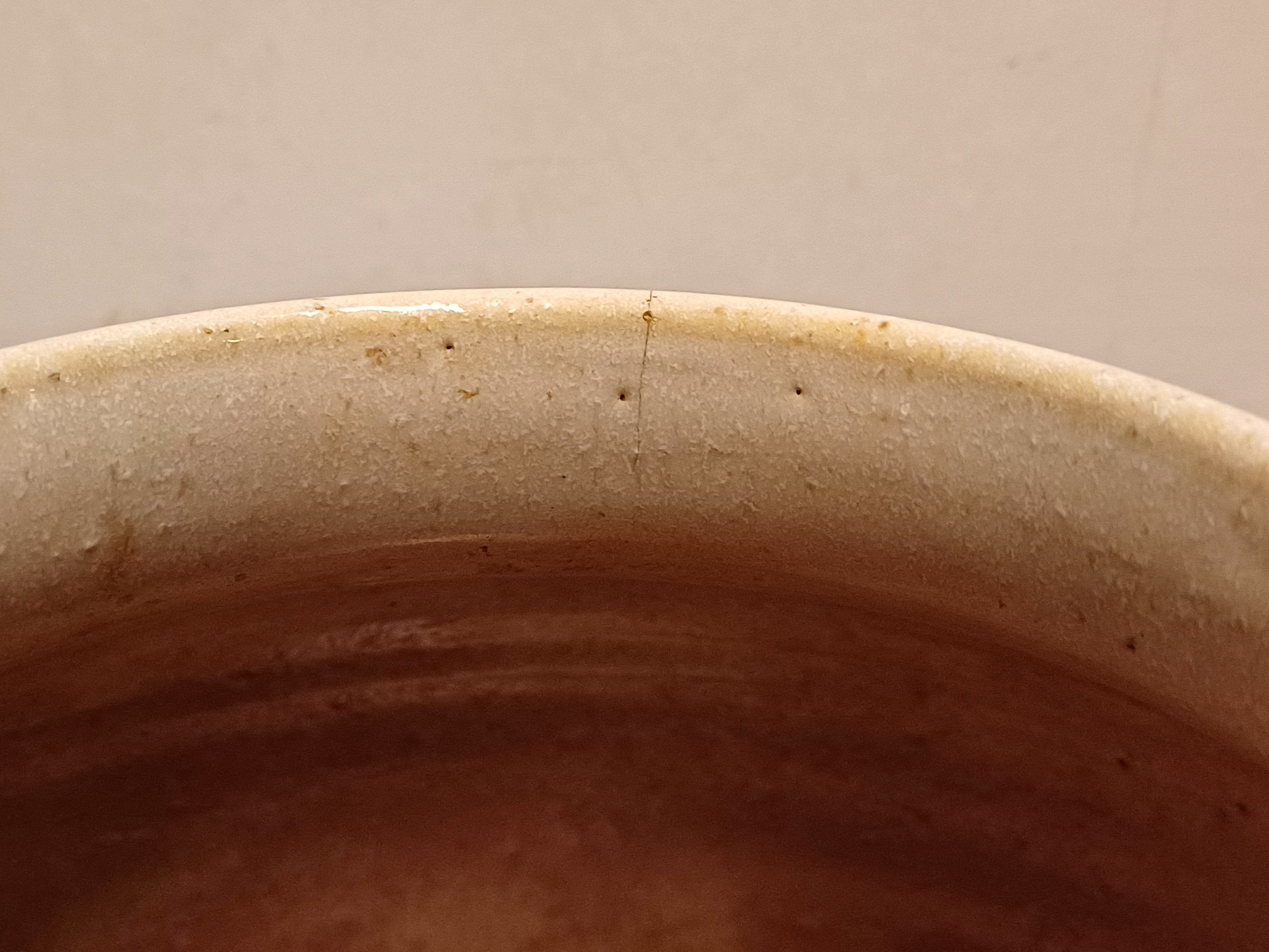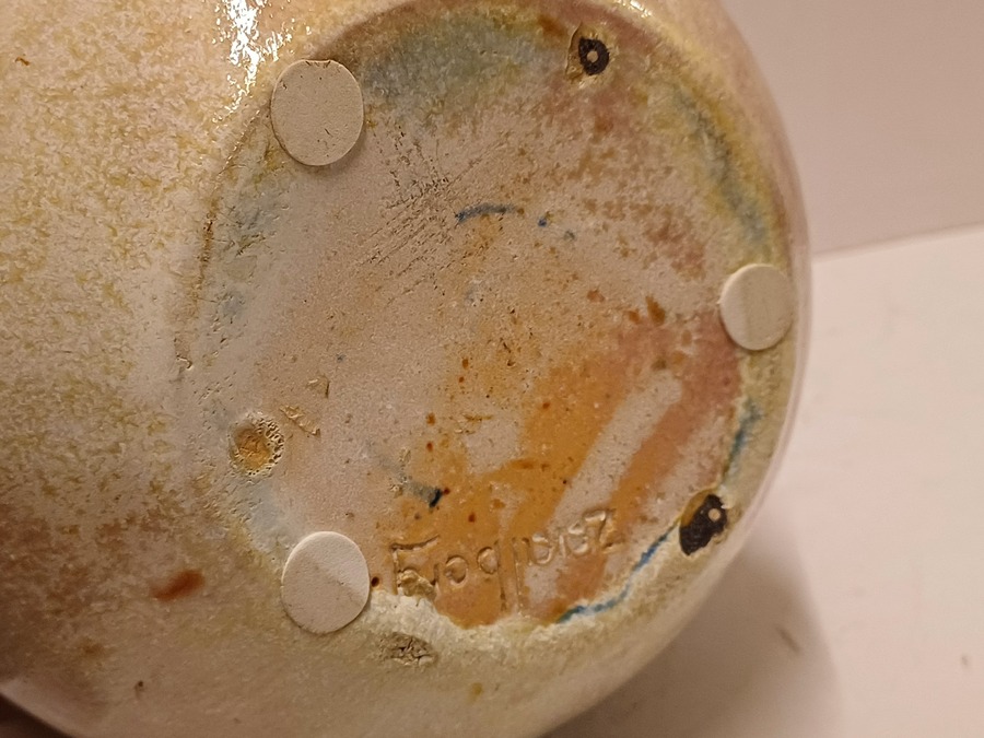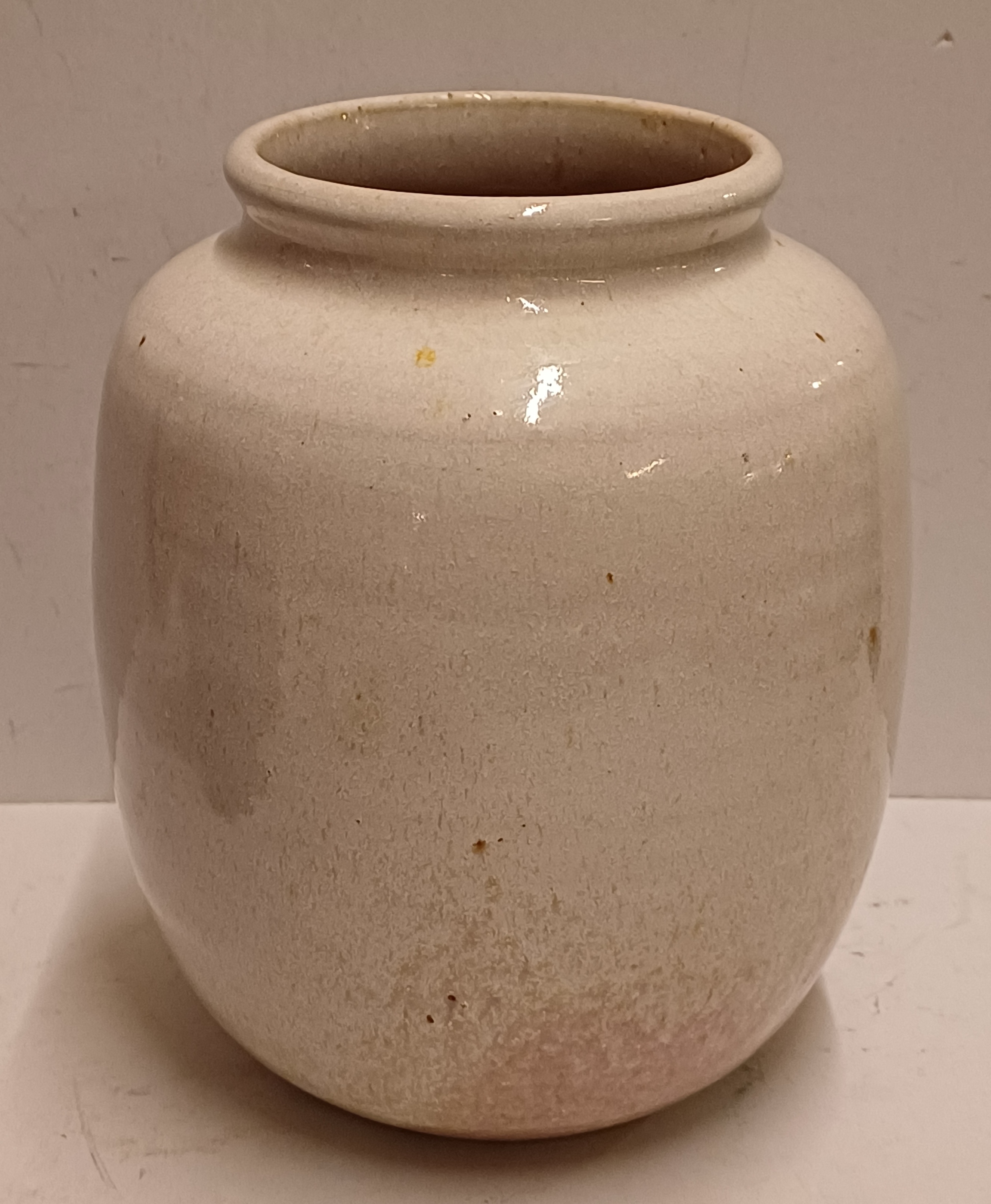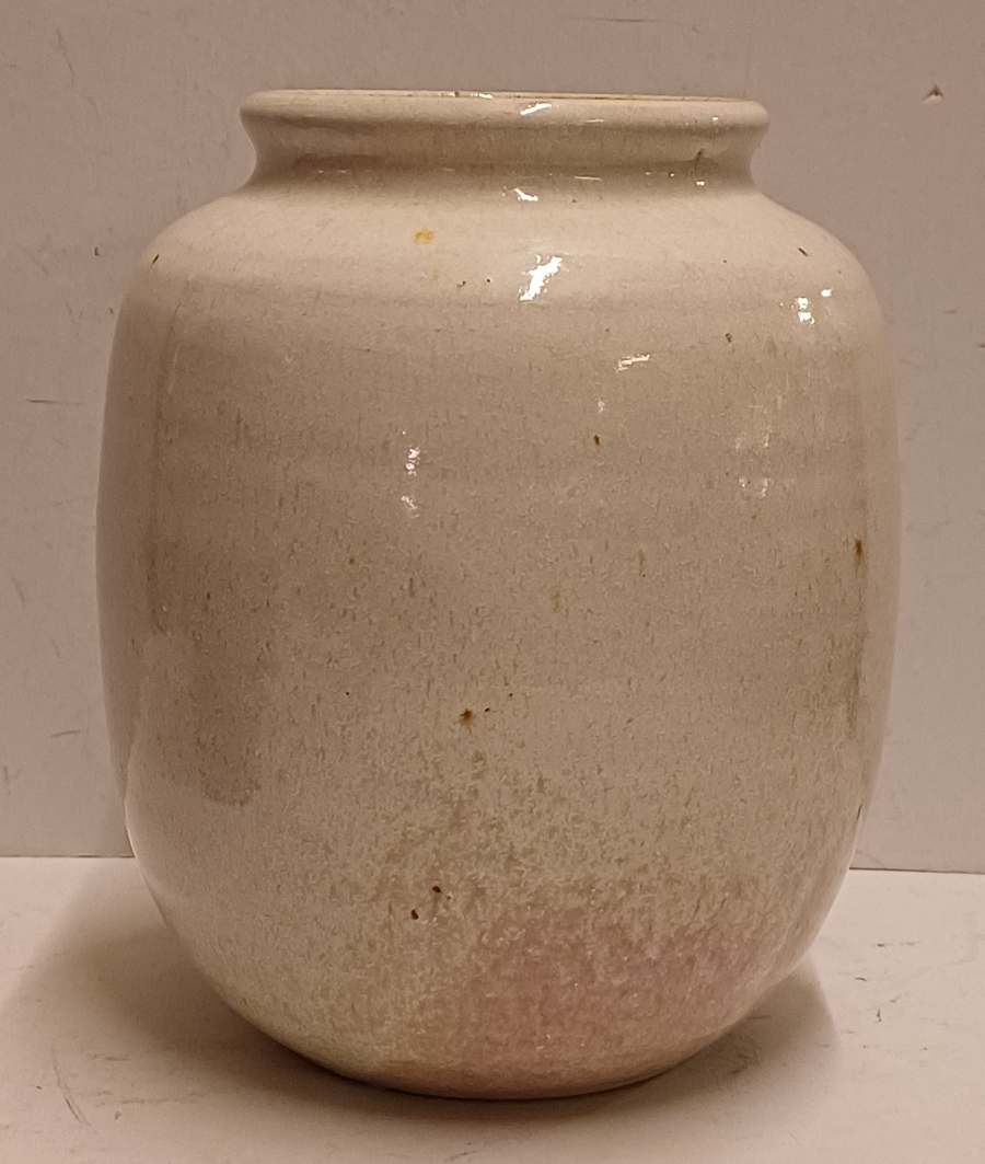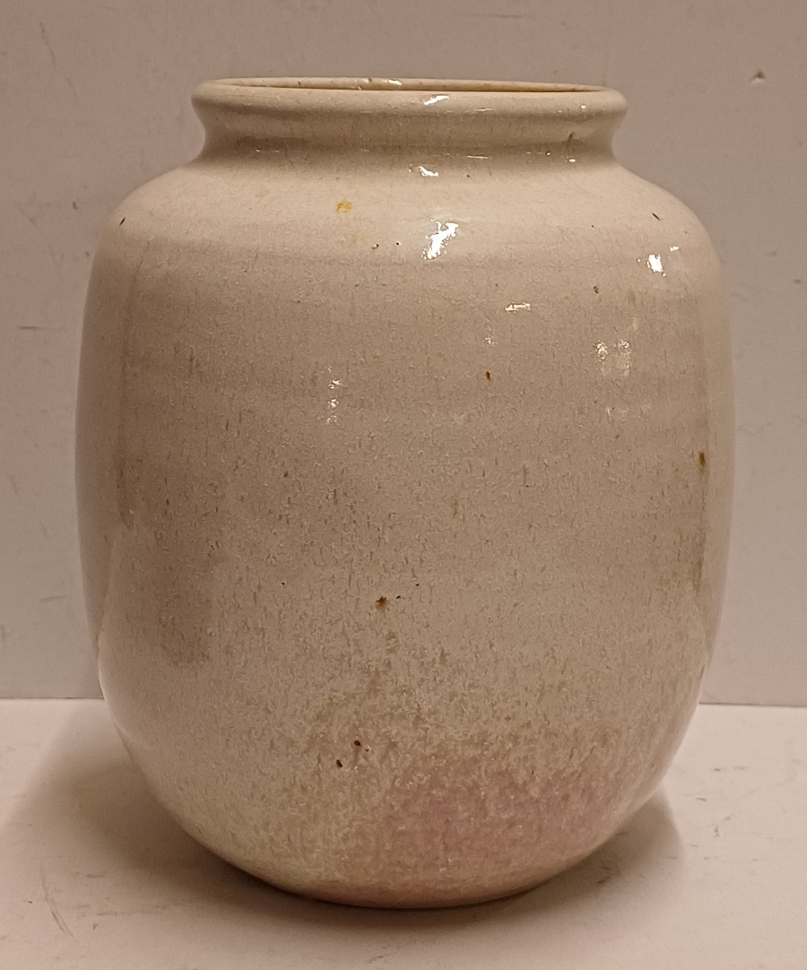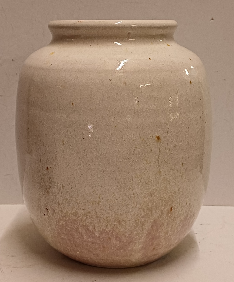 Aardewerken vaas met lichte glazuur. Onderzijde met fabrieksmerk.