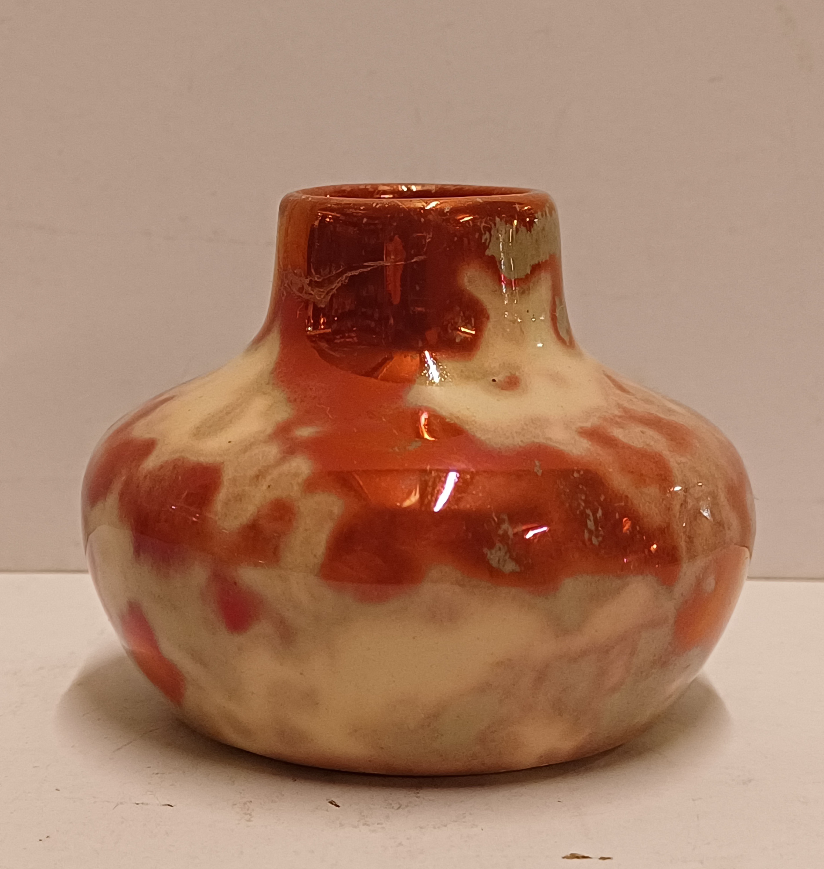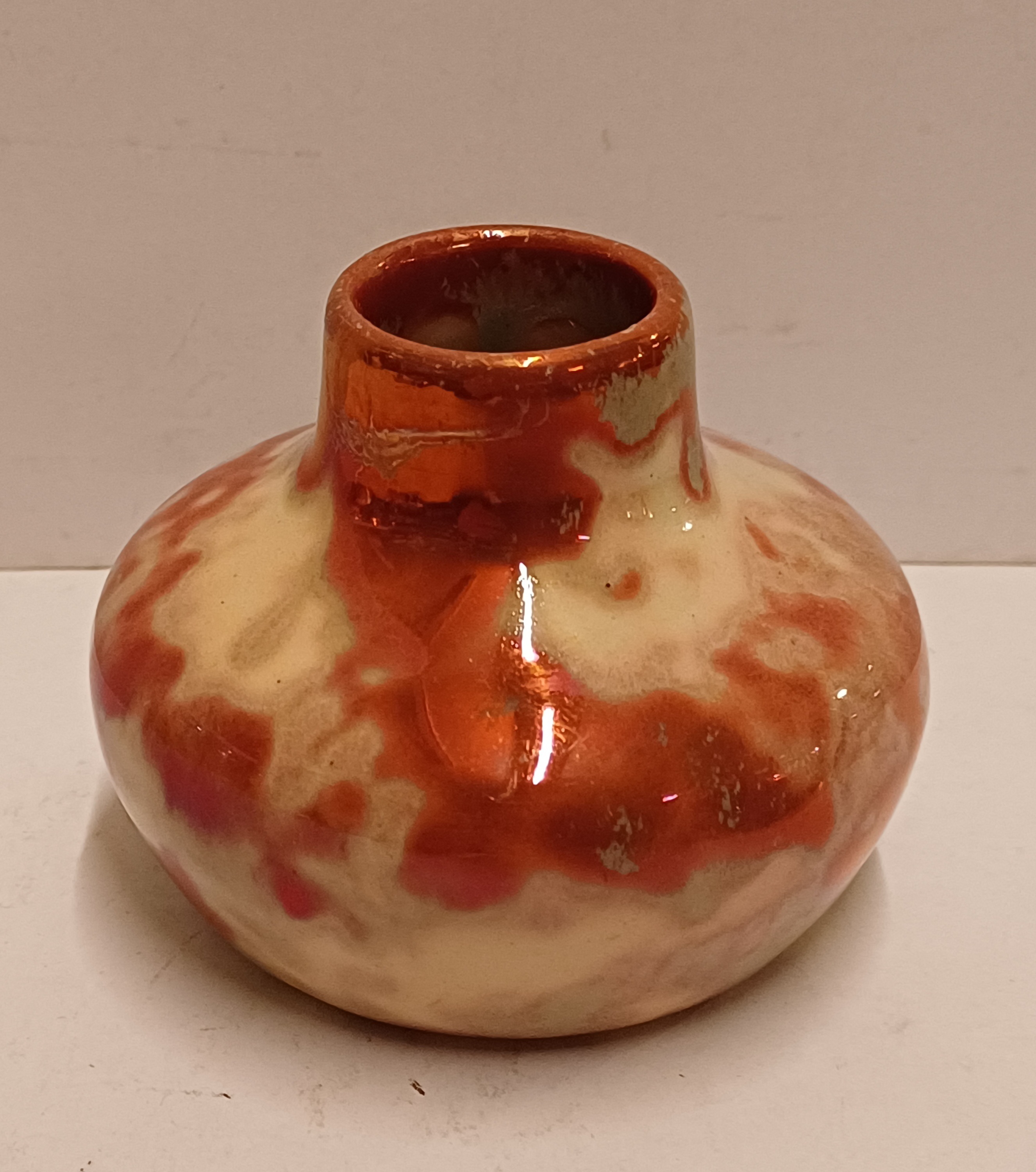 Piccolo vaso con smalto rosso reflet métallique. Parte inferiore con marchio di fabbrica.
