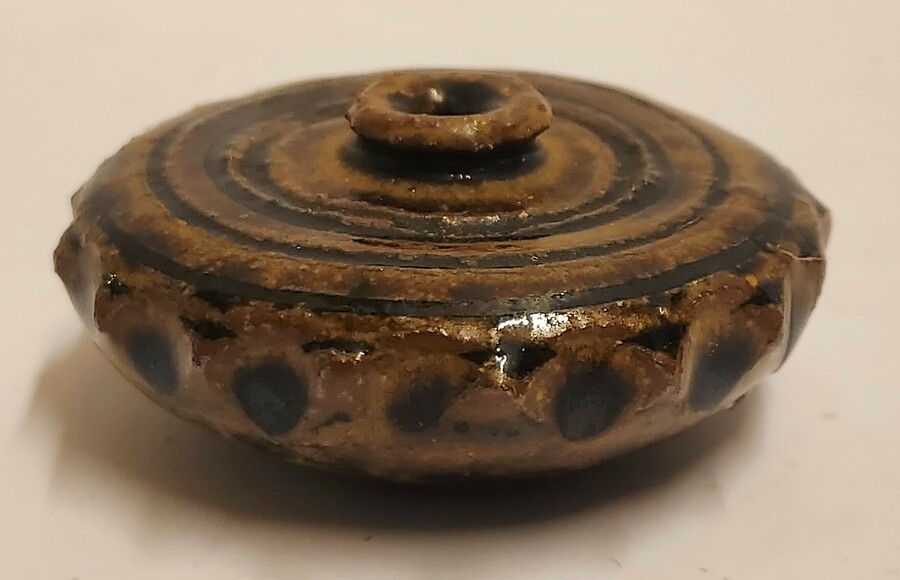 Piccolo vasetto piatto con smalto al sale. Non firmato.