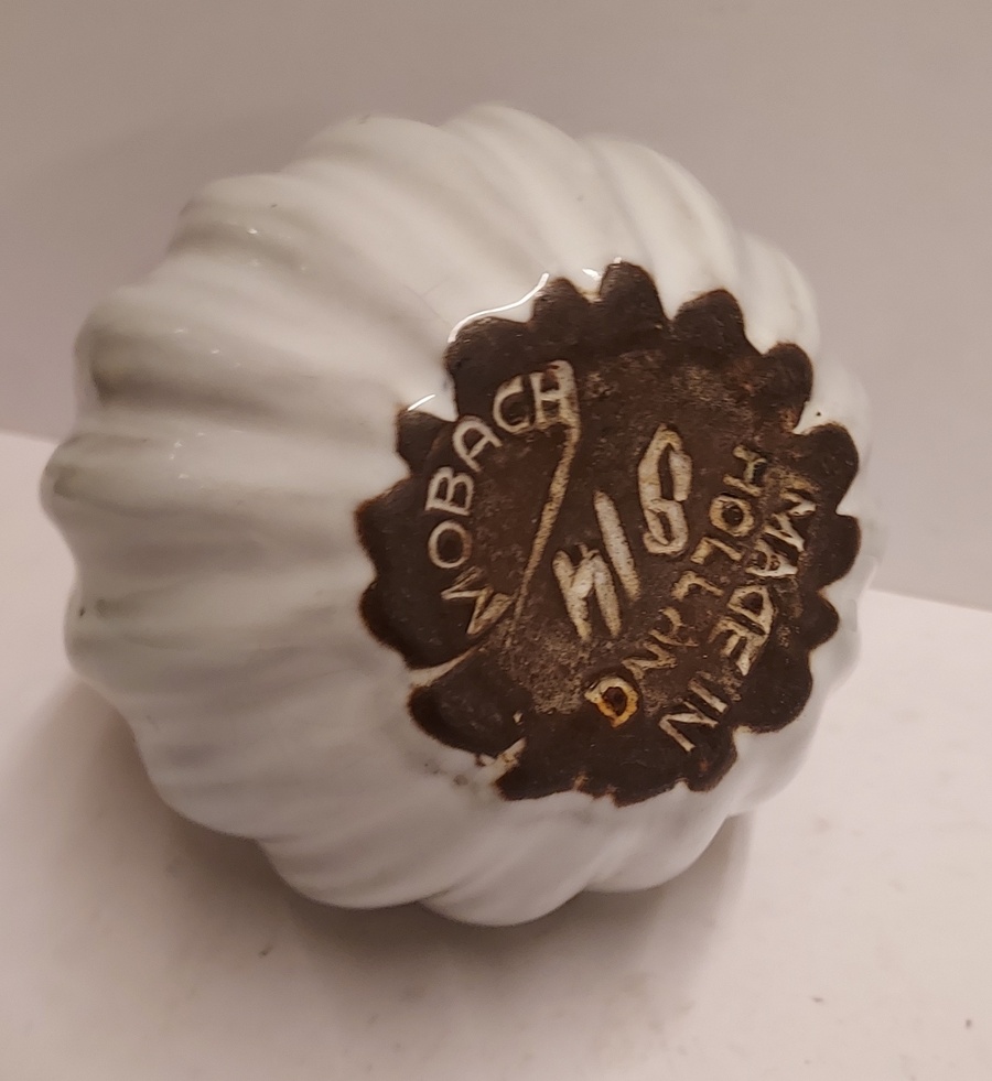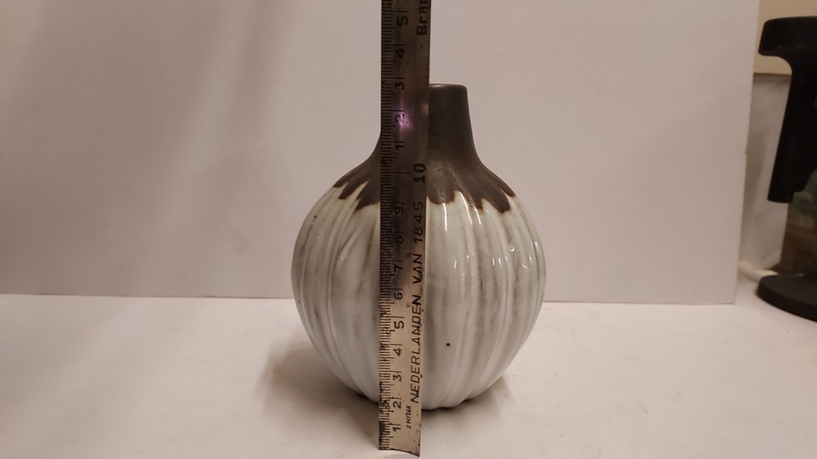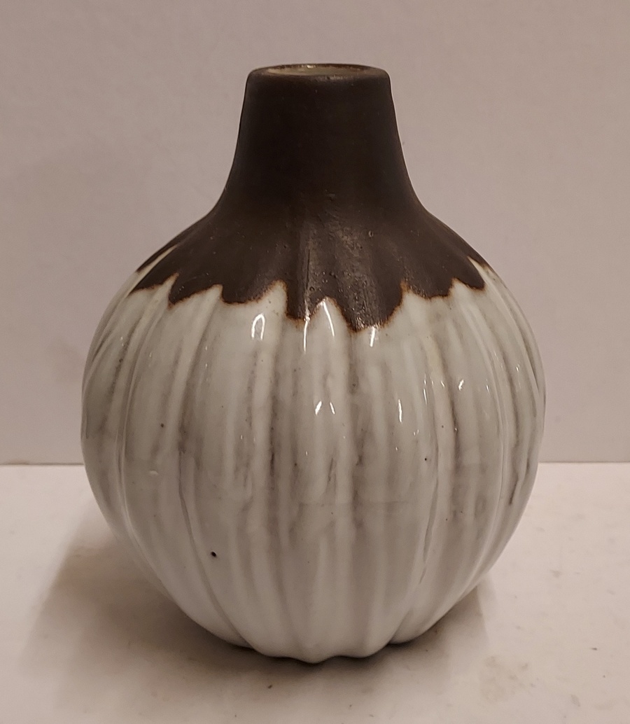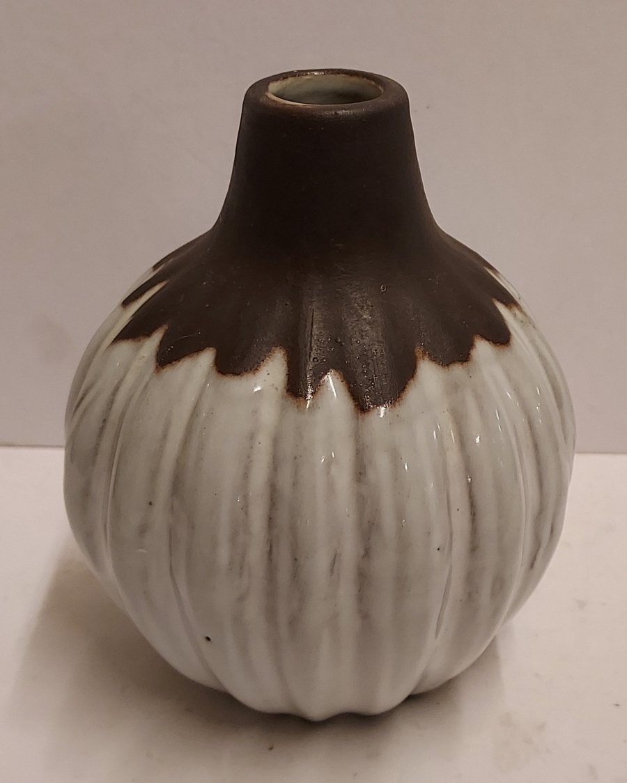 Vasetto modello calabash con parte della pancia smaltata. Parte inferiore con timbro della fabbrica.