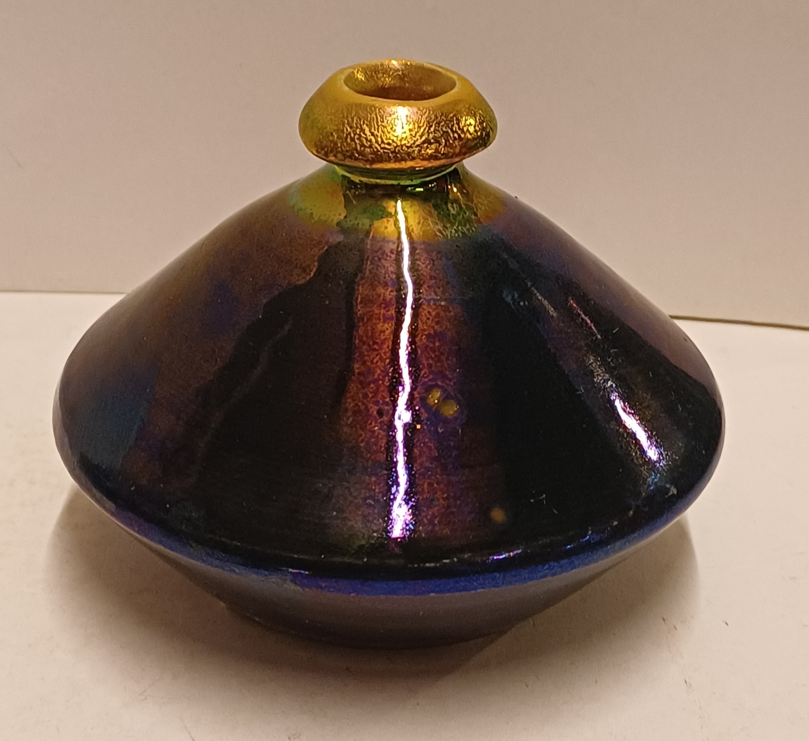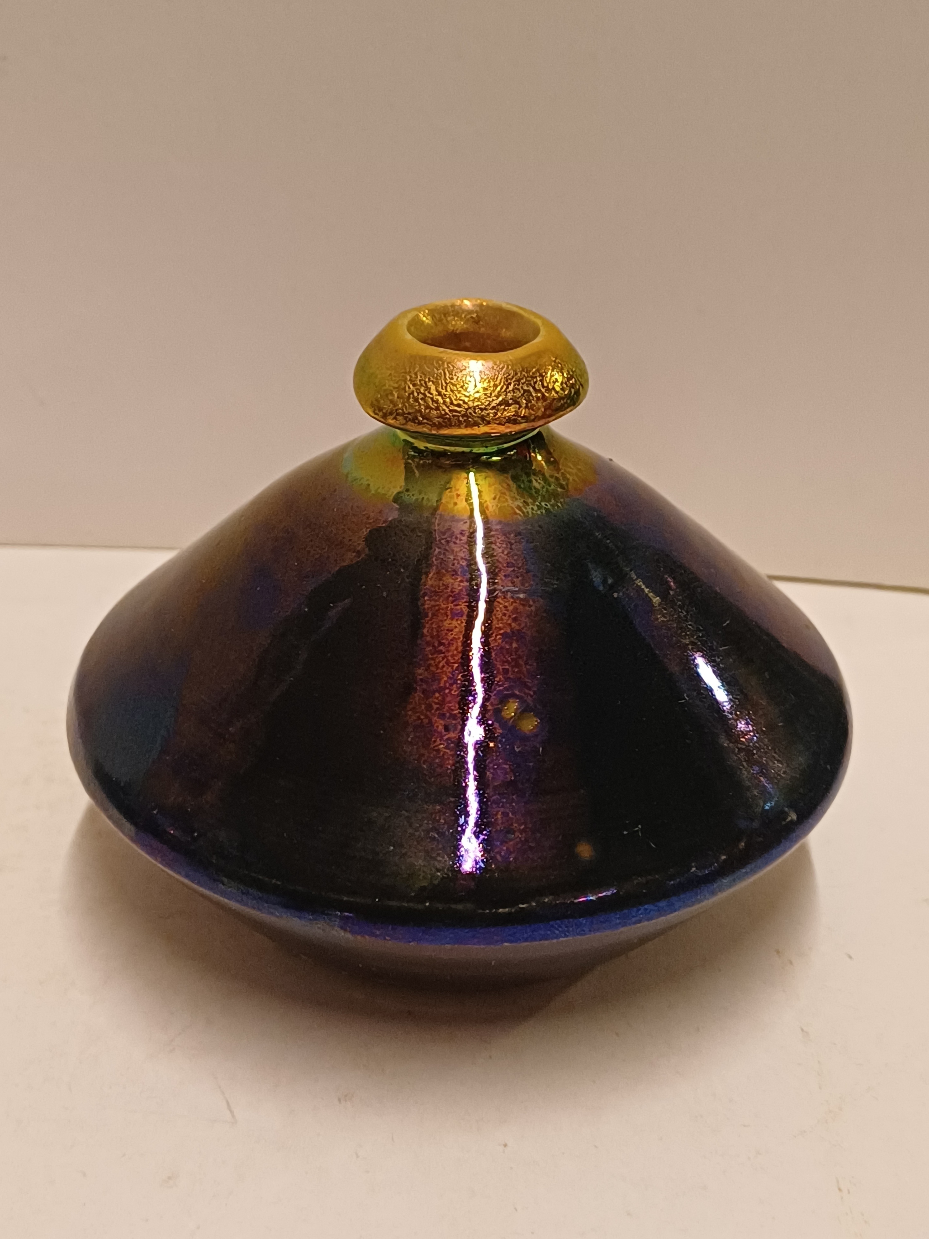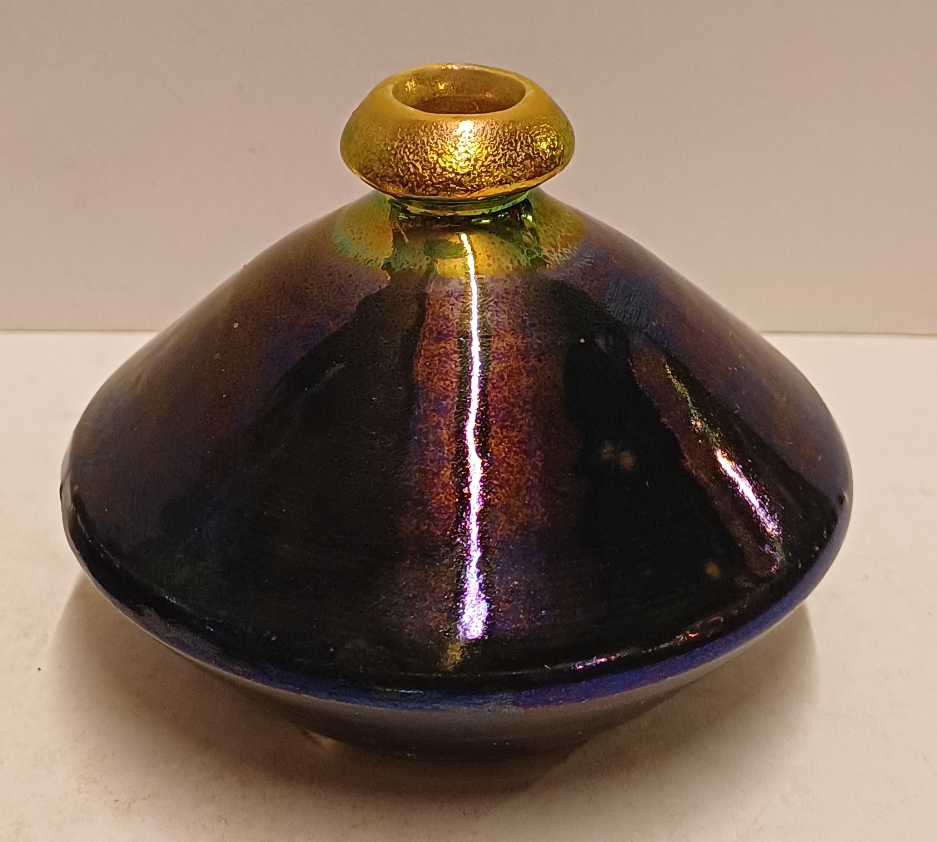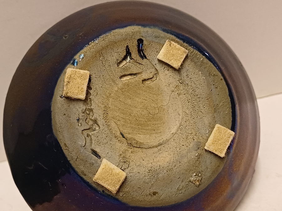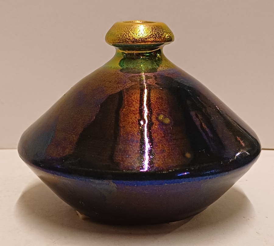 Aardewerken vaas met glanzende glazuur. Onderzijde met fabrieksmerk en kunstenaars monogram.