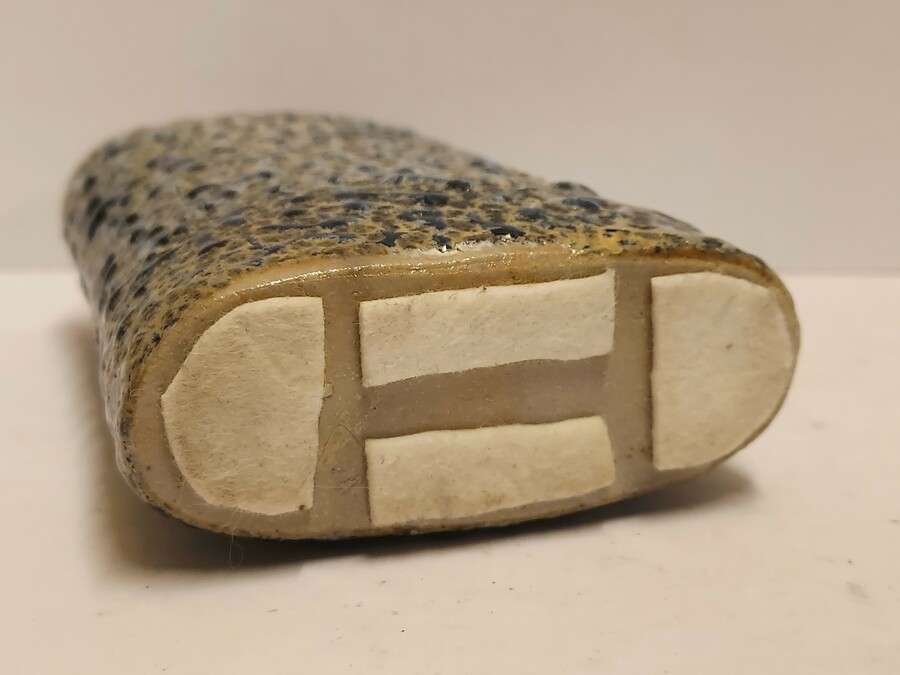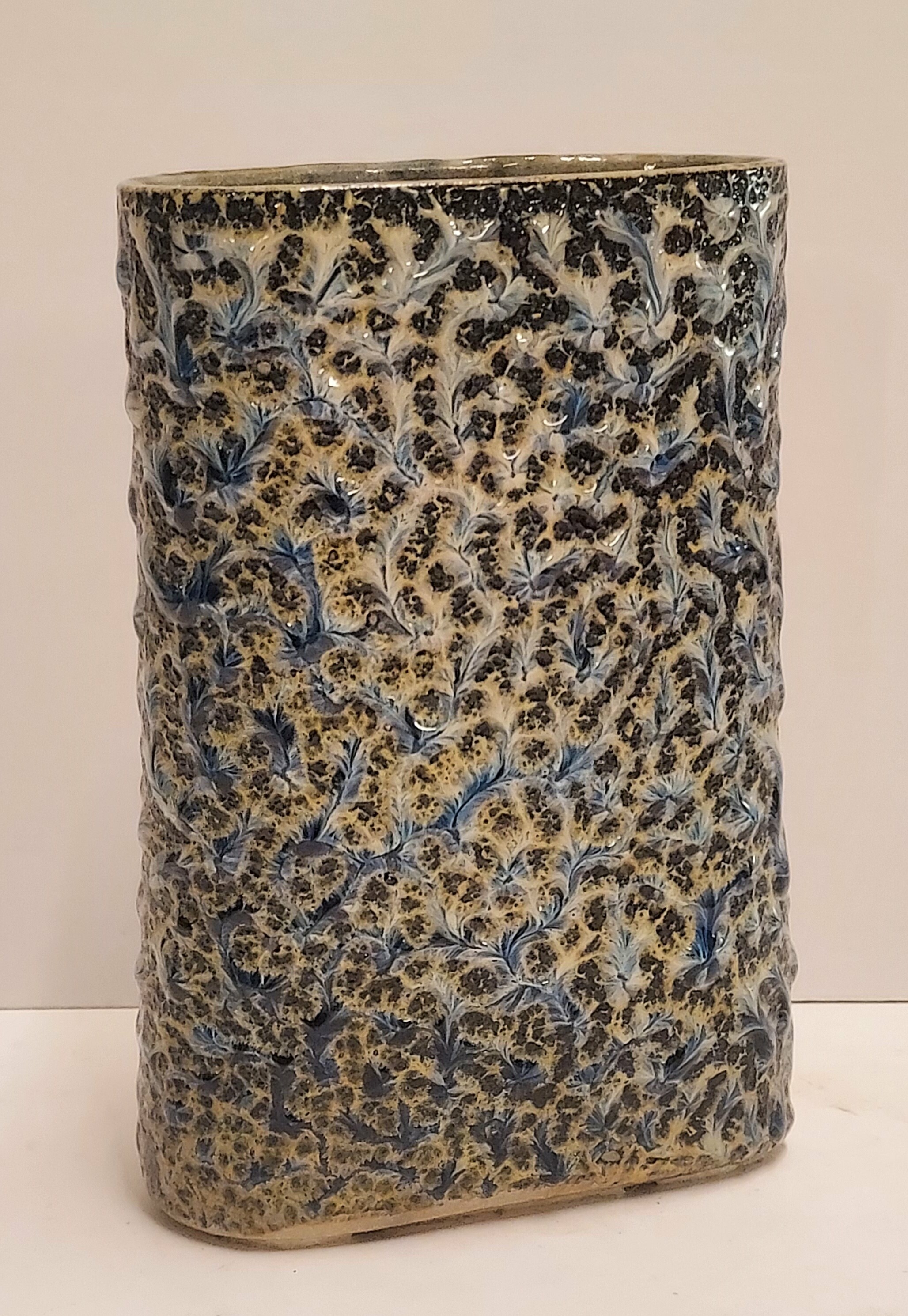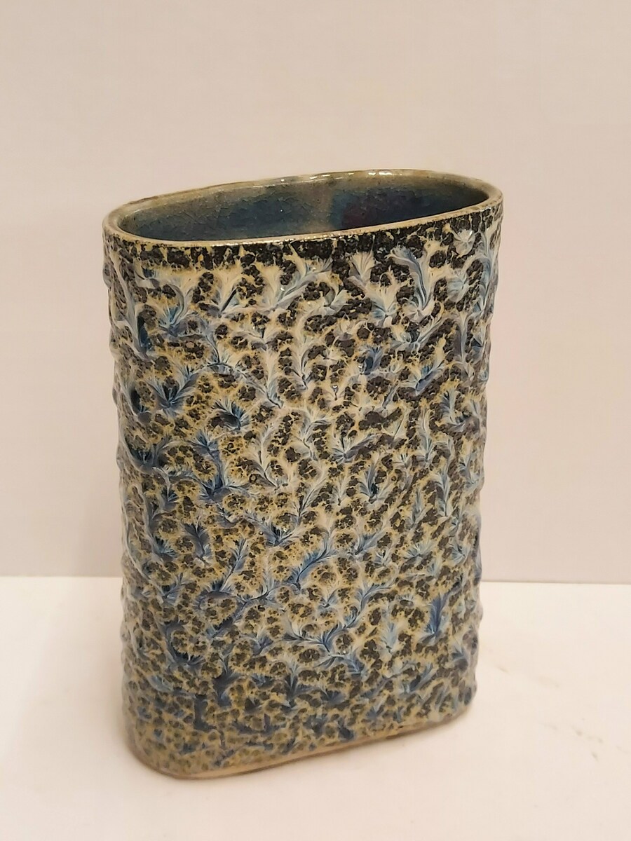 Vasetto cilindrico schiacciato con smalto grezzo al sale.