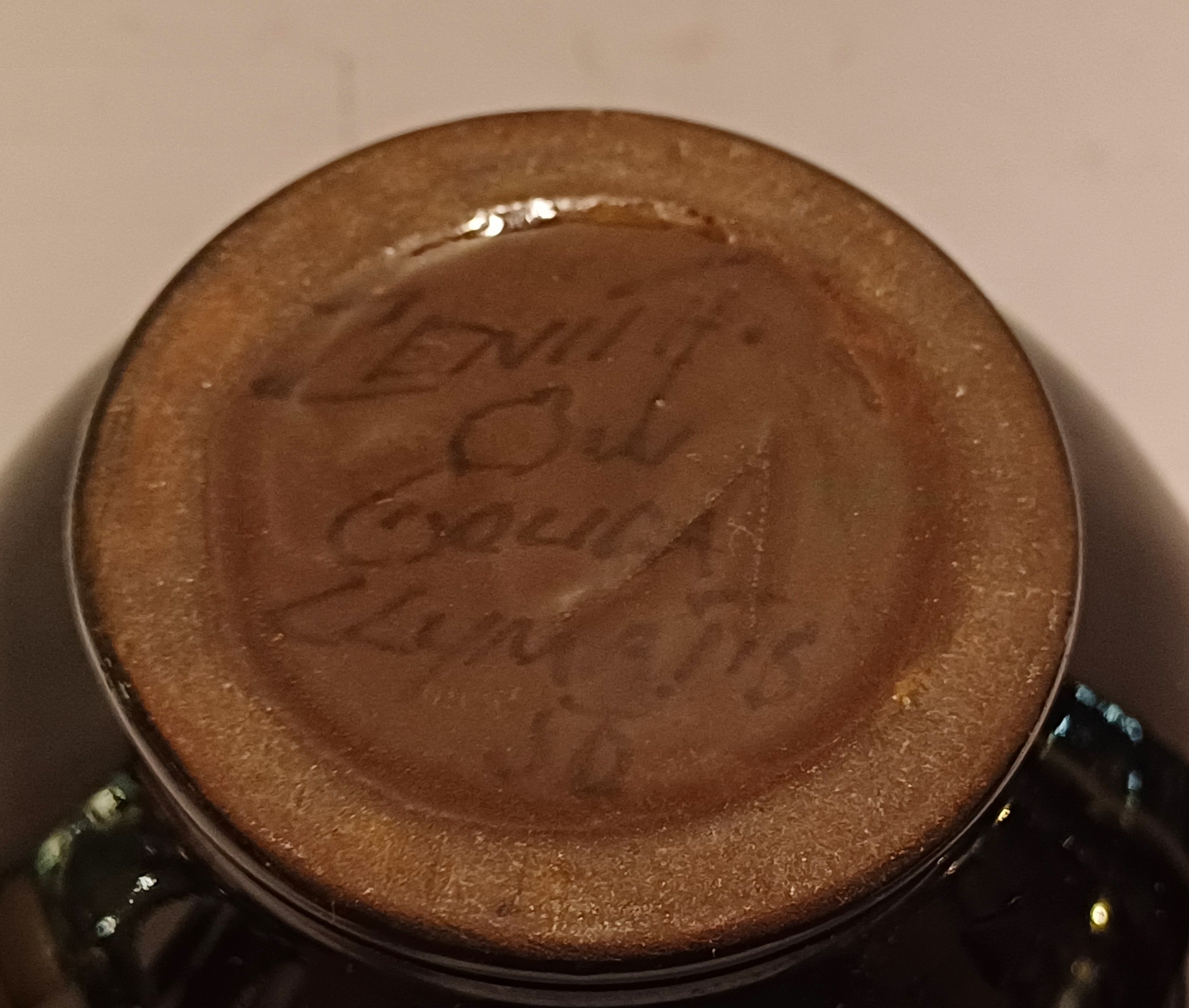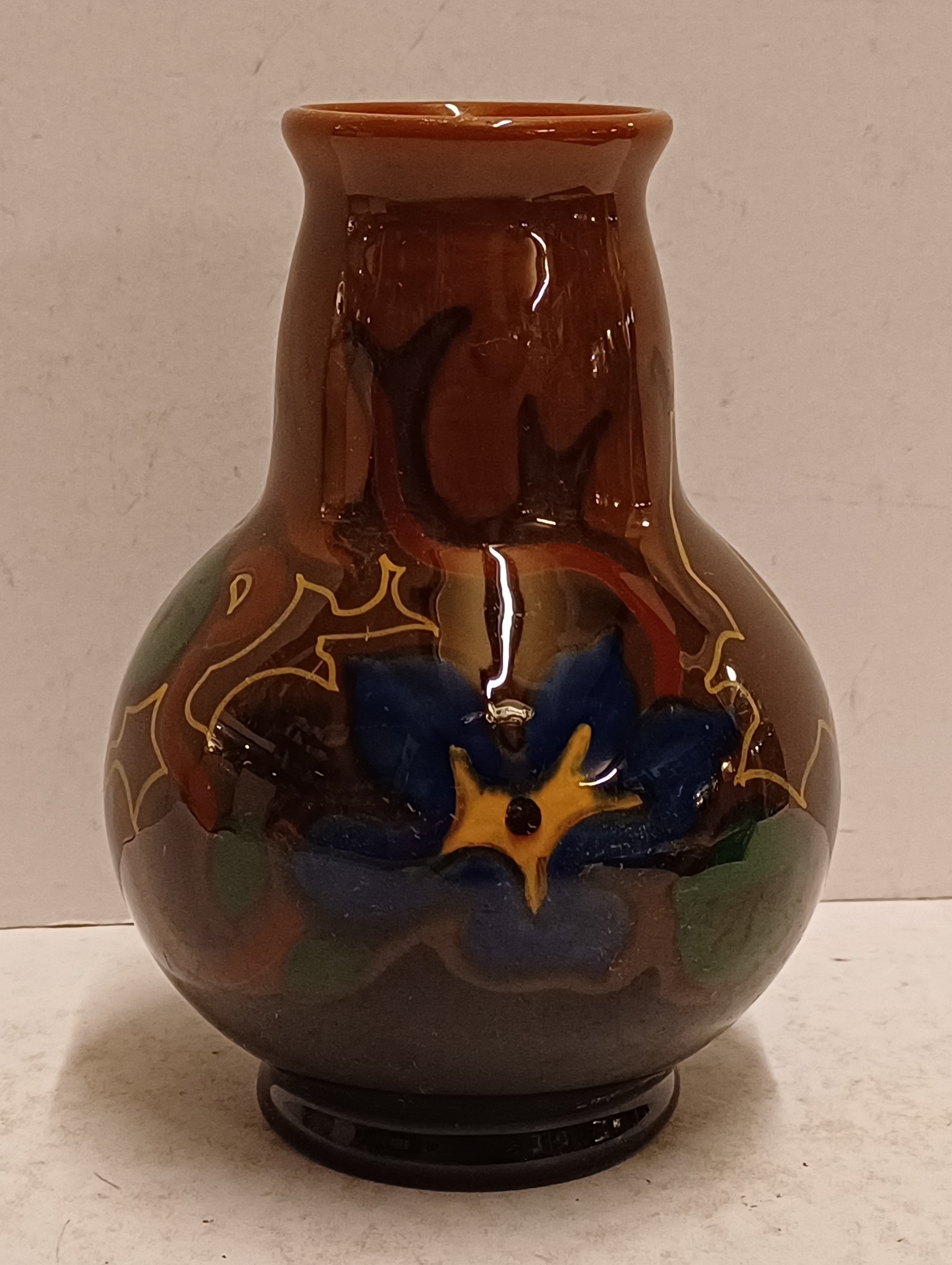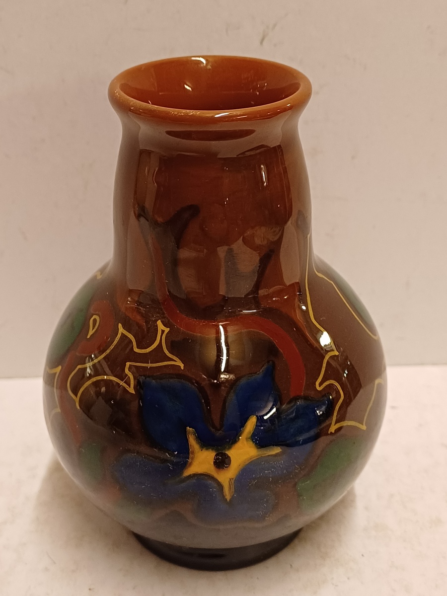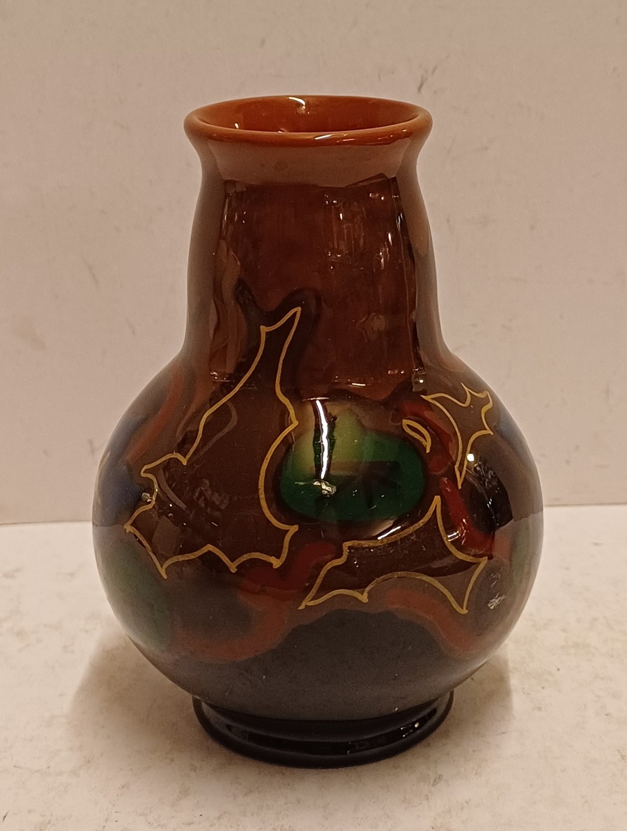 Glansplatelen vaasje met gestileerd floraal decor. Onderzijde gemerkt.