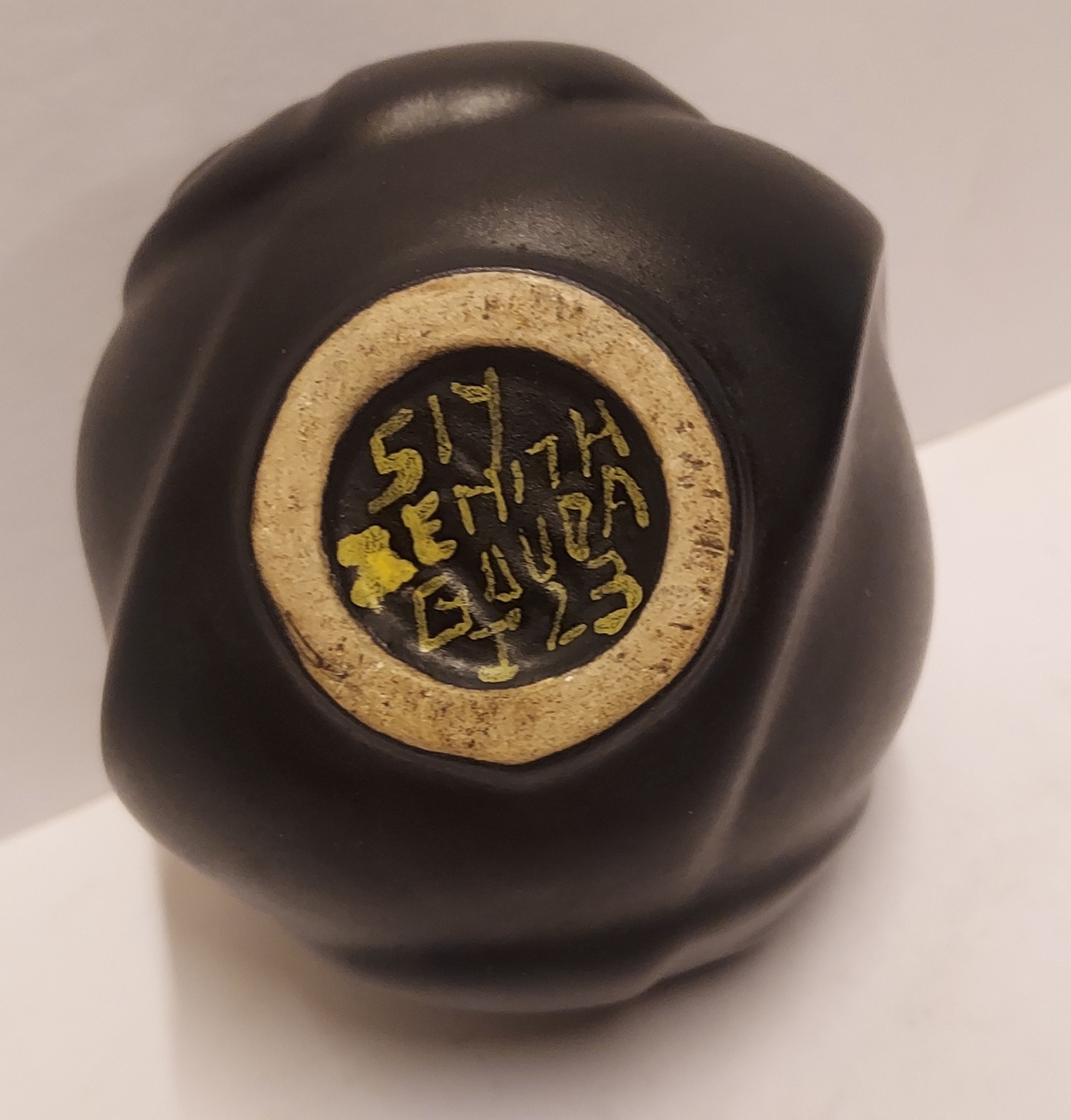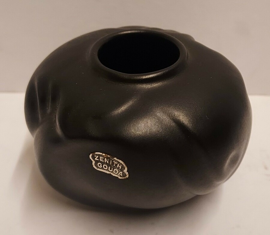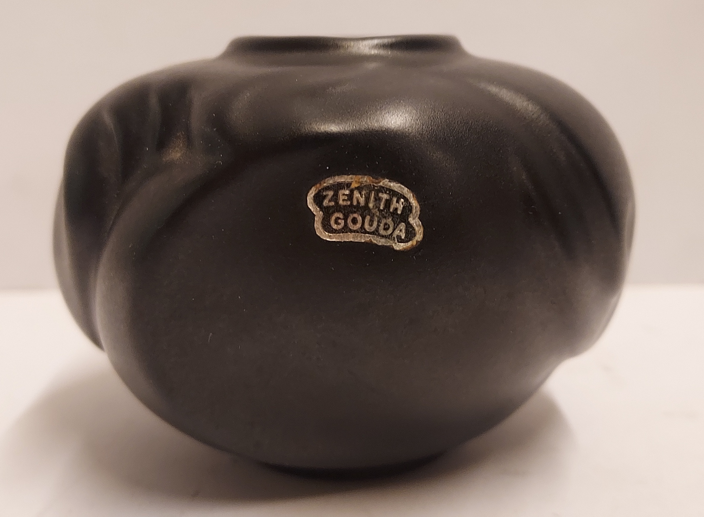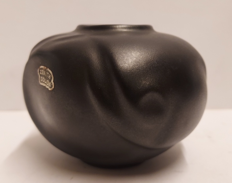 Vasetto smaltato in nero con decorazione irregolare. Sul fondo è presente il marchio Zenith e il numero 517. Design di Willem Stuurman.