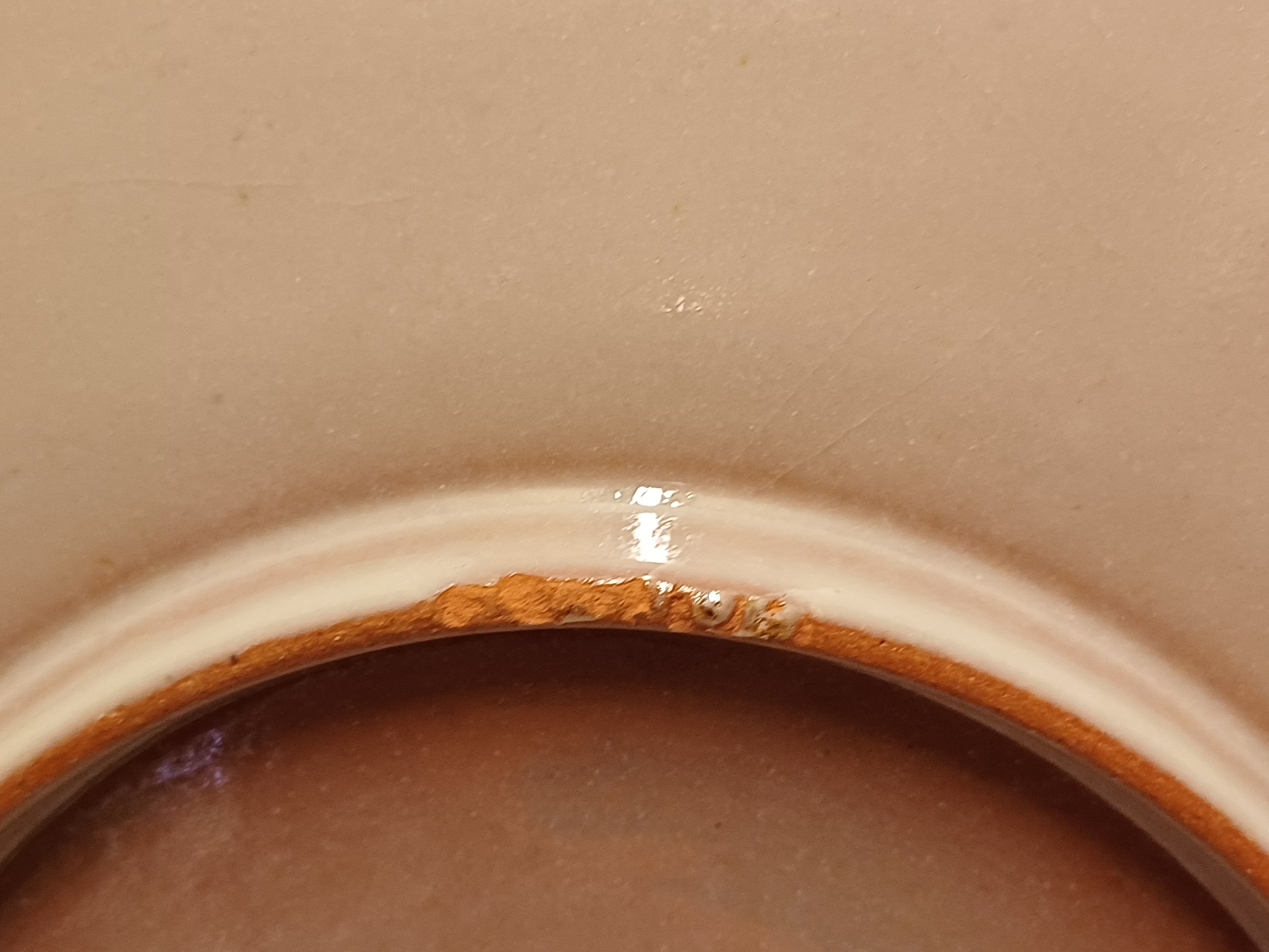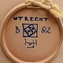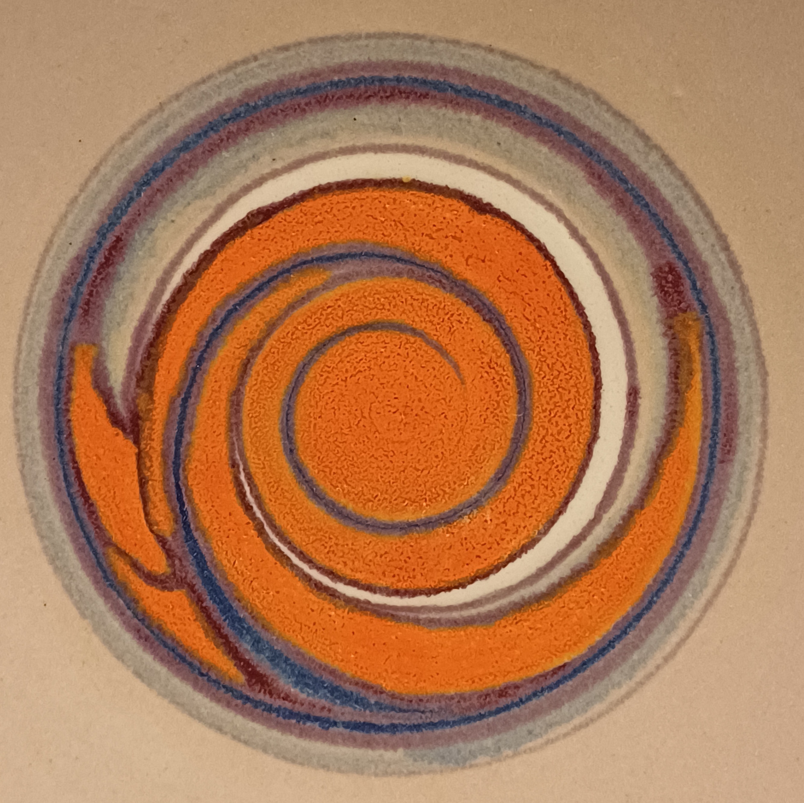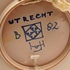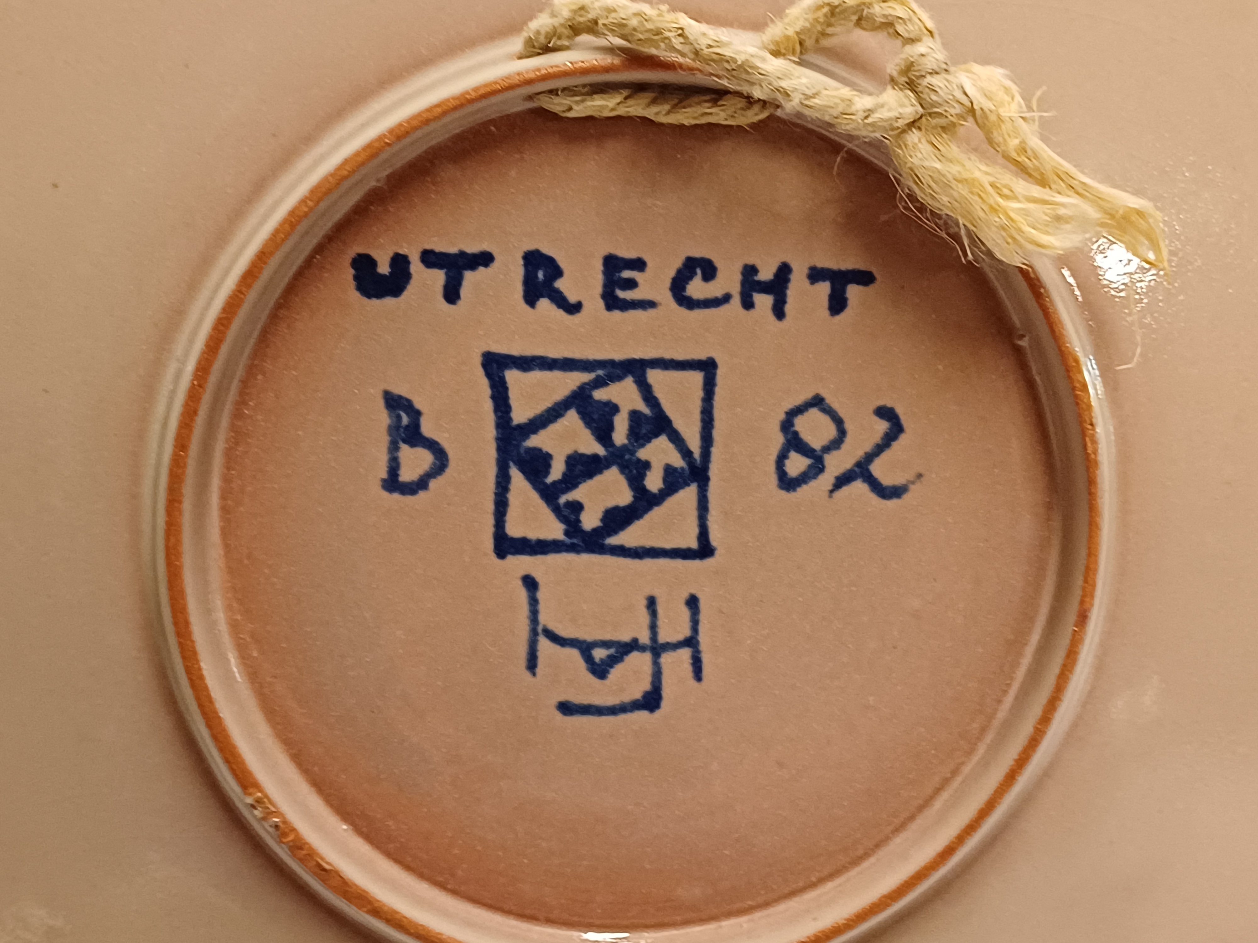 Piatto da parete con decorazione astratta in arancione e viola su fondo grigio. Retro con marchio dipinto e monogramma del pittore Jan van Ham.