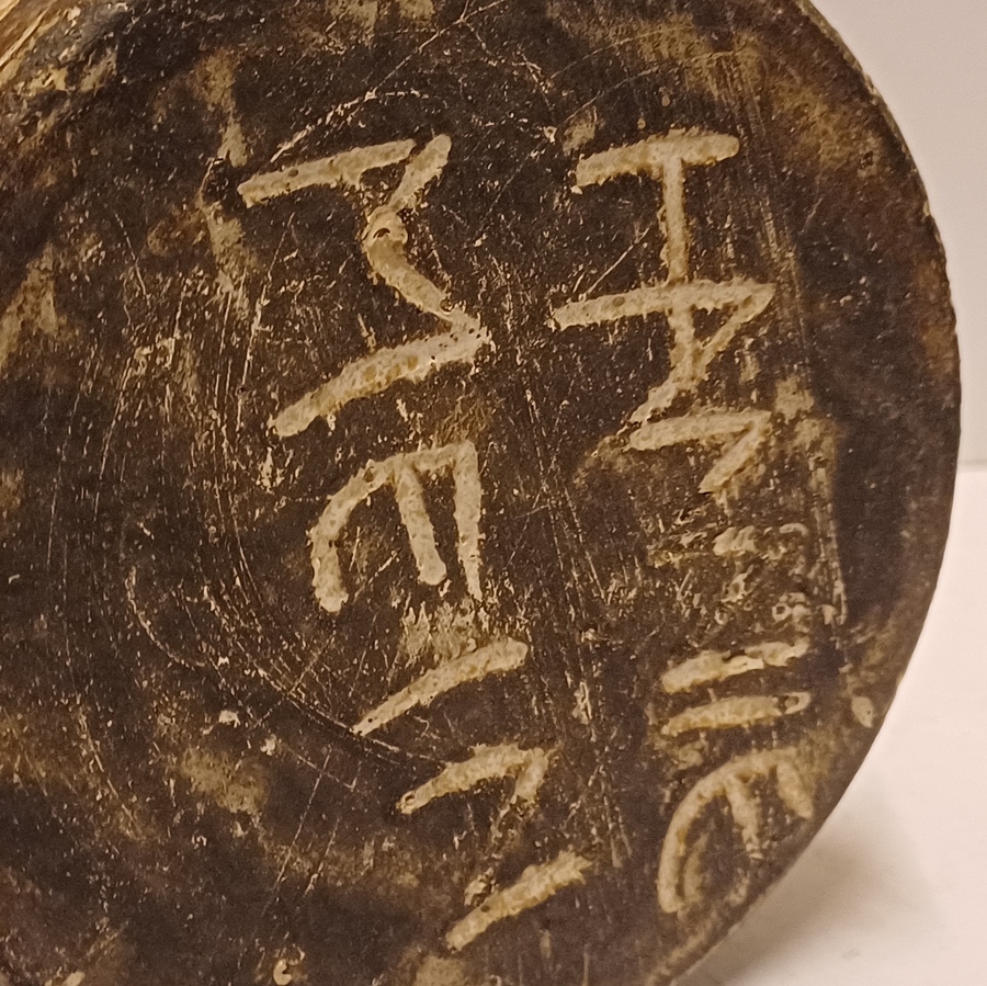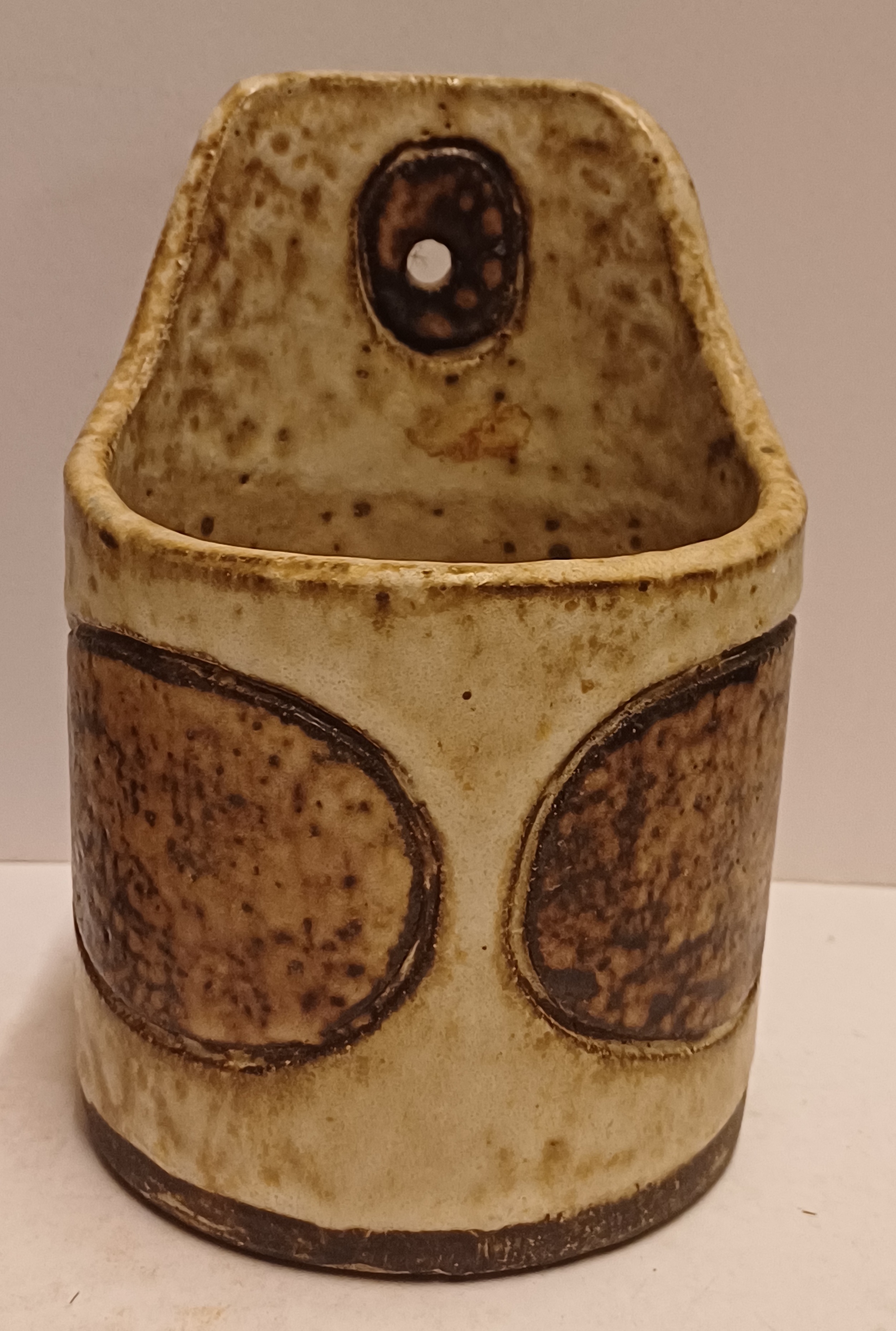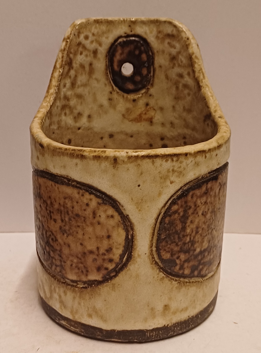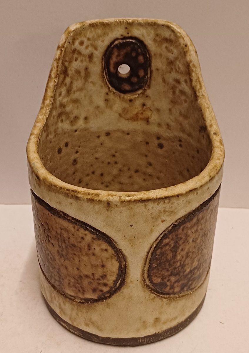 Wandhanger met decor in donkerbruin op creme fond. Onderzijde met monogram.