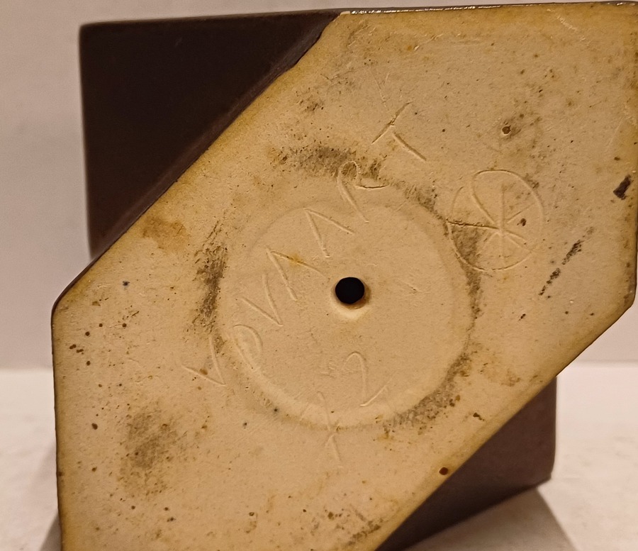 Blok element met bronsglazuur, werden als presse papier verkocht. Maar ook werden er wandreliefs mee gemaakt. Onderzijde gemerkt, uitvoering eigen studio 1974.