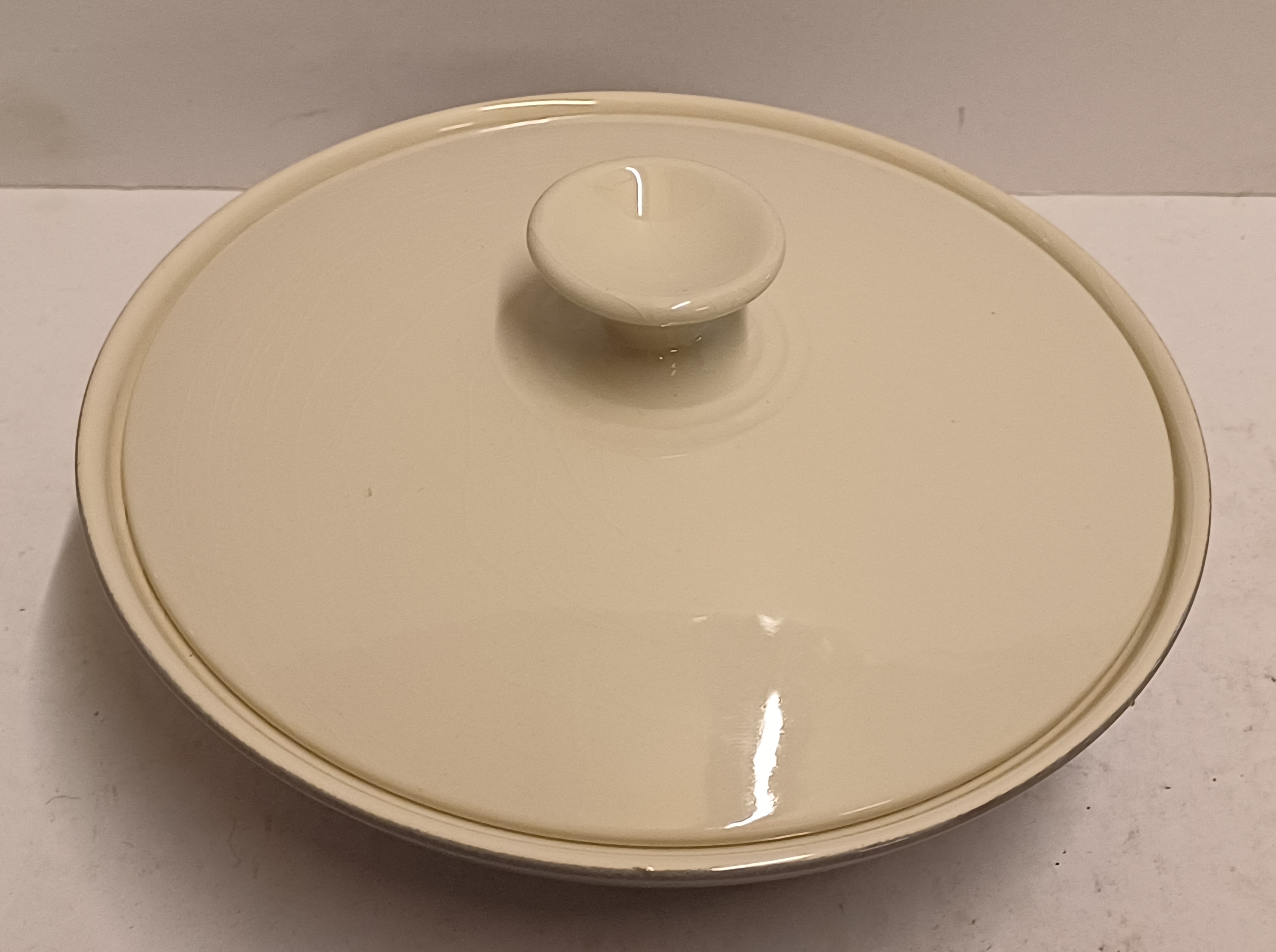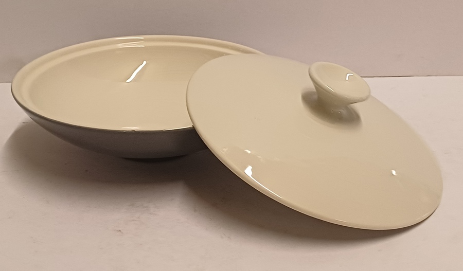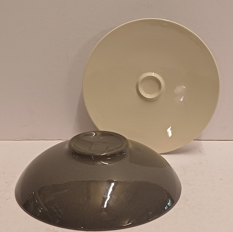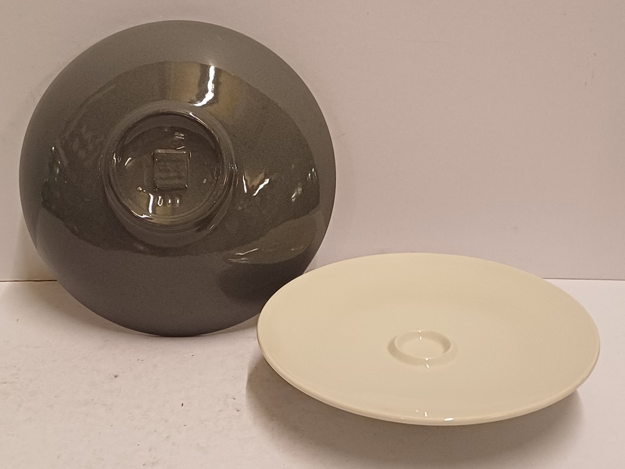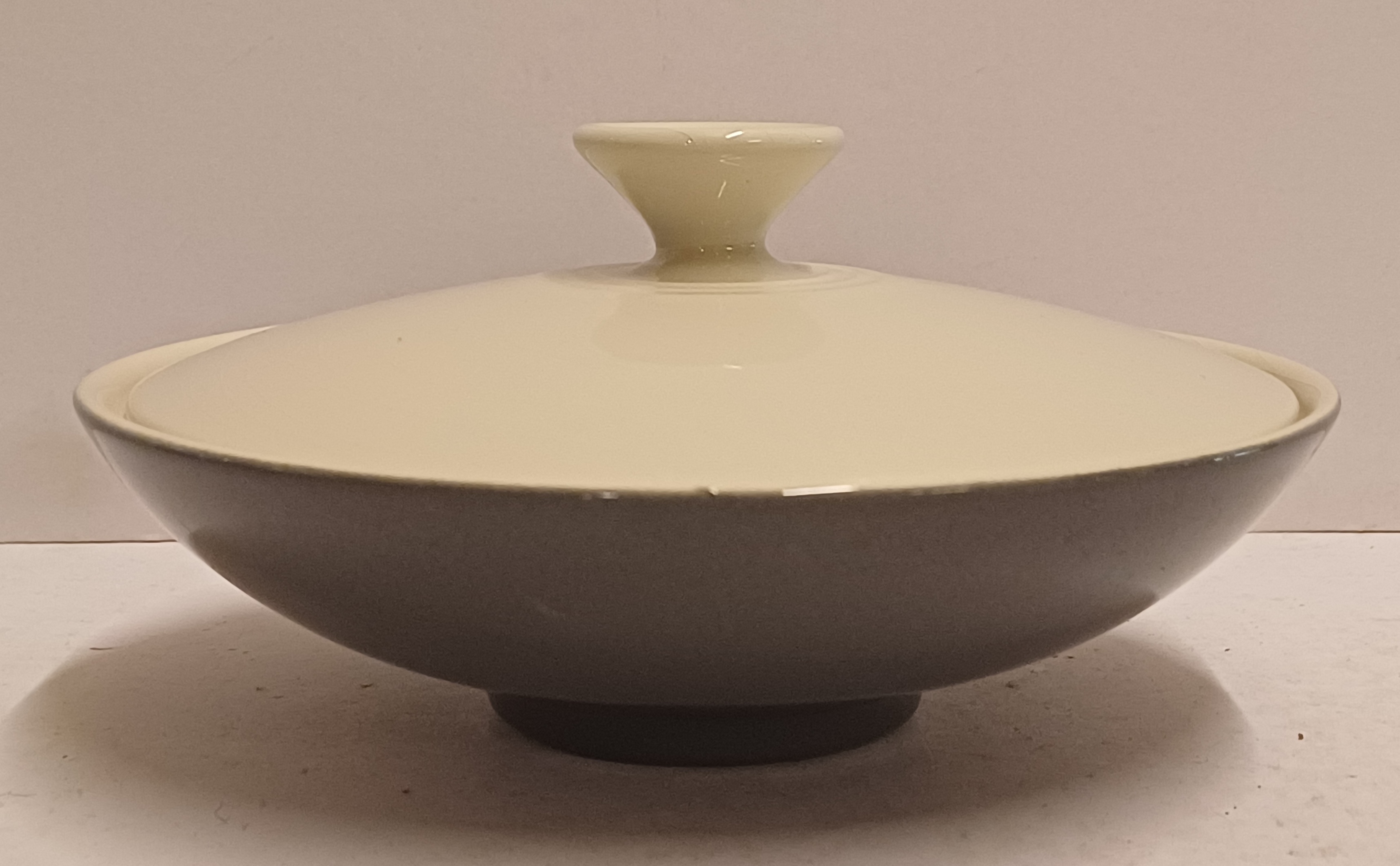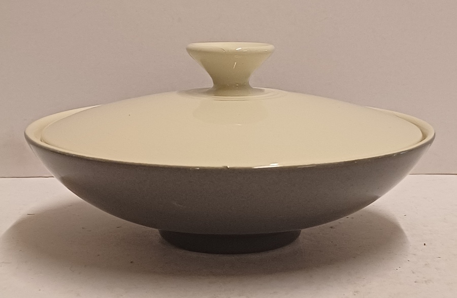 Bonbondoos met antraciet onderzijde en ivoorkleurige deksel. Onderzijde gemerkt, modelnummer 111. Ontwerp 1951.
