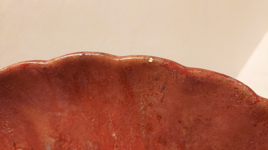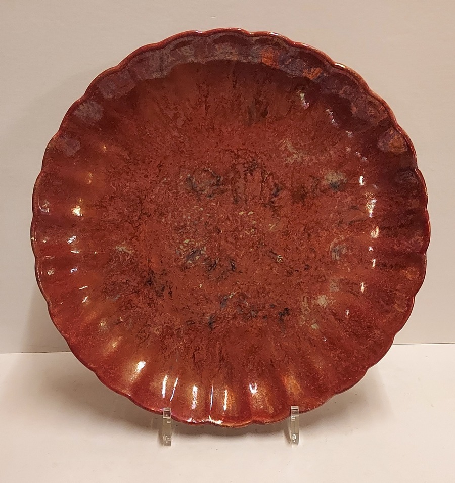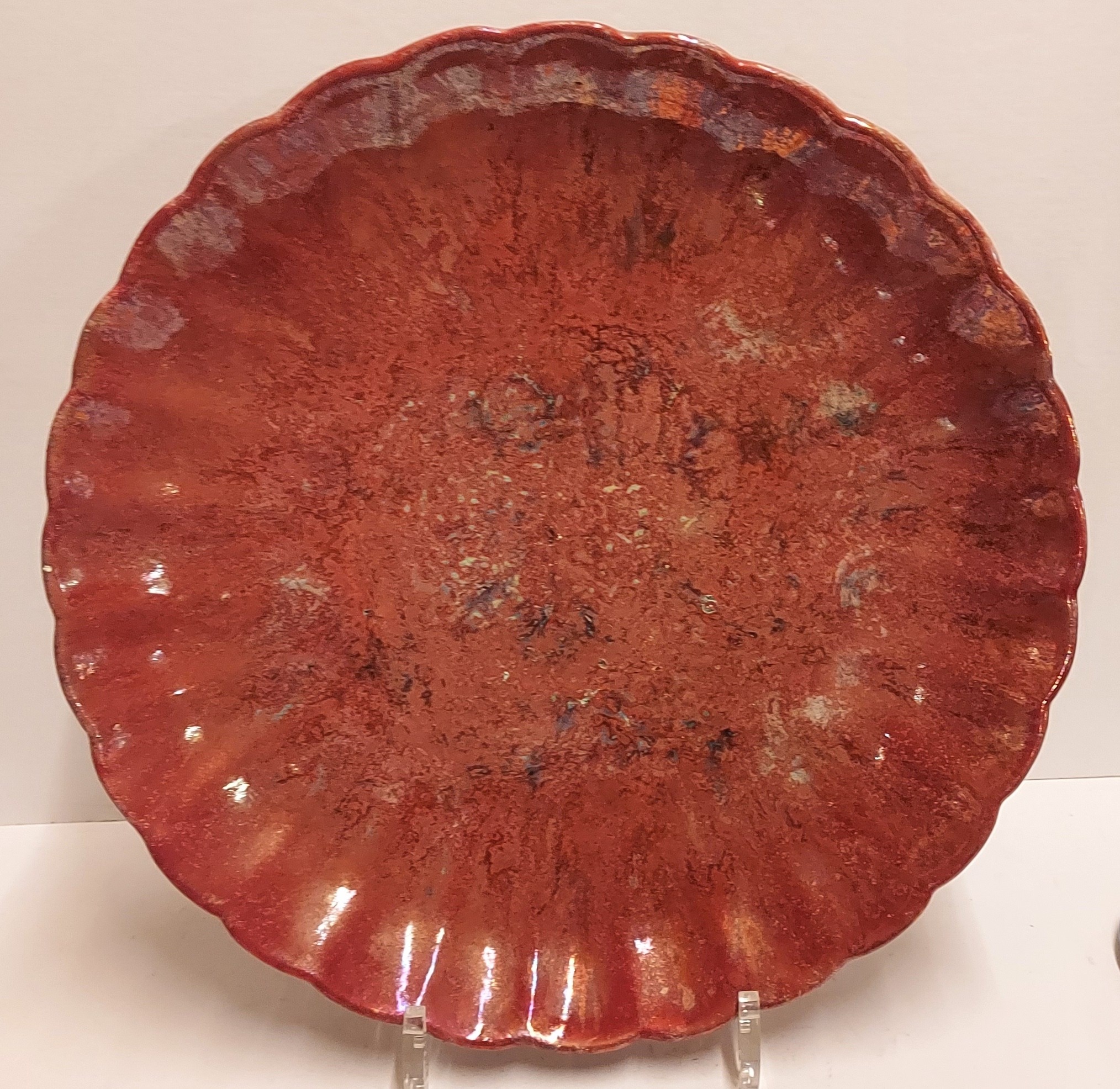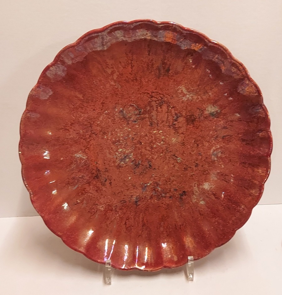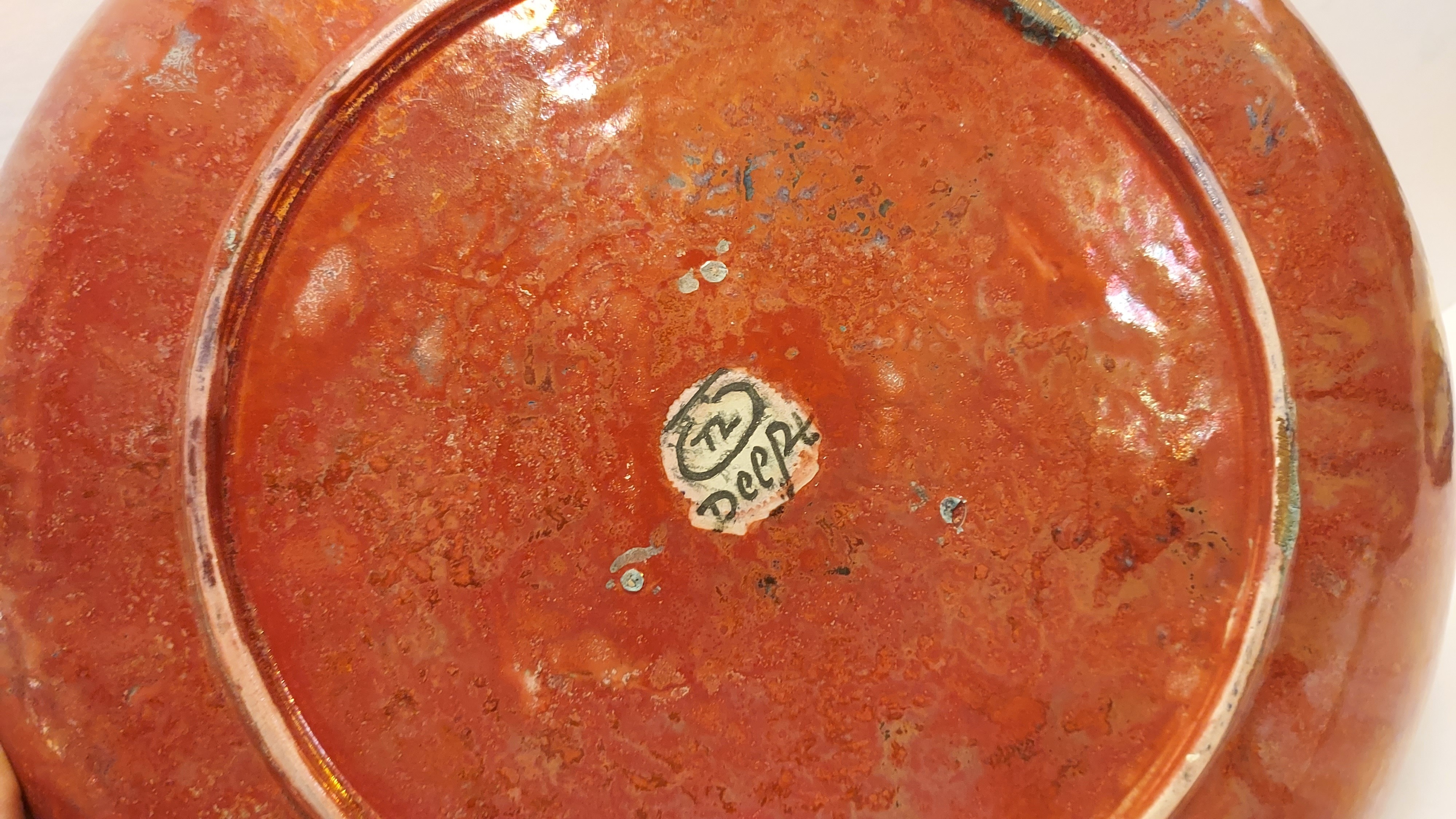 Met geschulpte rand en reflet metalique glazuur. Achterzijde met fabrieksmerk.