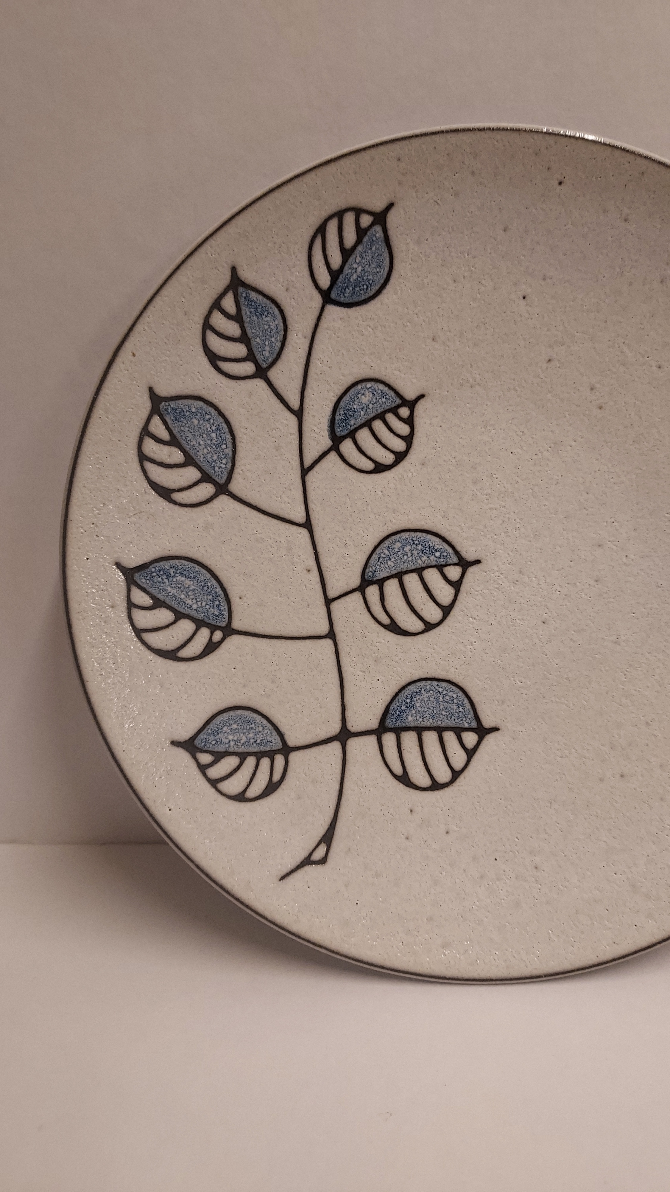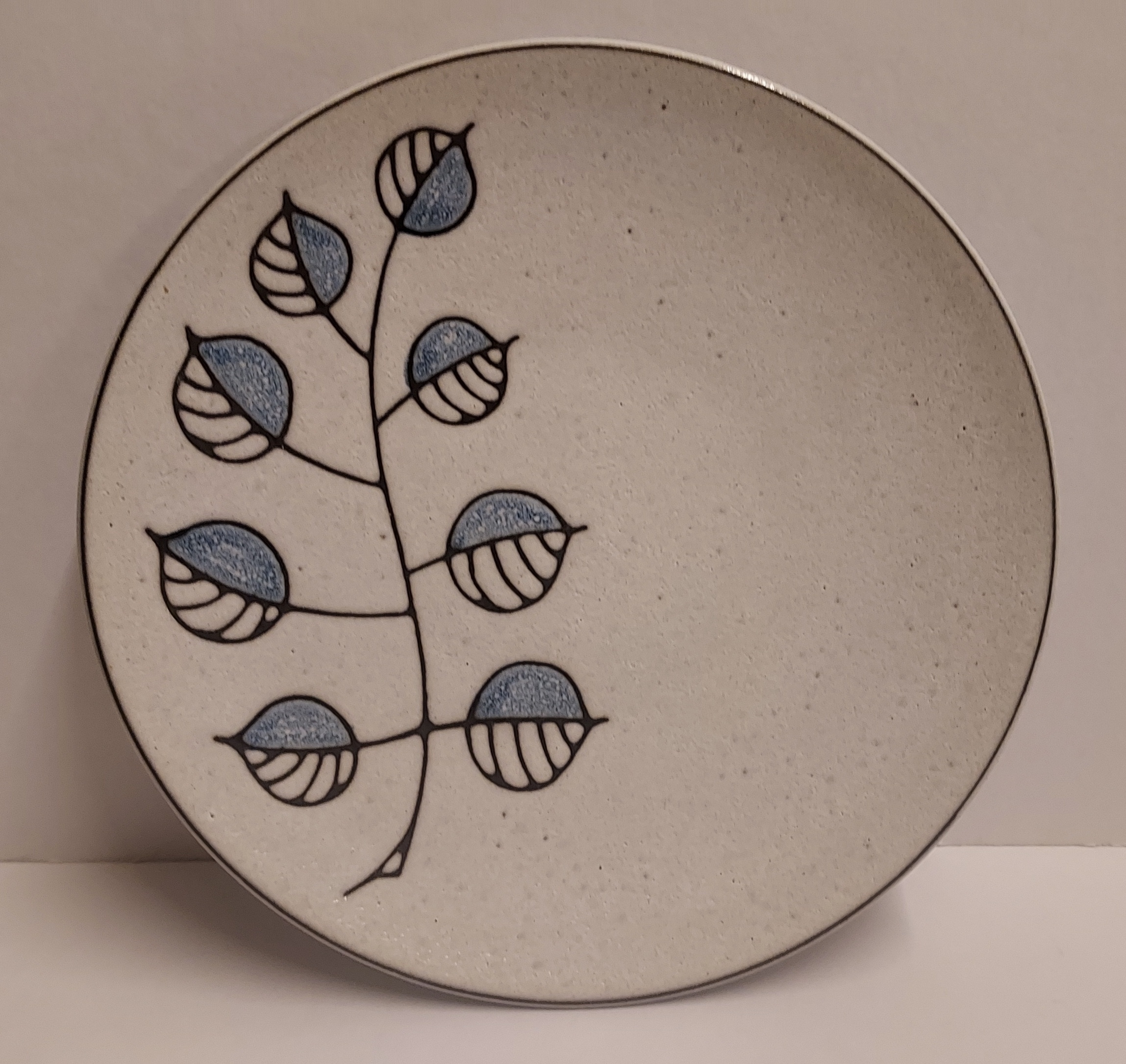 Met decor van takje met blzuwe balderen. Niet gesigneerd