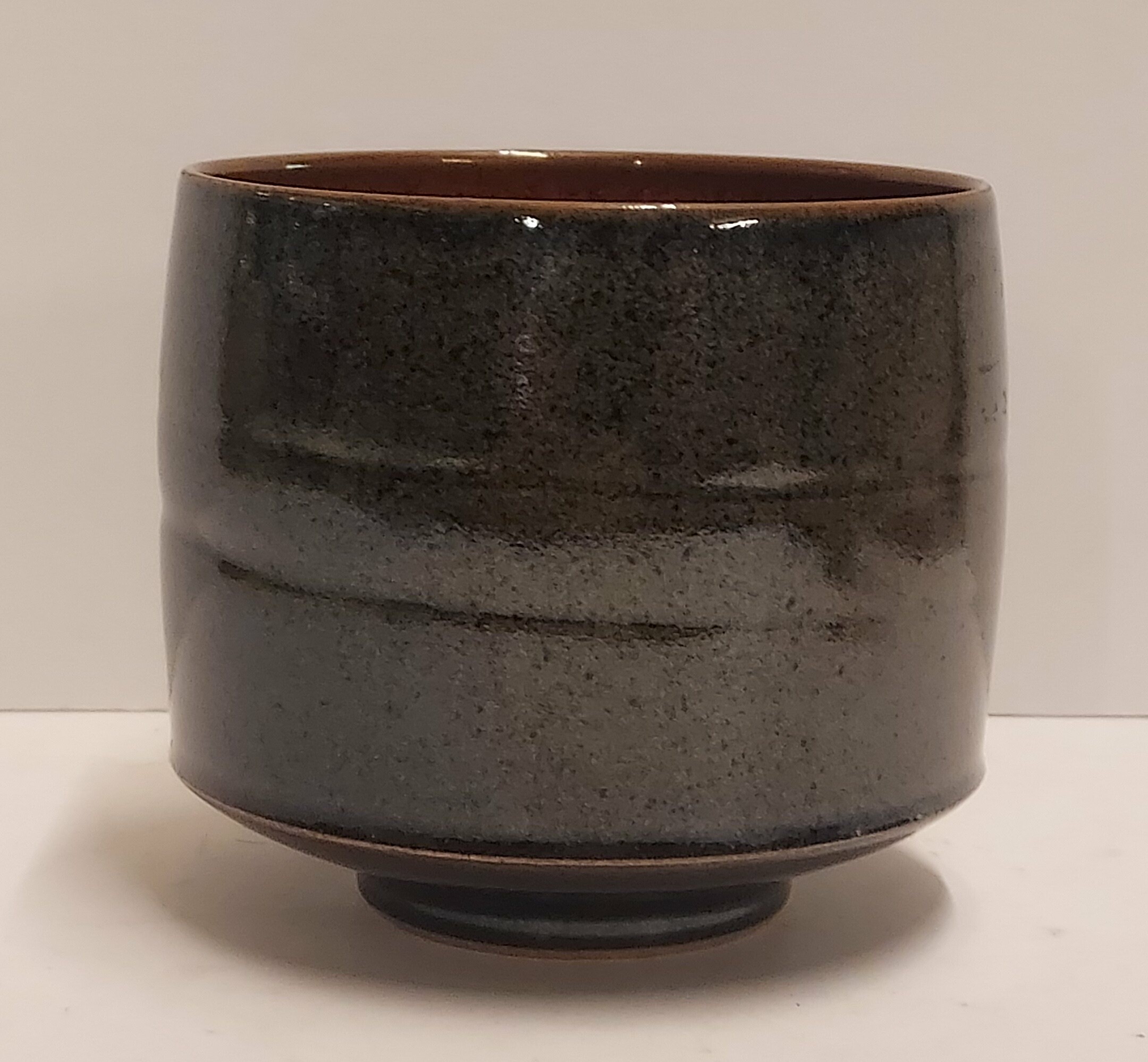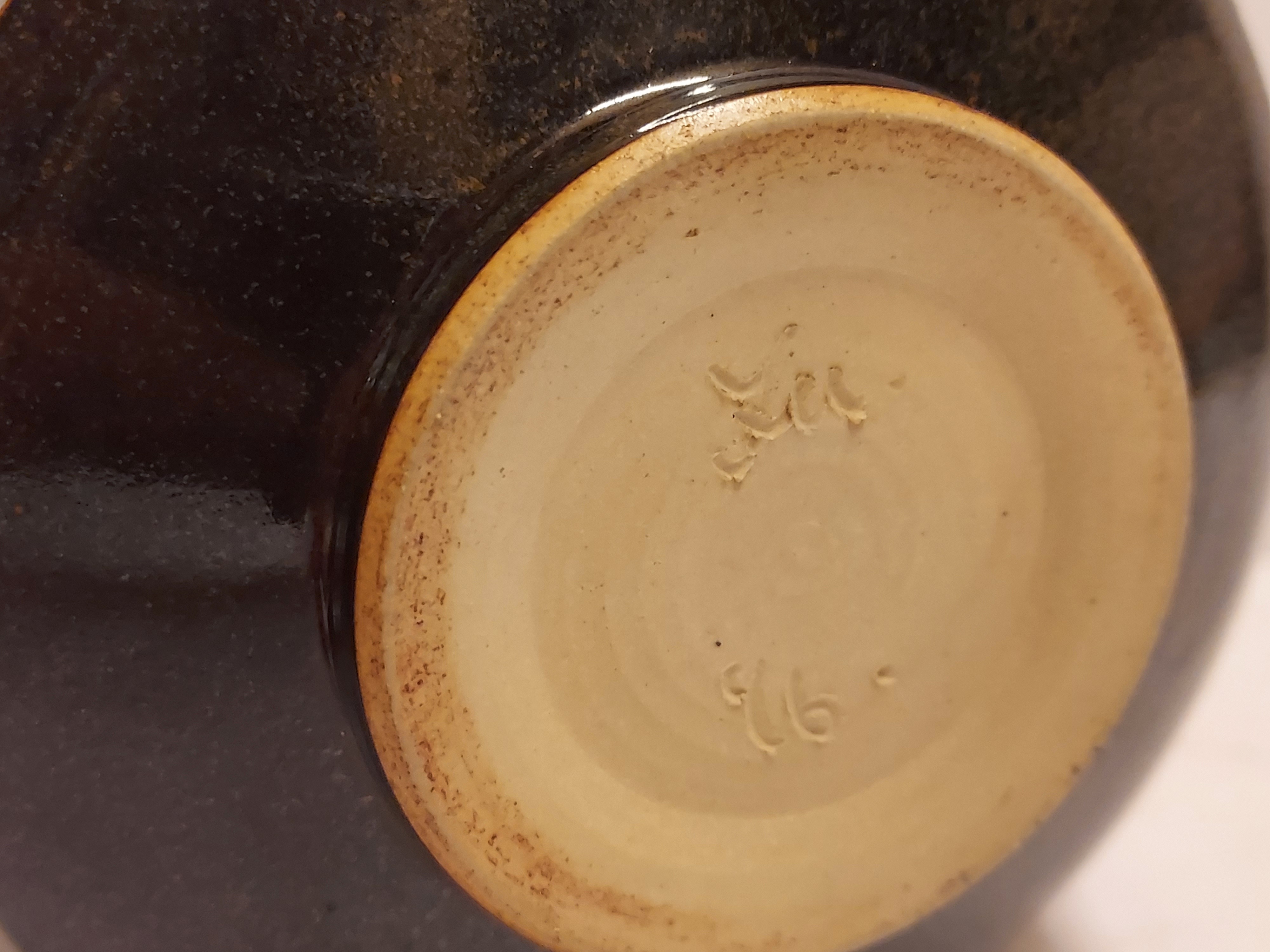Met fijne tenmoku glazuur. Onderzijde gemerkt.
