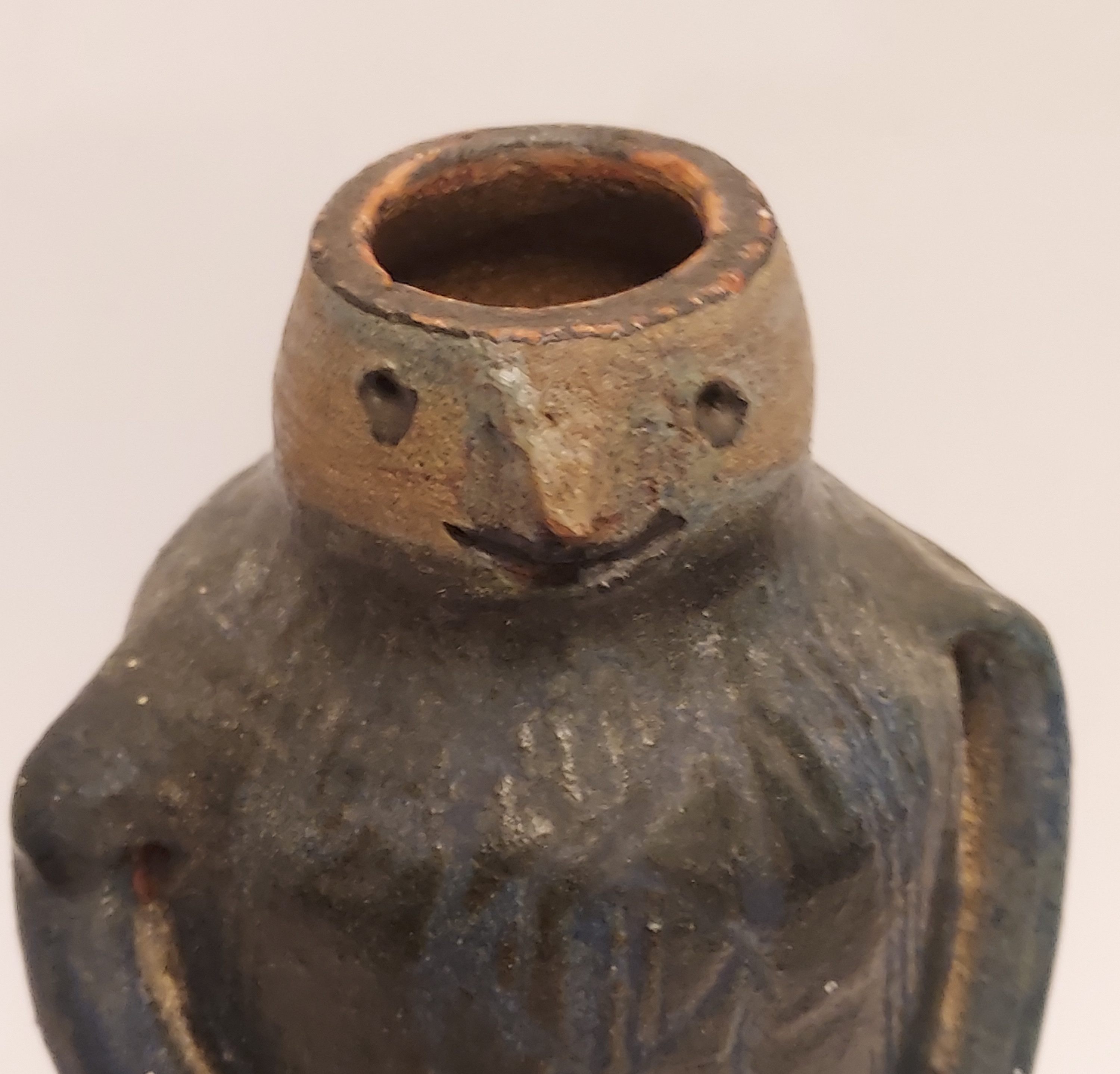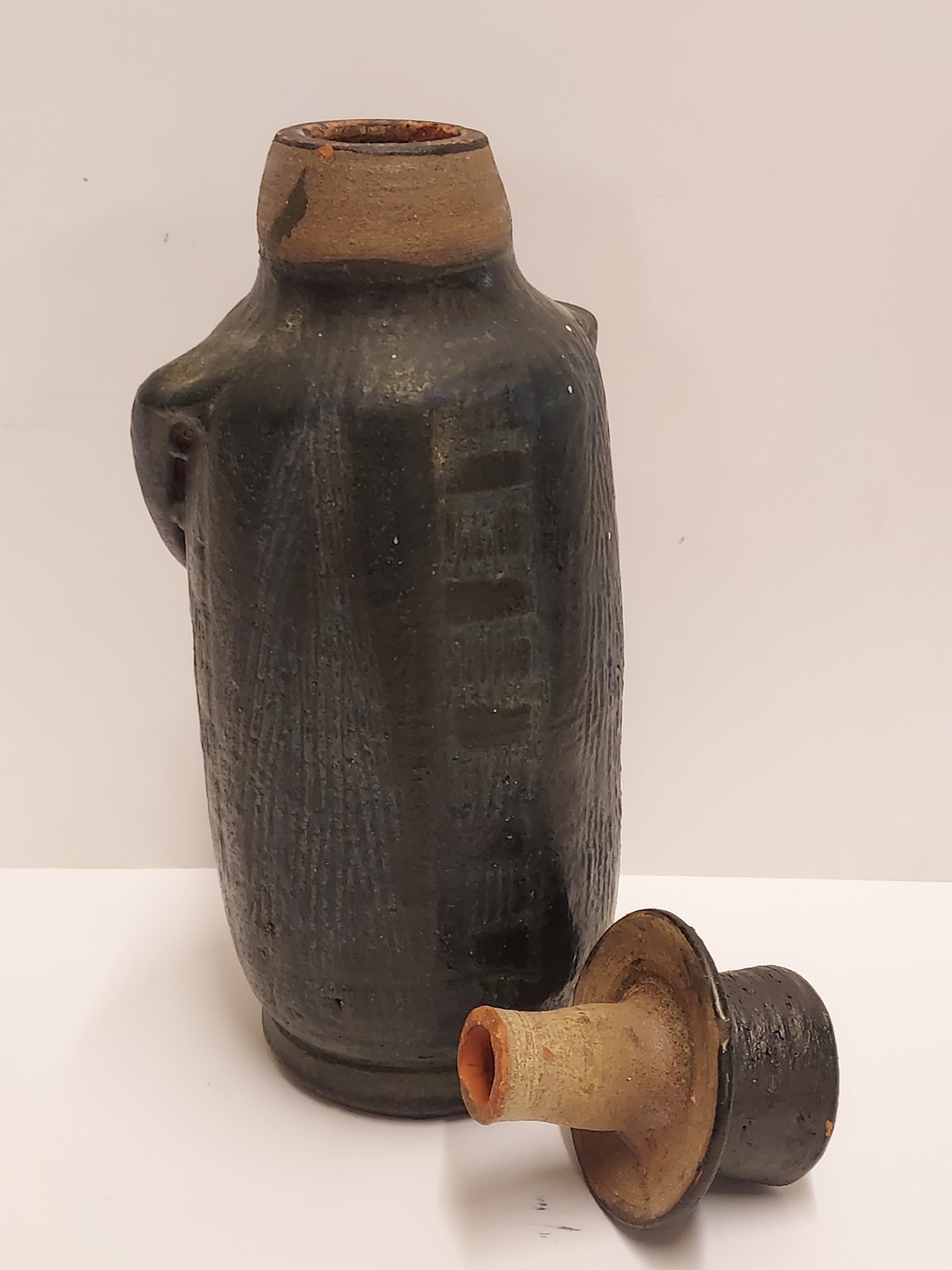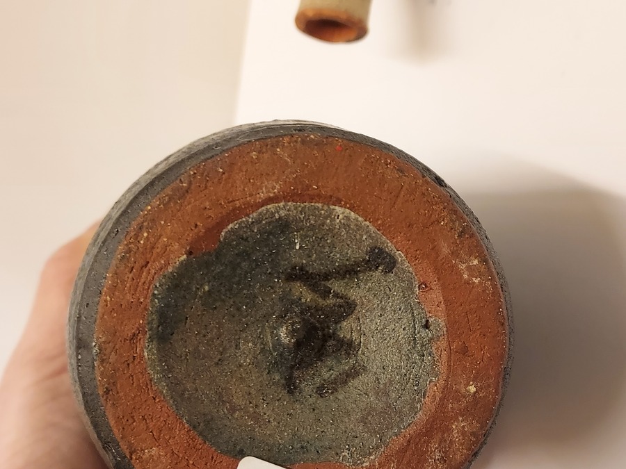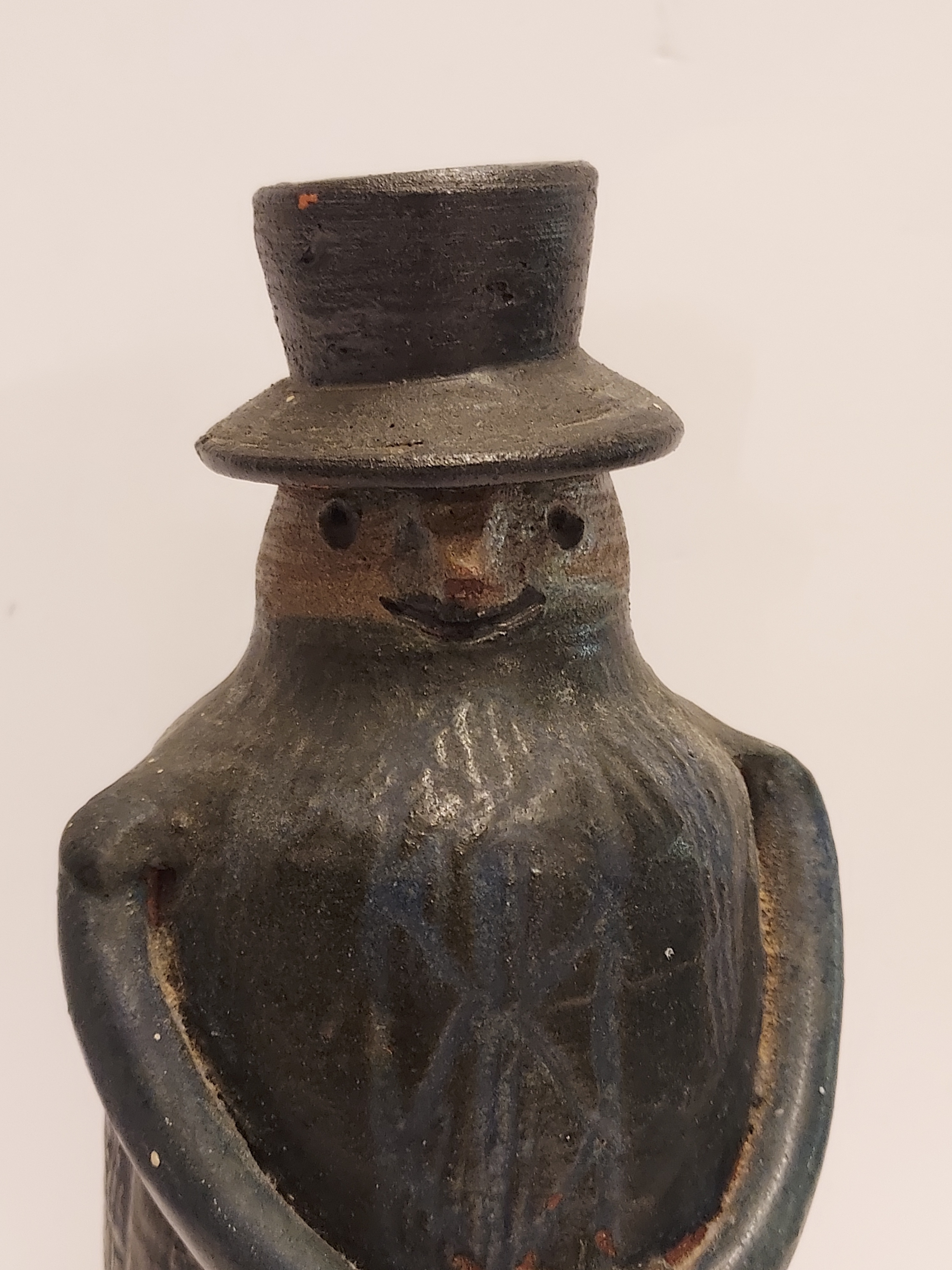 In de vorm van een mannetje met hoed. Onderzijde met monogram.