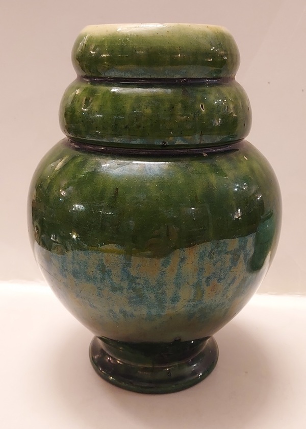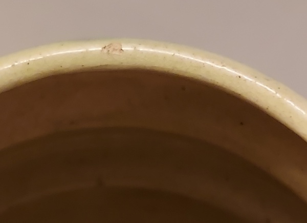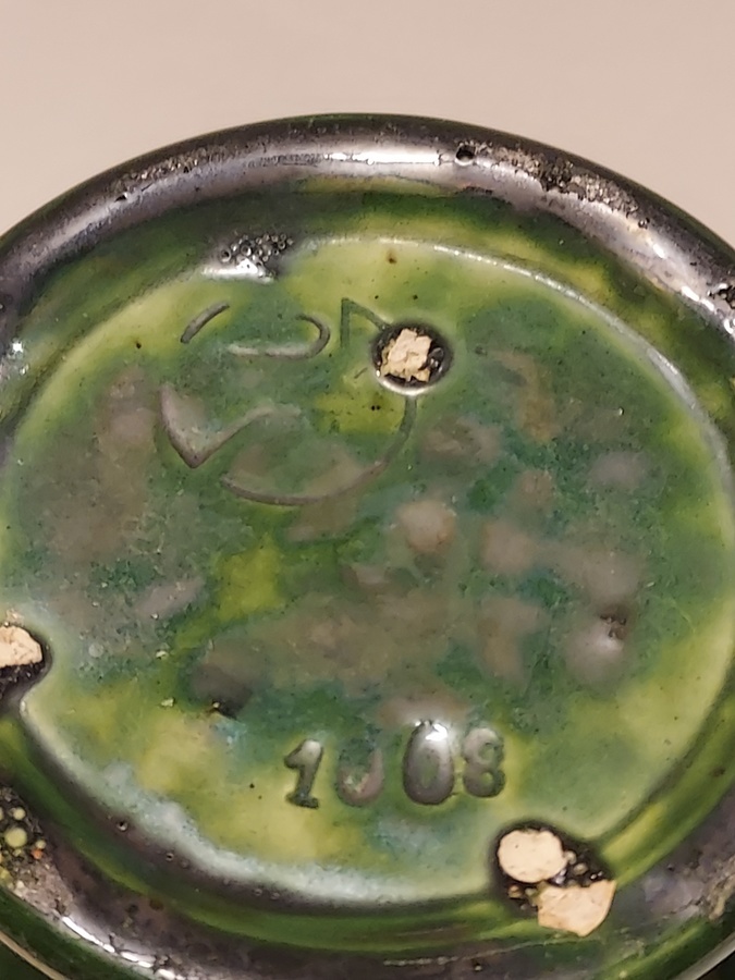 Model 1008 in typerende groene glazuur met crème binnenzijde.