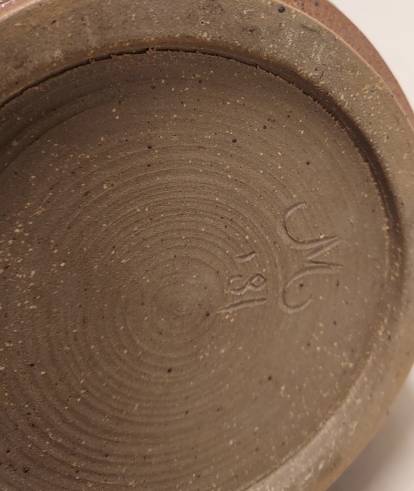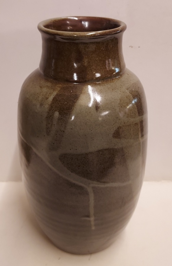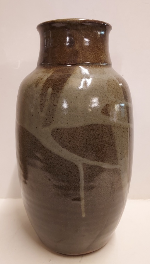 Steengoed vaas met groene glazuur. Gesigneerd. net monogram '81. Ex collectie Stubbe Groningen