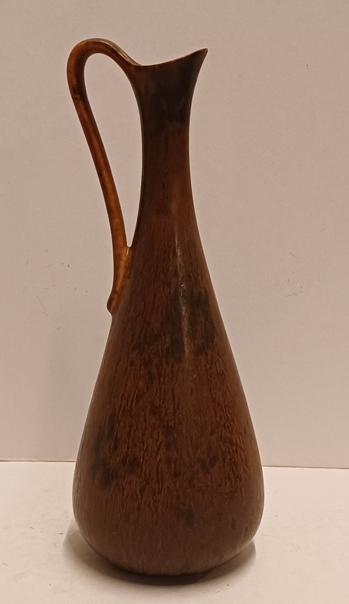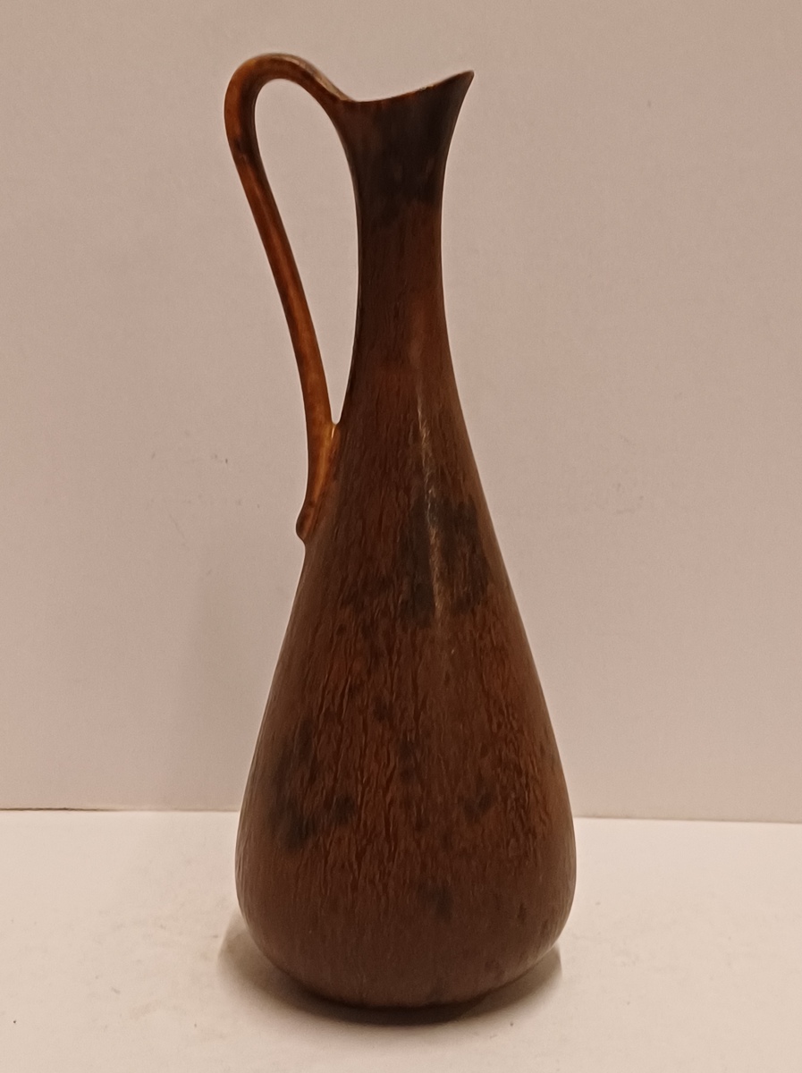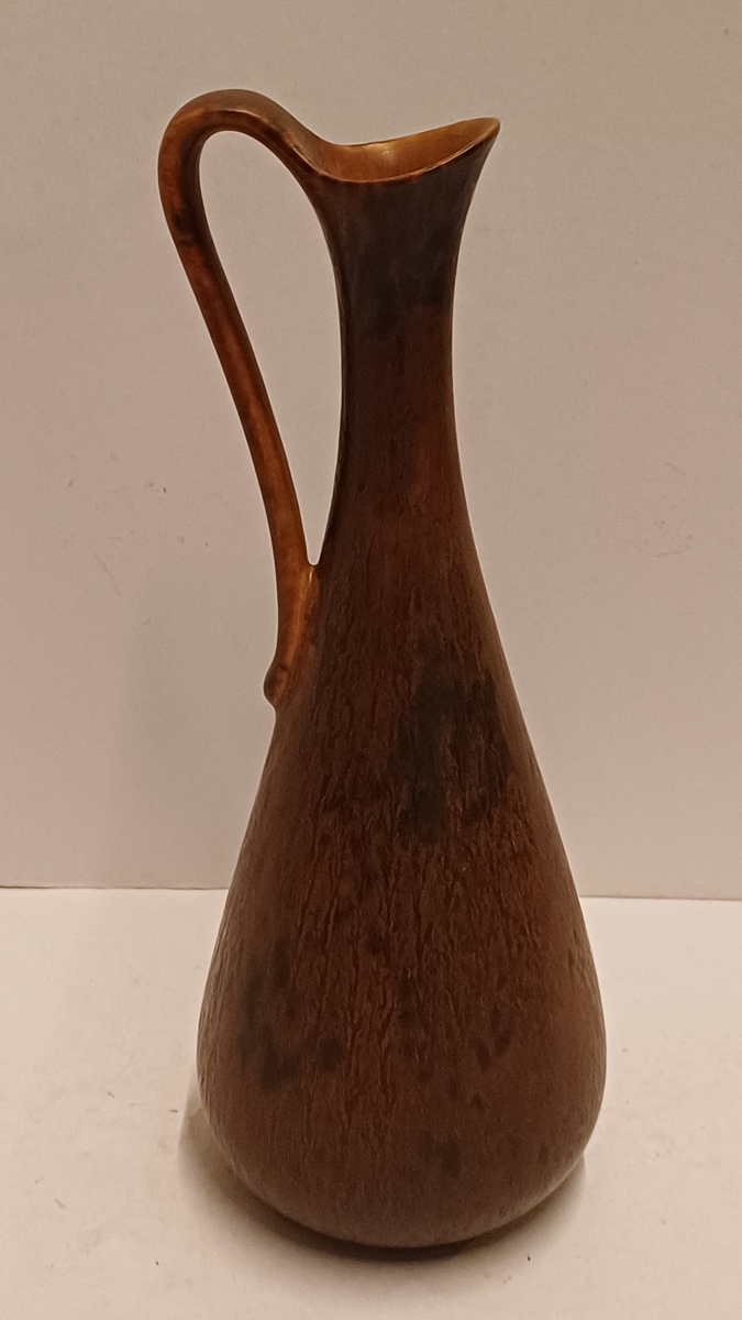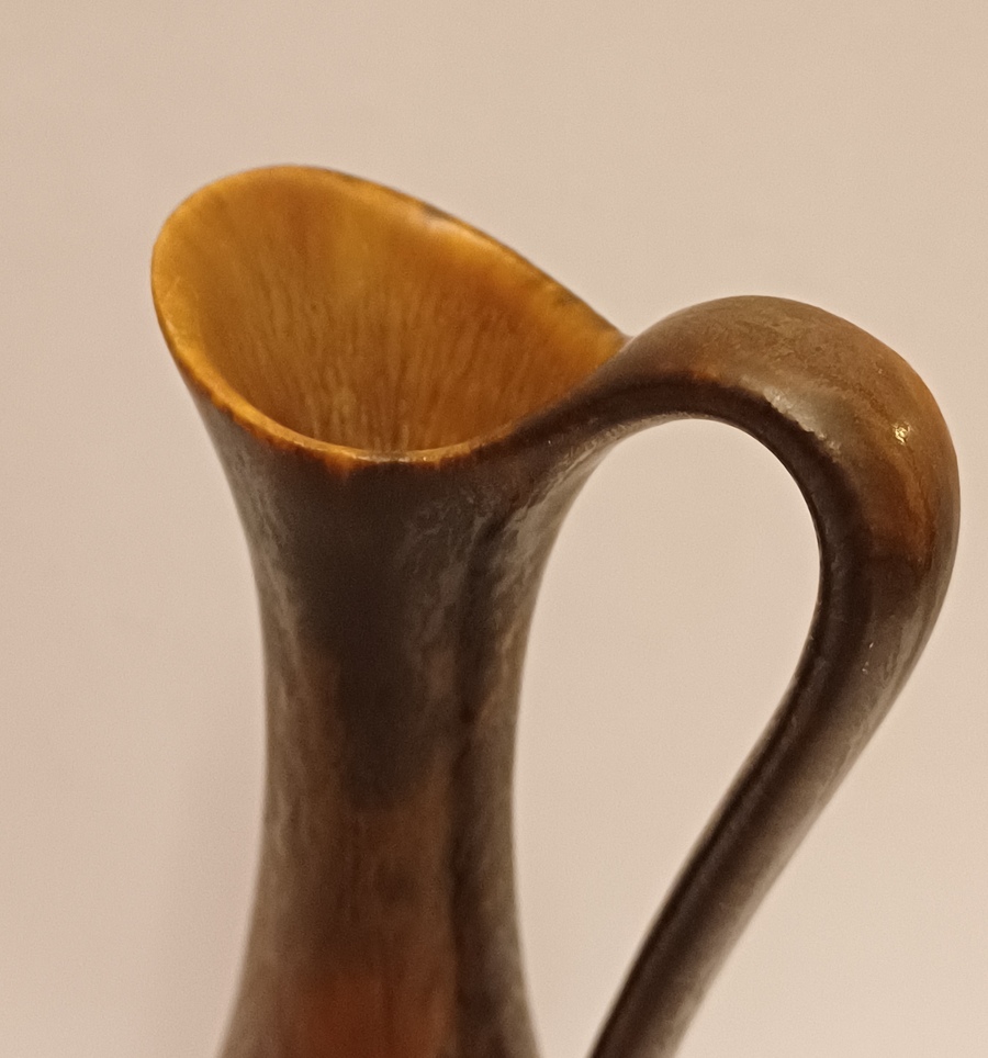 Aardewerken kannetje met bruine glazuur. Ontwerp Gunnar Nylund voor Rorstrand Sweden.