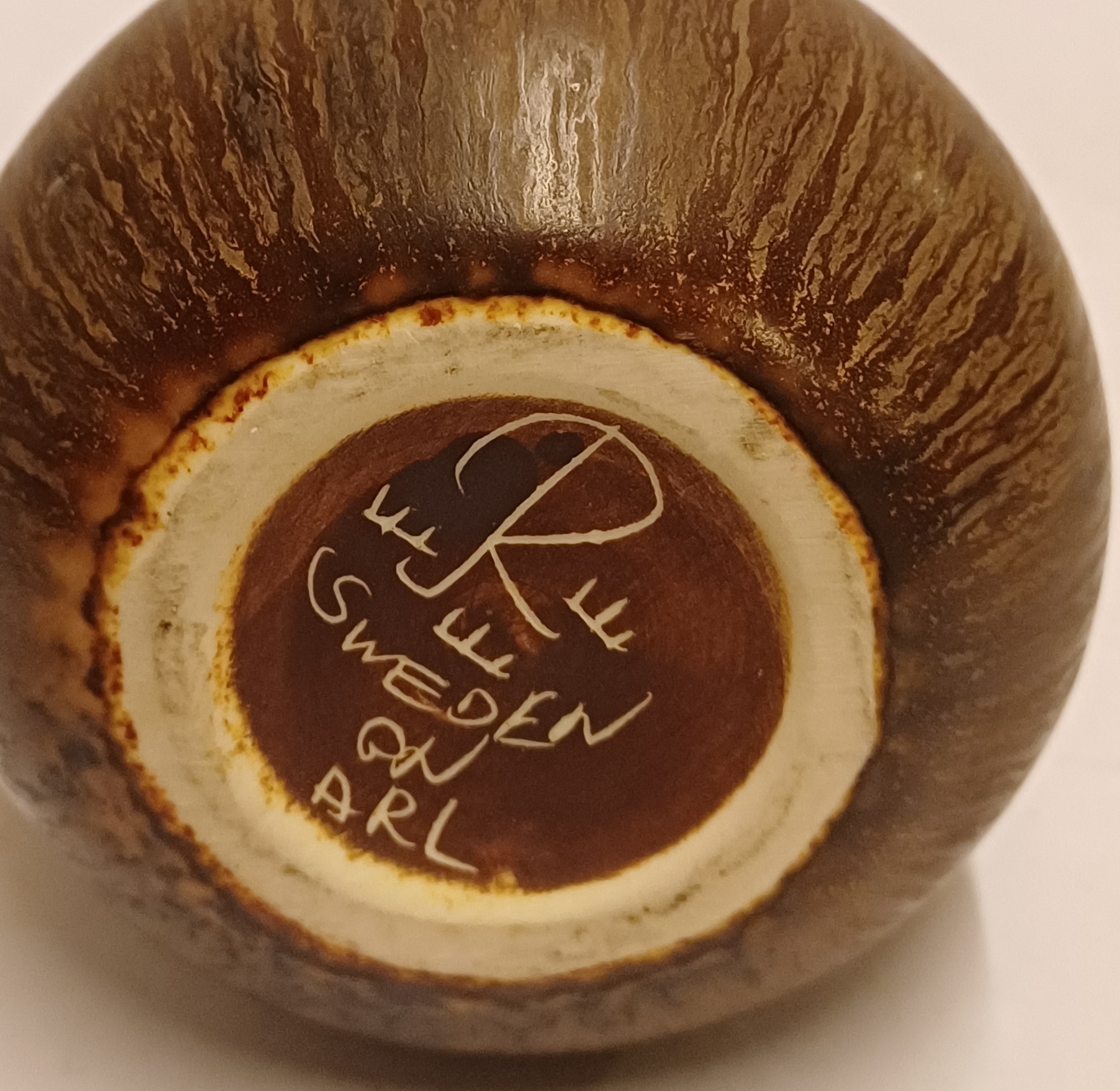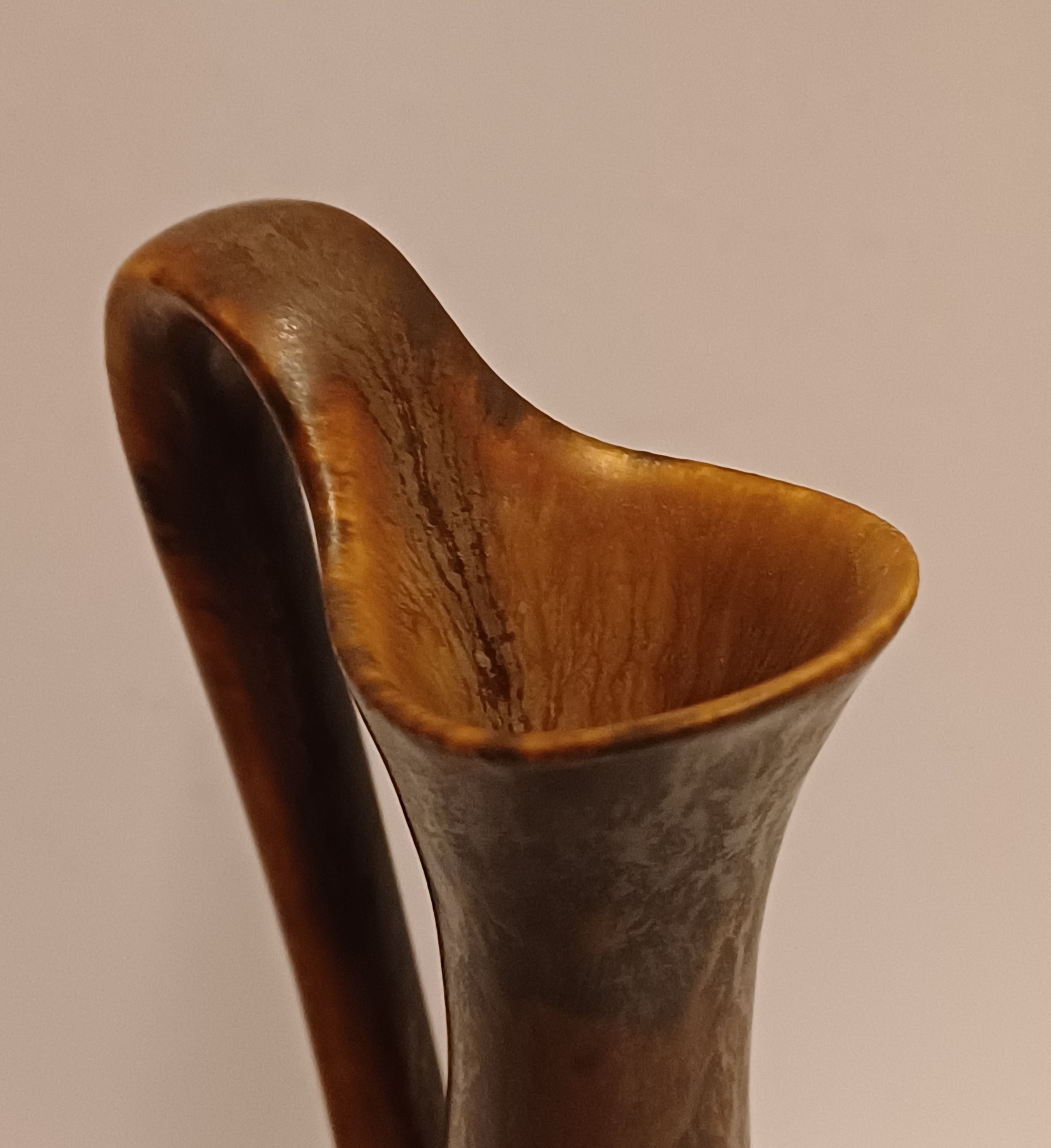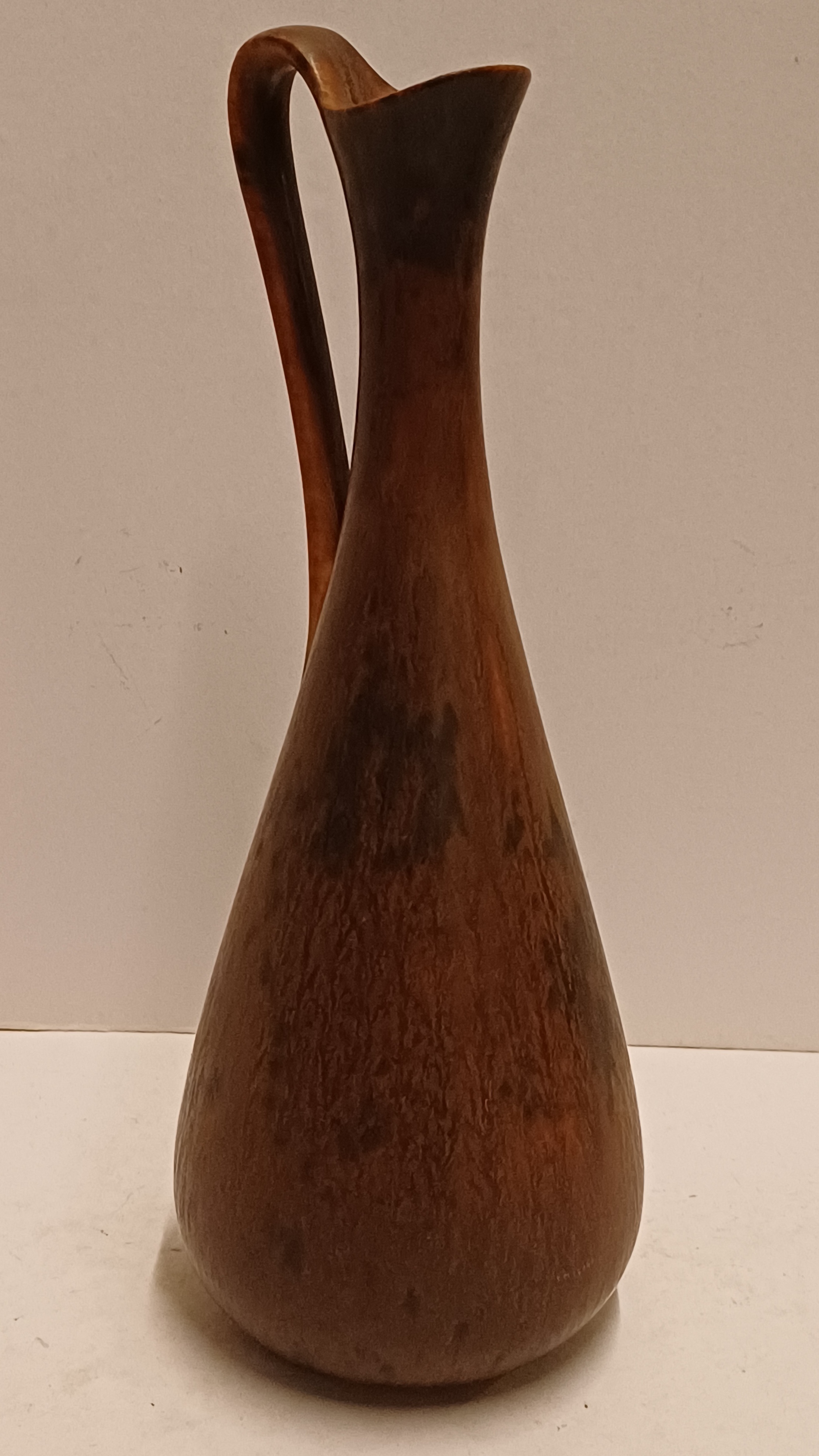 Aardewerken kannetje met bruine glazuur. Ontwerp Gunnar Nylund voor Rorstrand Sweden.