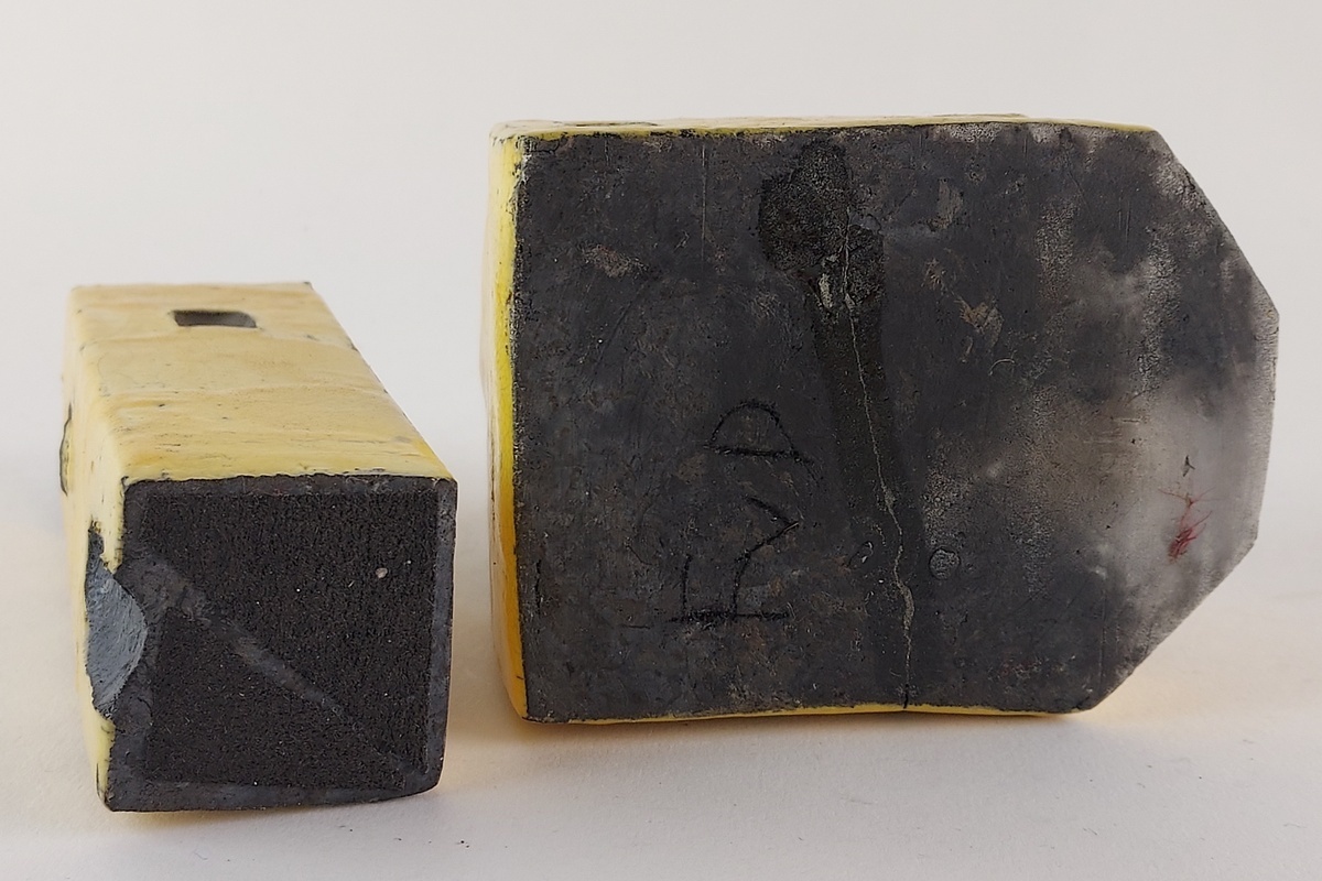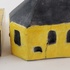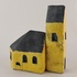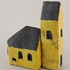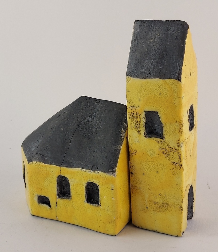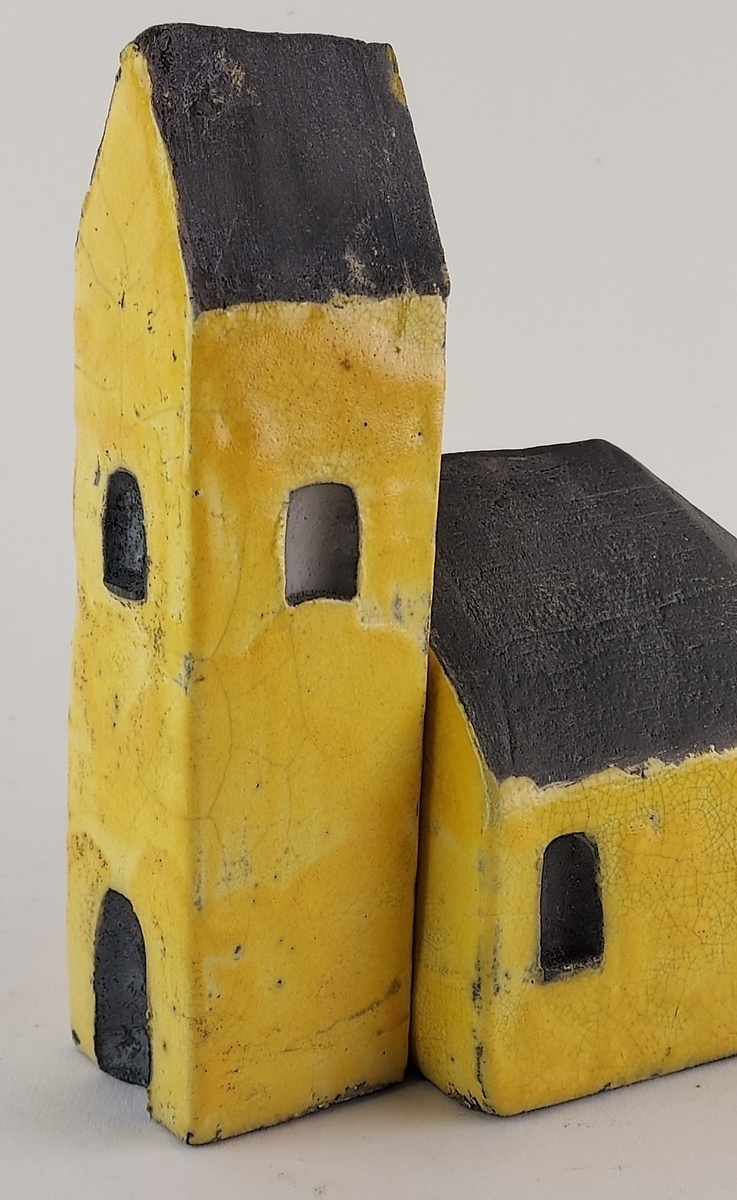 Keramische 2-delige sculptuur van het gele kerk in Westernieland. Onderzijde signatuur FvD