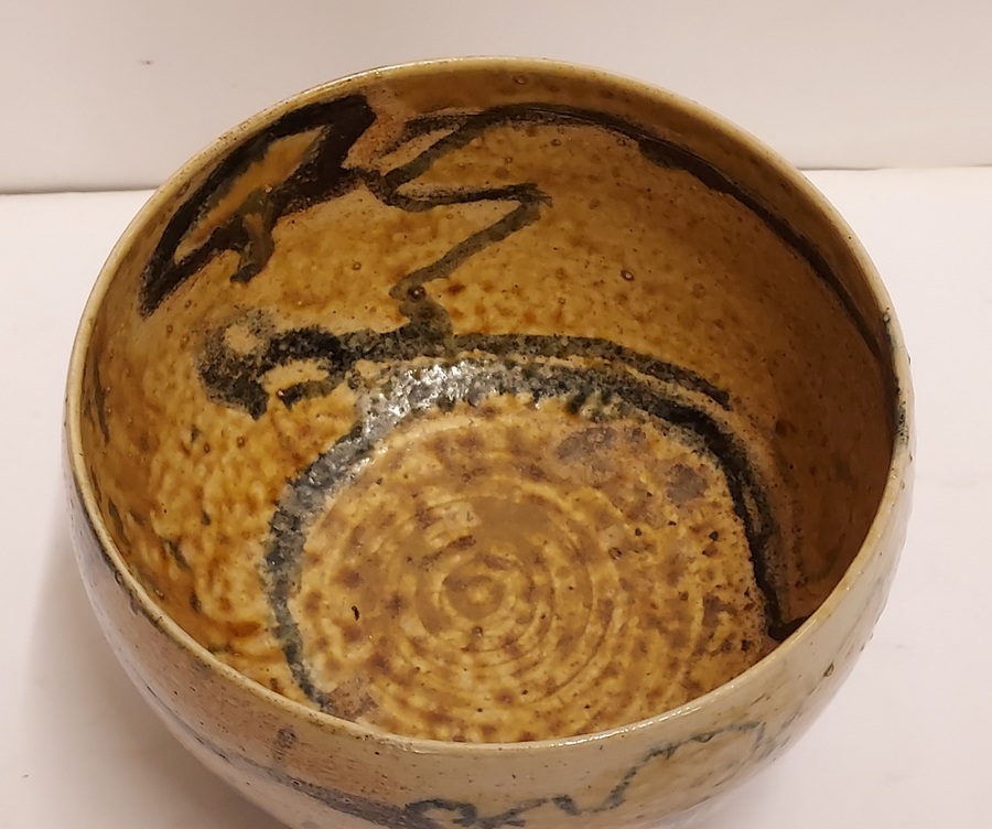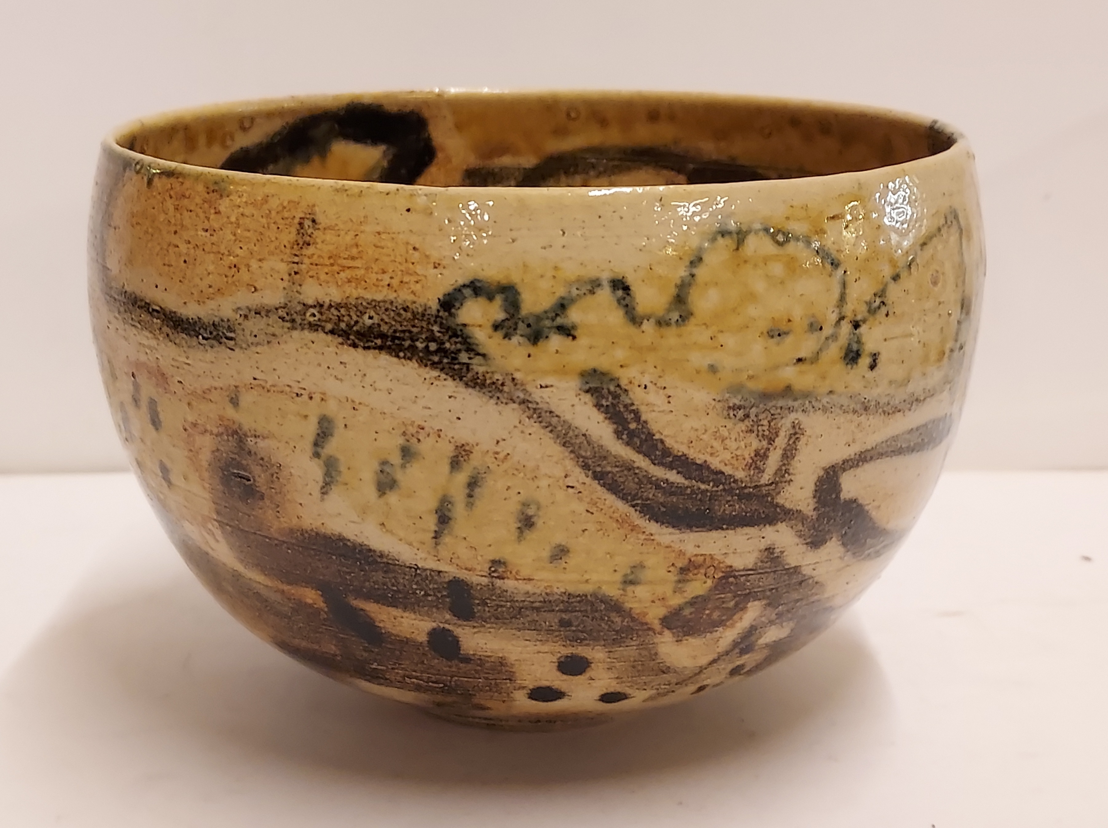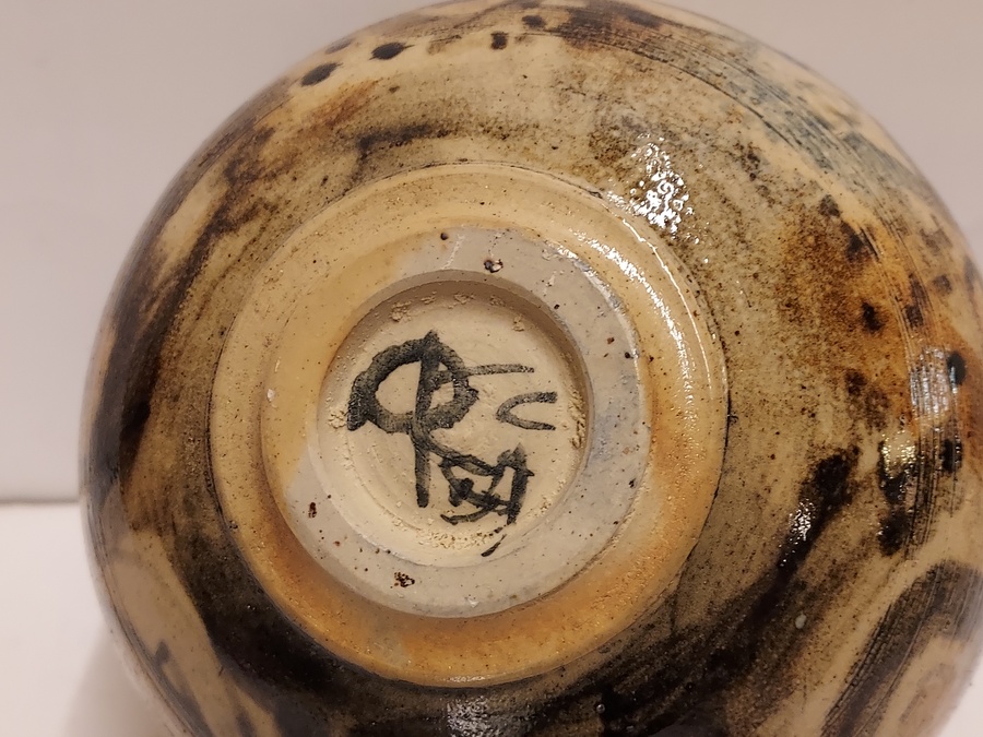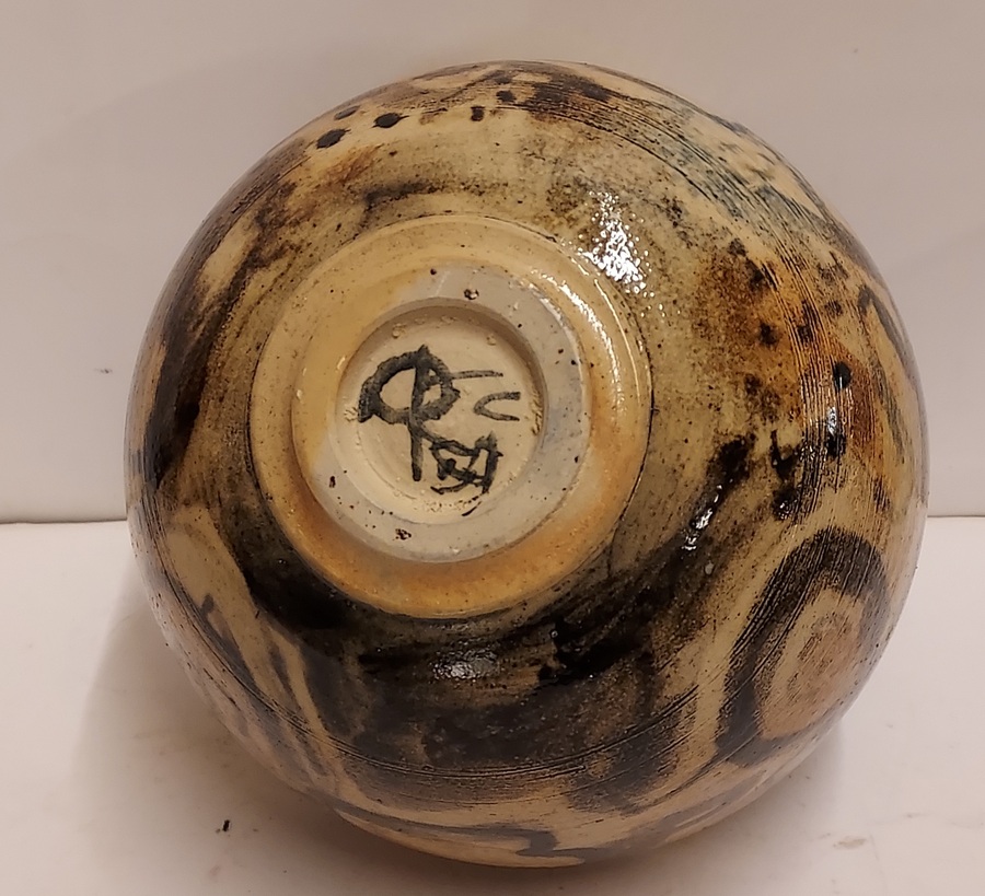 Met abstracte decoratie. Onderzijde gesigneerd.
