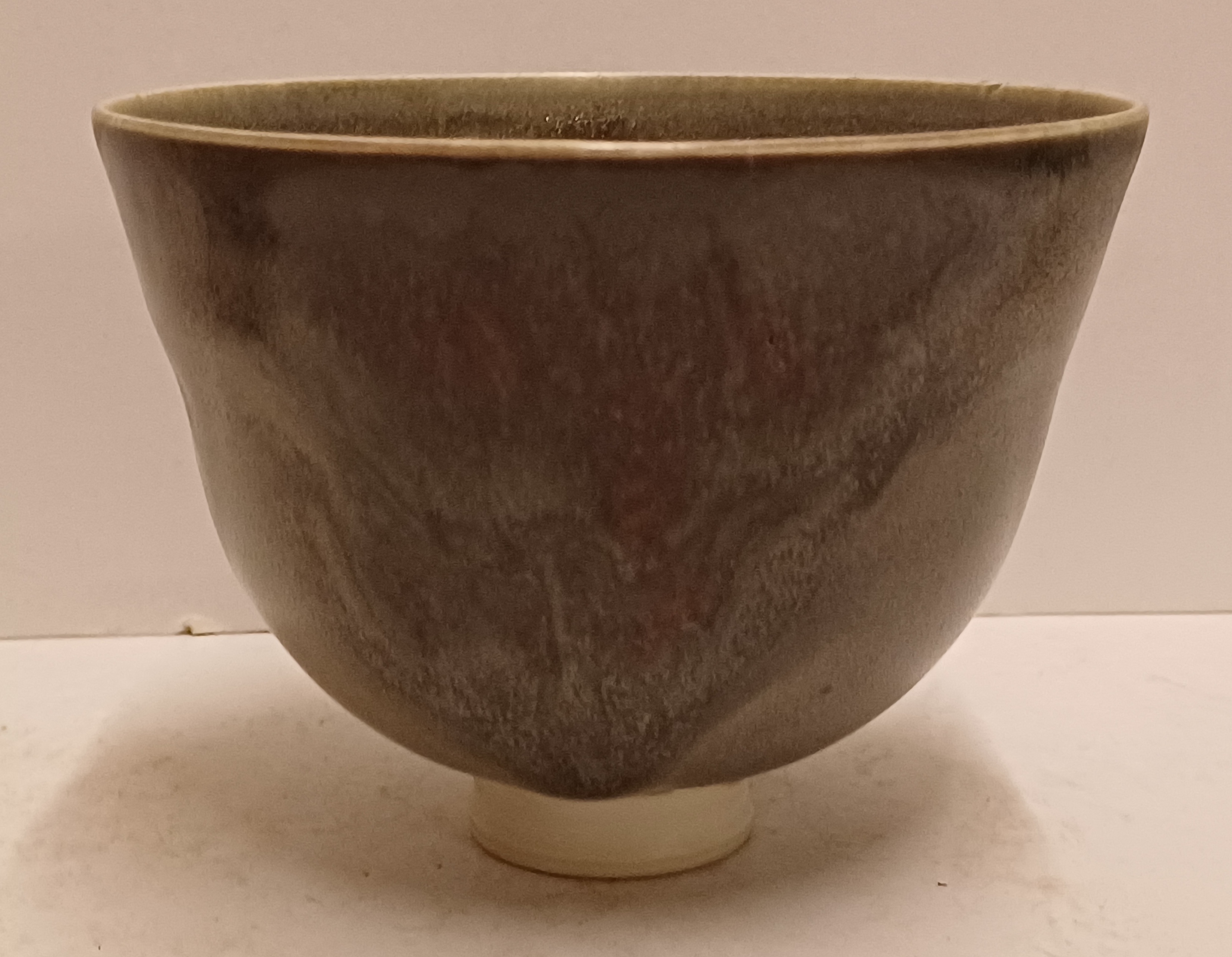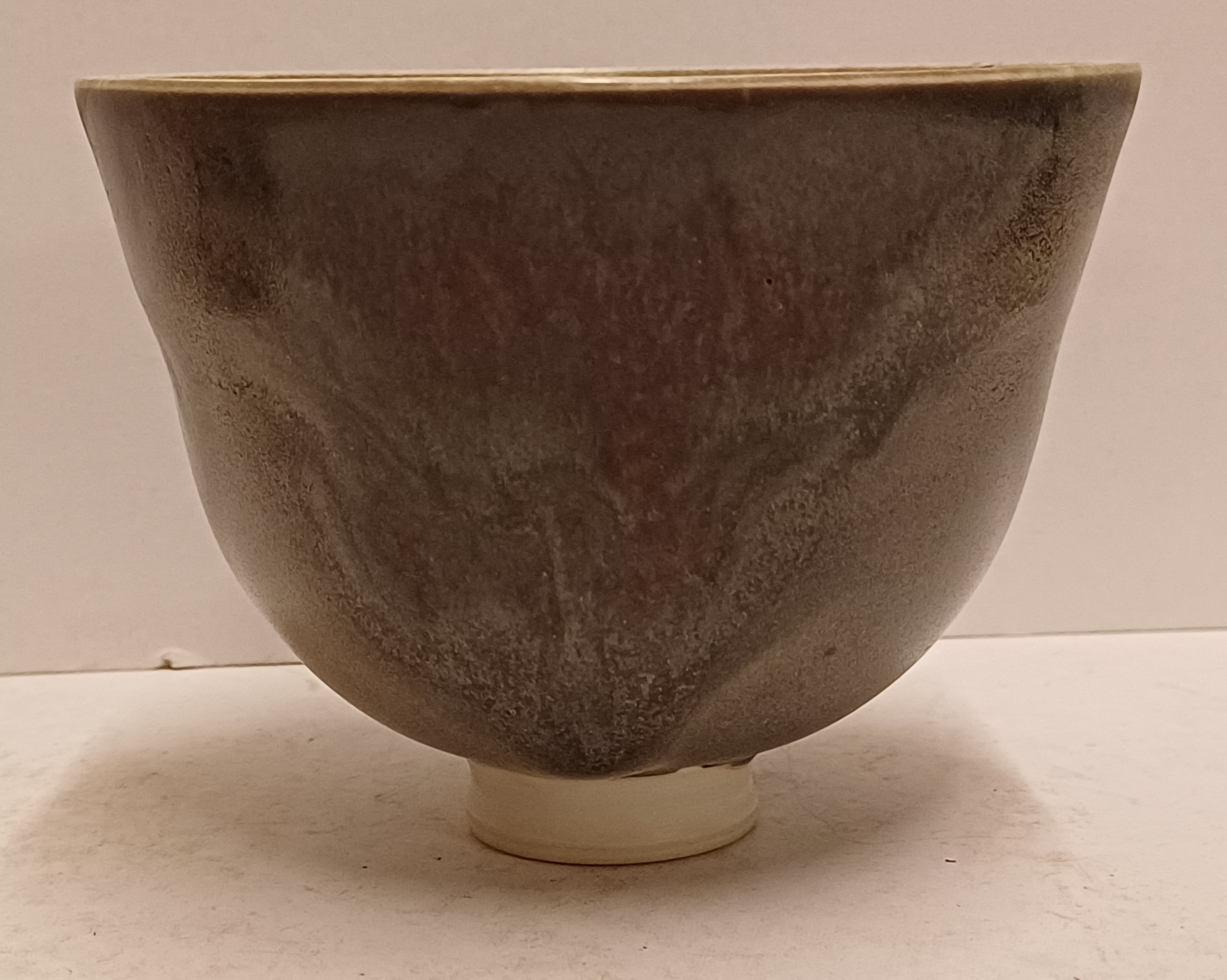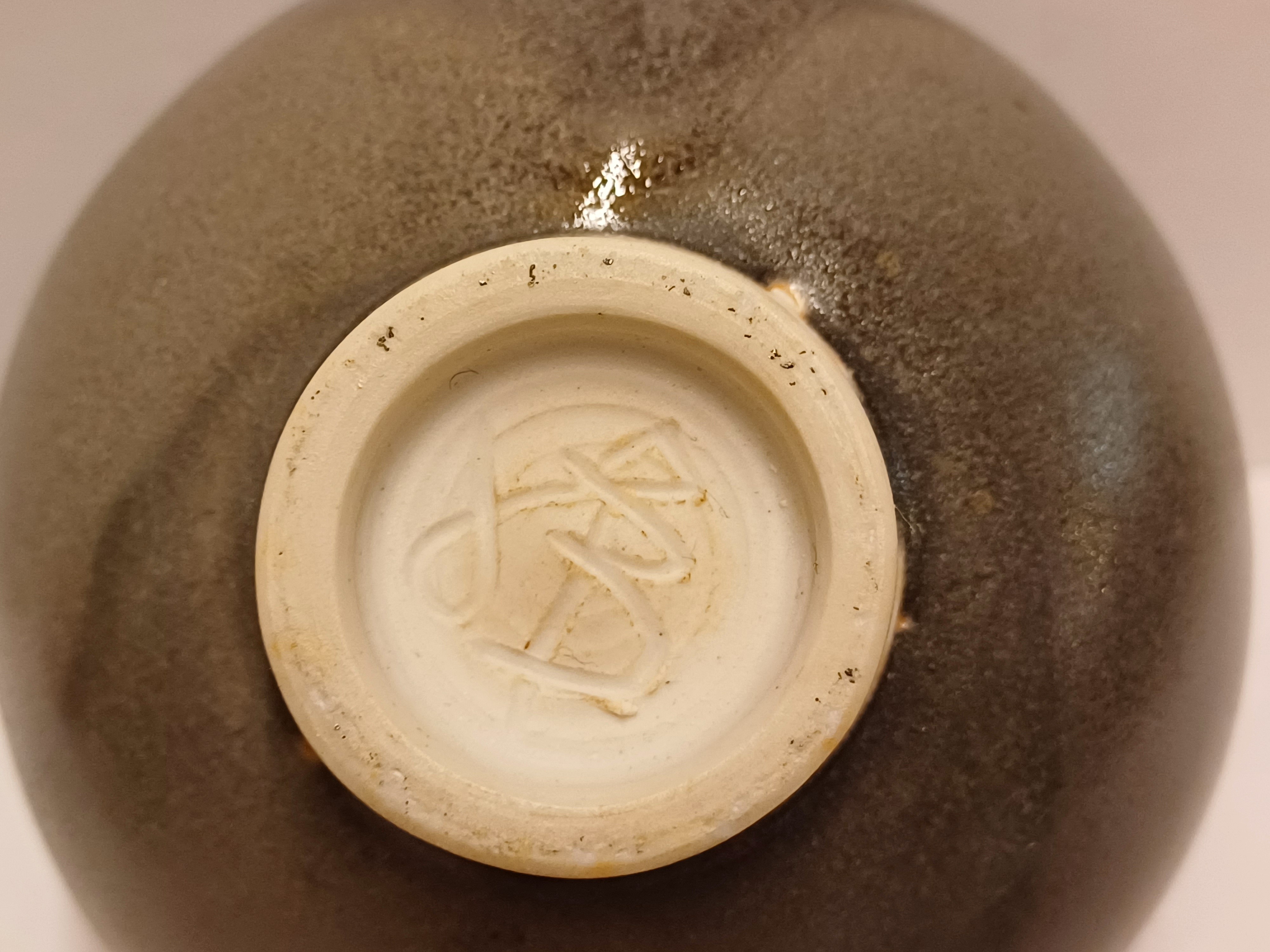 Porseleinen kom met grijze glazuur met rode sang de Bouef splash. Onderzijde met monogram