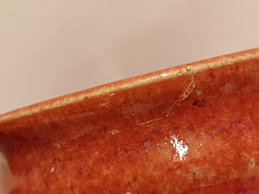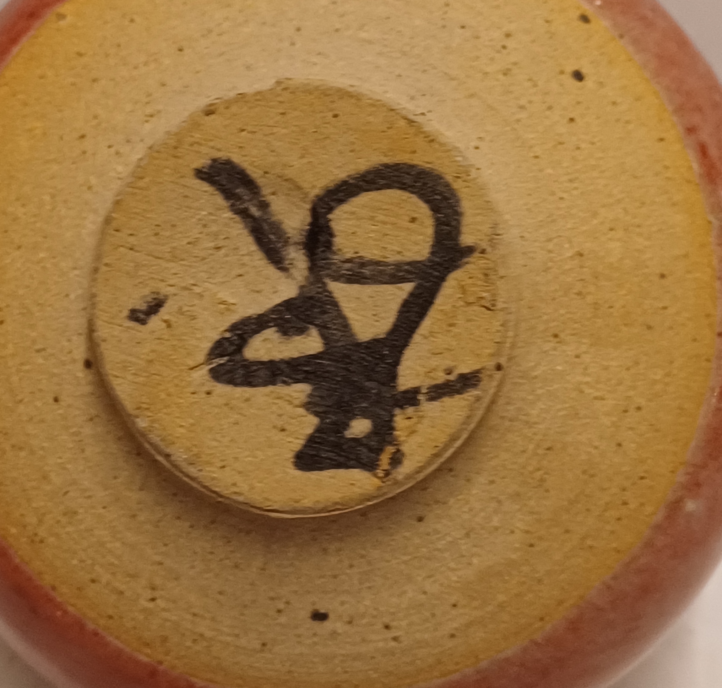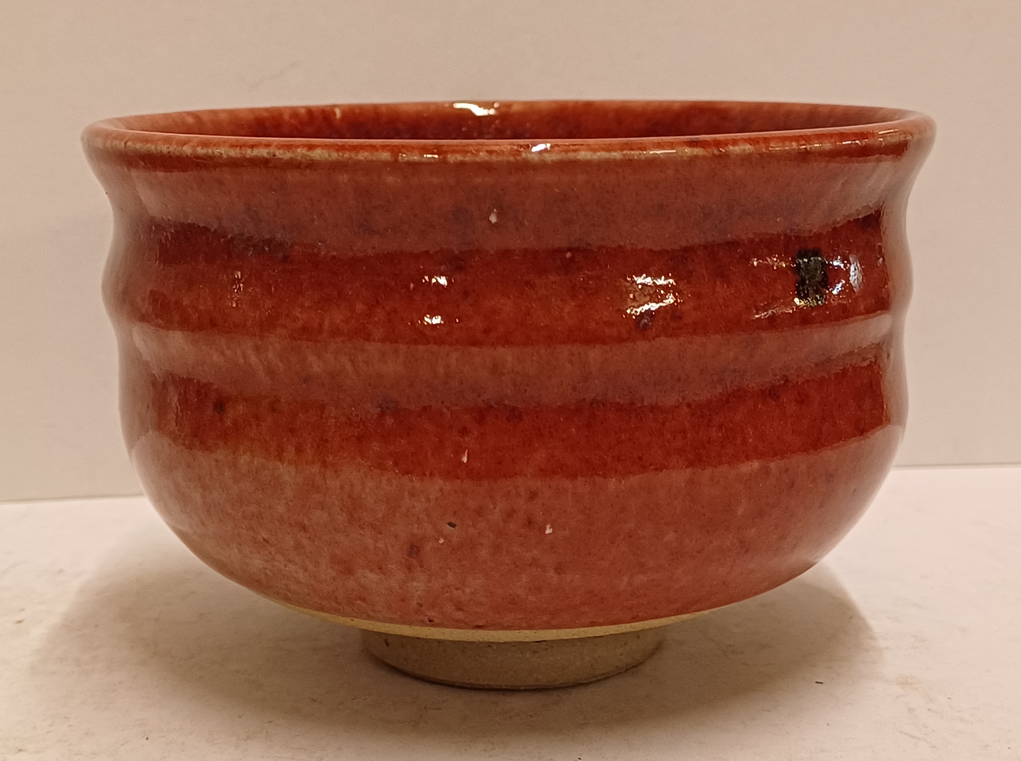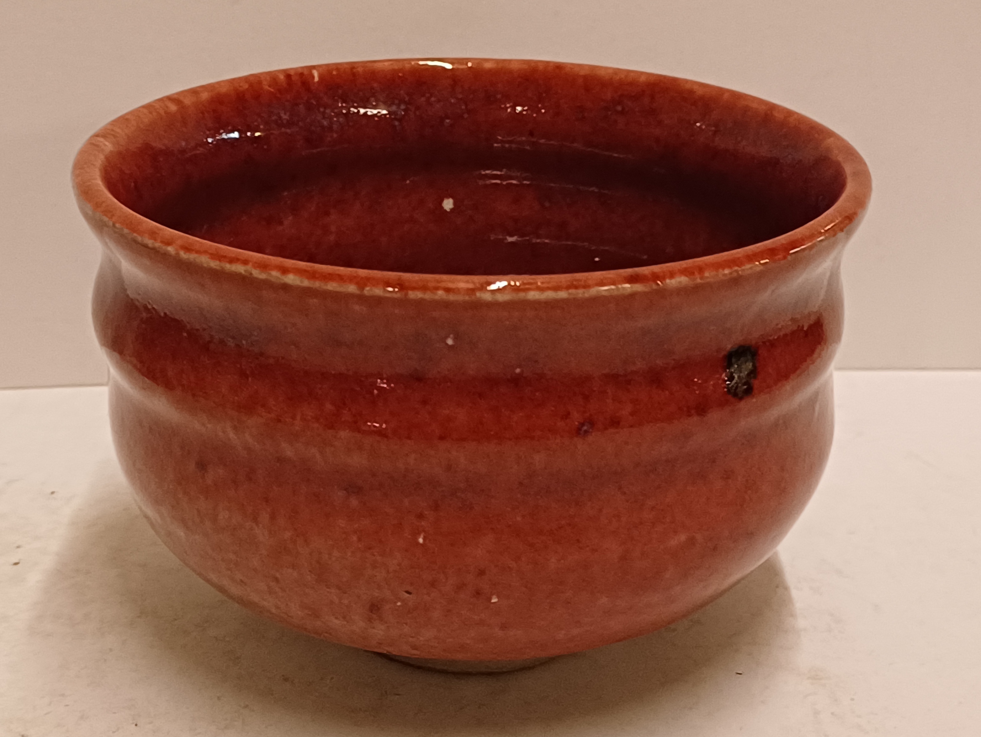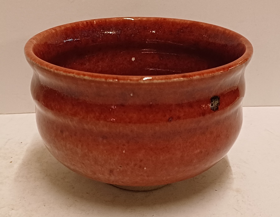 Steengoed kom met rode sang de bouef glazuur. Onderzijde met kunstenaars monogram.