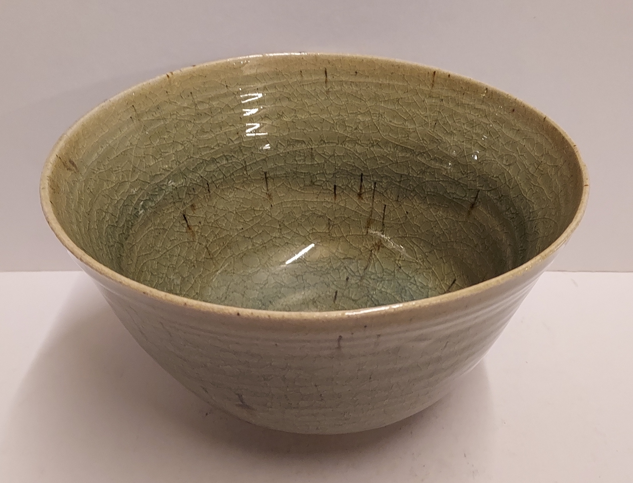 Grote kom met groen celadon glazuur. Ogenschijnlijk niet gesigneerd.