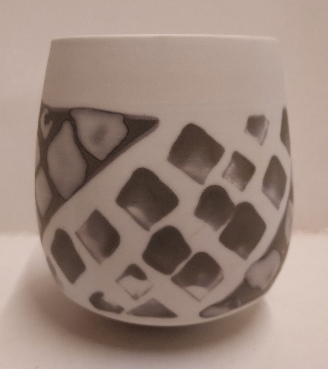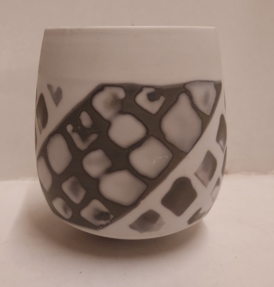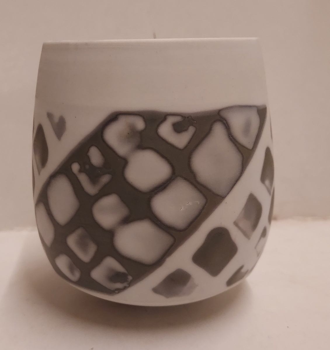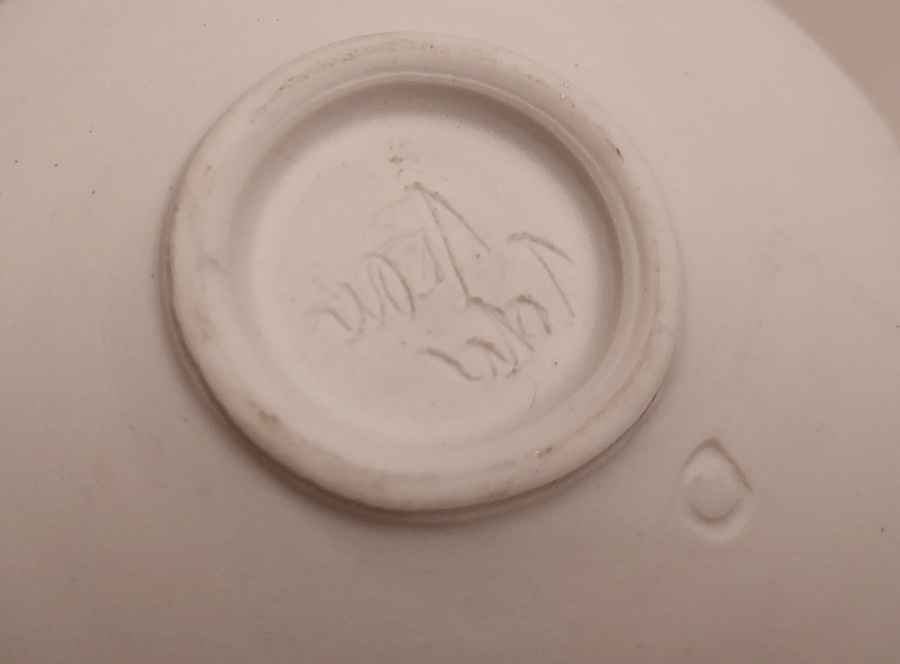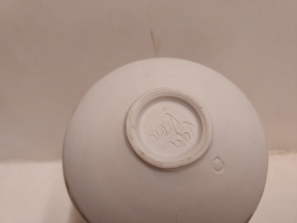 Met grijze band decoratie. Onderzijde gemerkt.