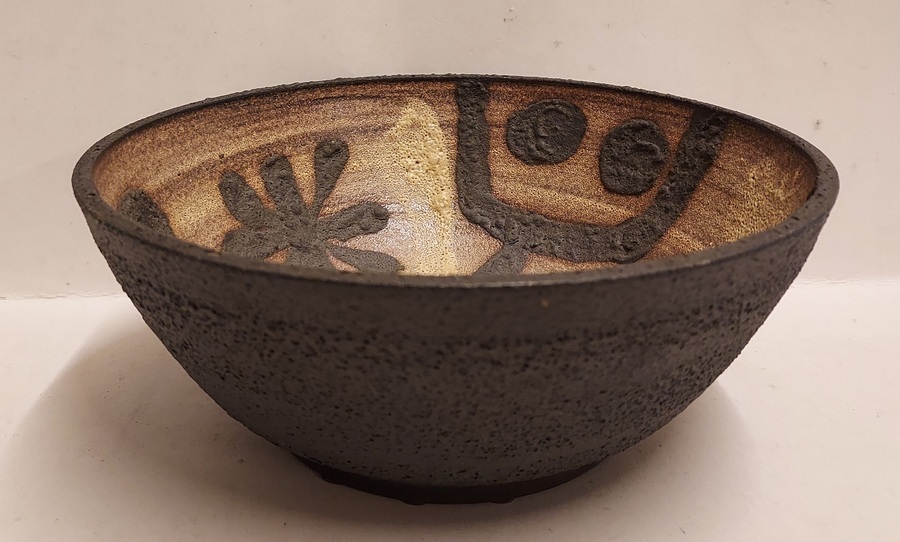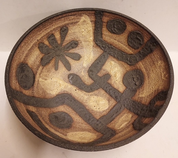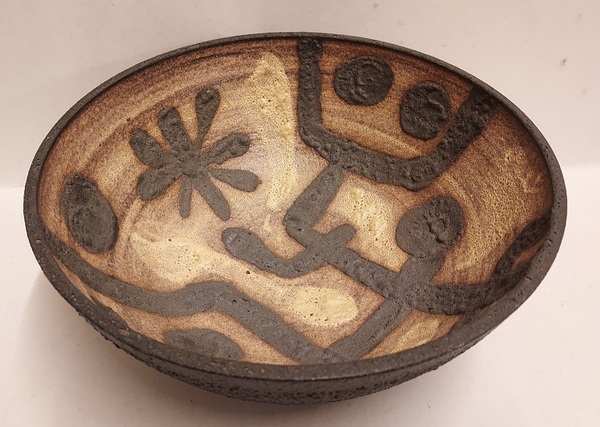 Grote kom met abstracte cobra achtige decoratie. Voluit gesigneerd en codering.