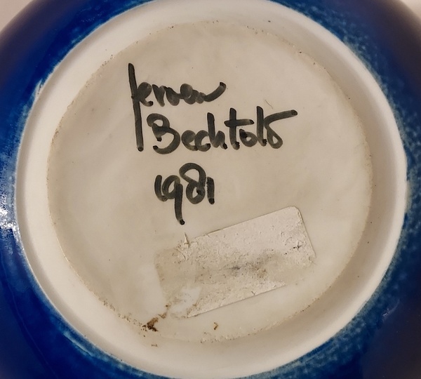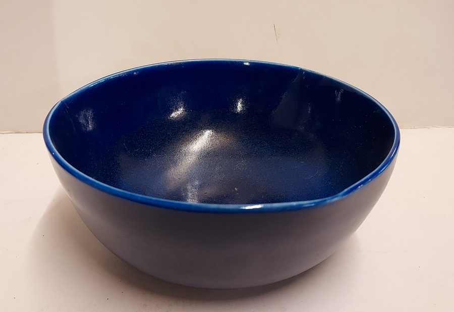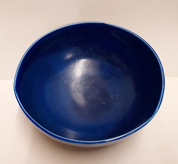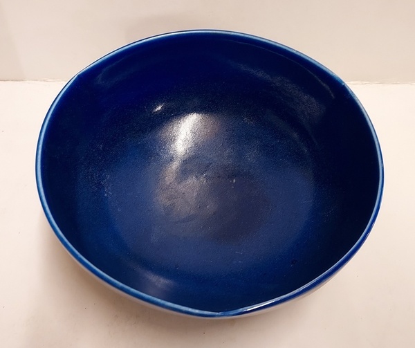 Glanzend blauw geglazuurde unica kom. Uitvoering eigen studio 1981.