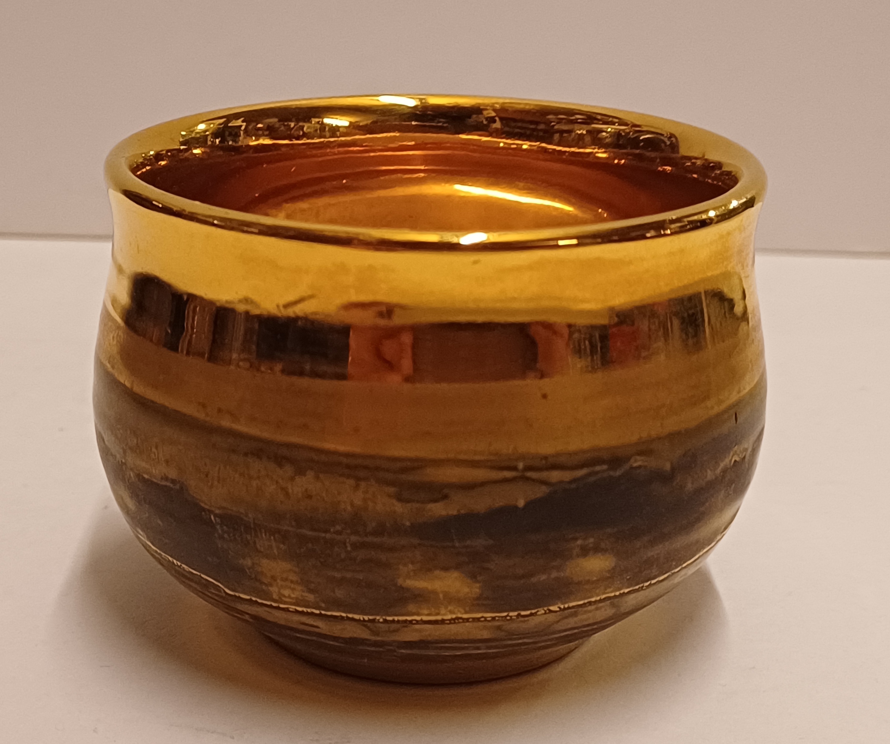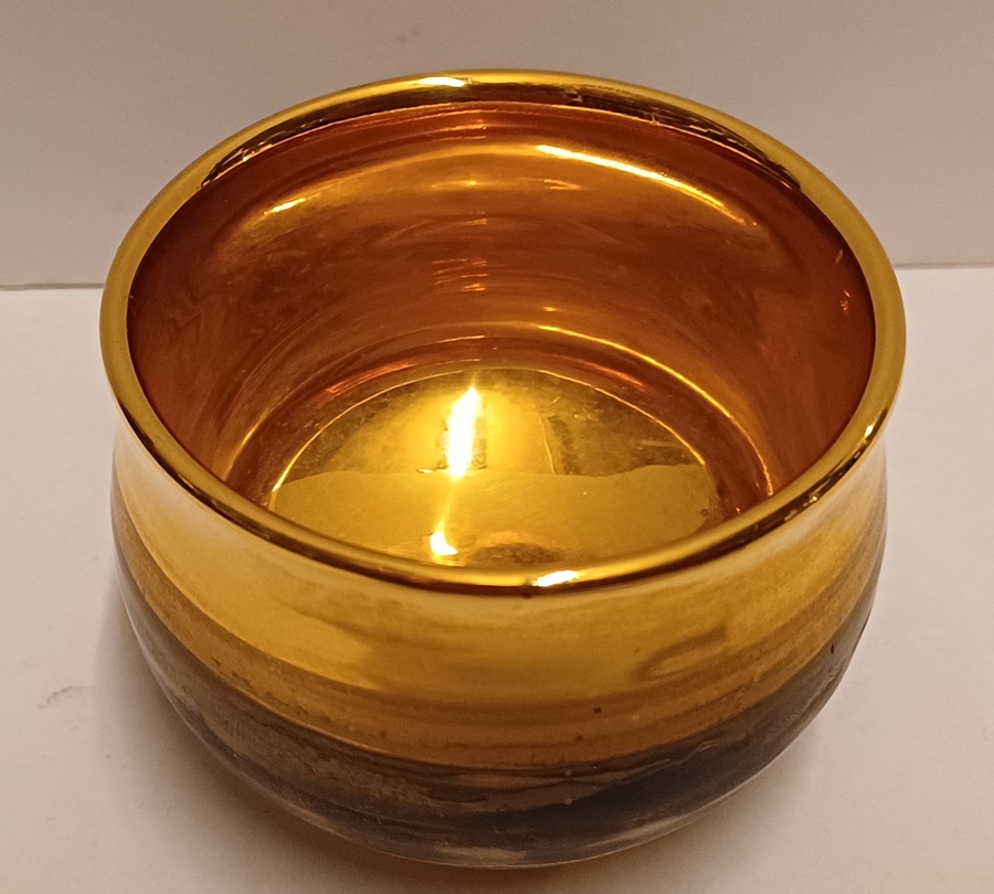Aardewerken kom met vergulde gouden glazuur. Onderzijde voluit gesigneerd.