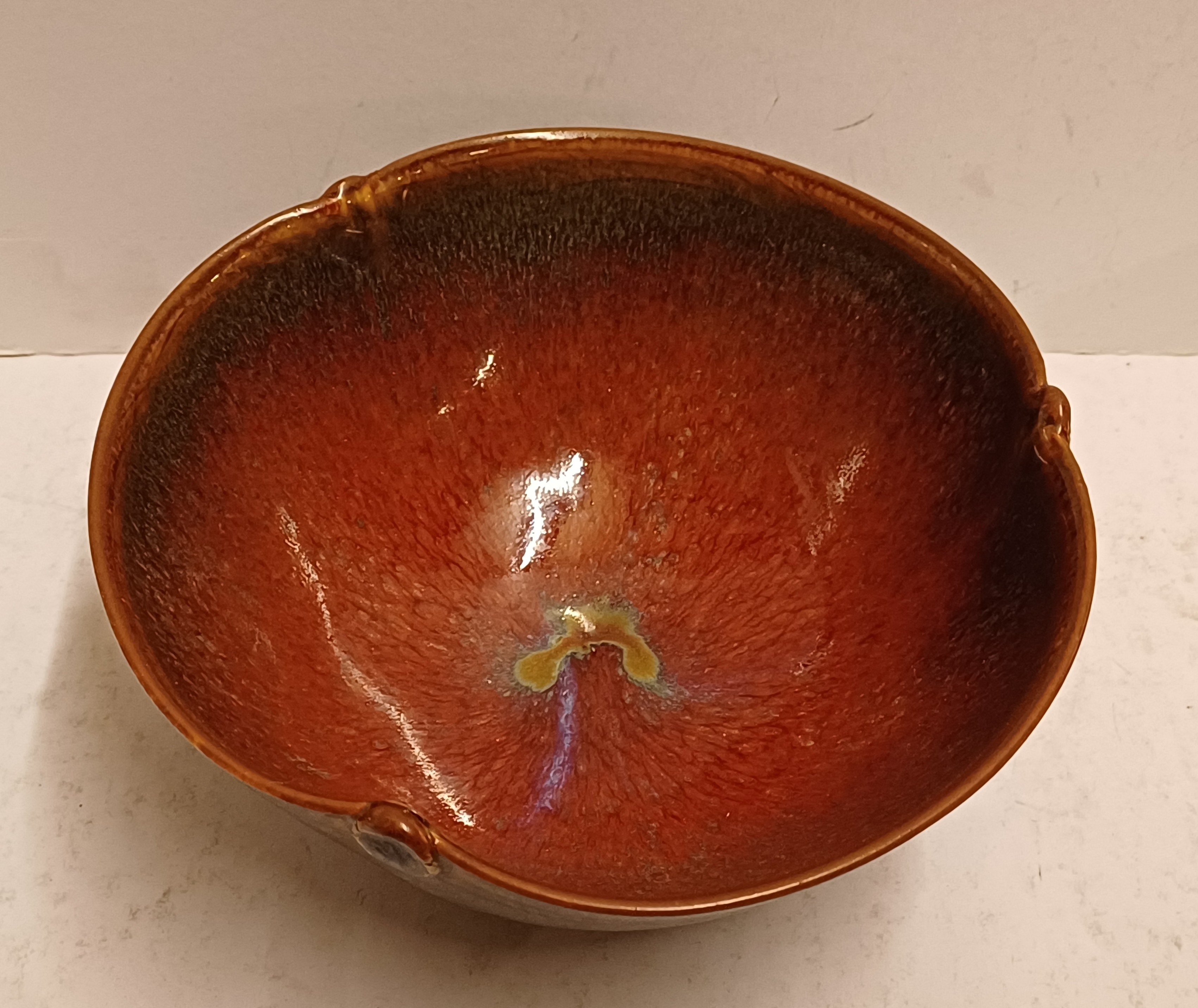 Kom met rode sang de boeuf glazuur. Onderzijde met kunstenaars signatuur.