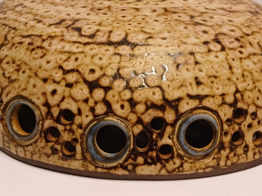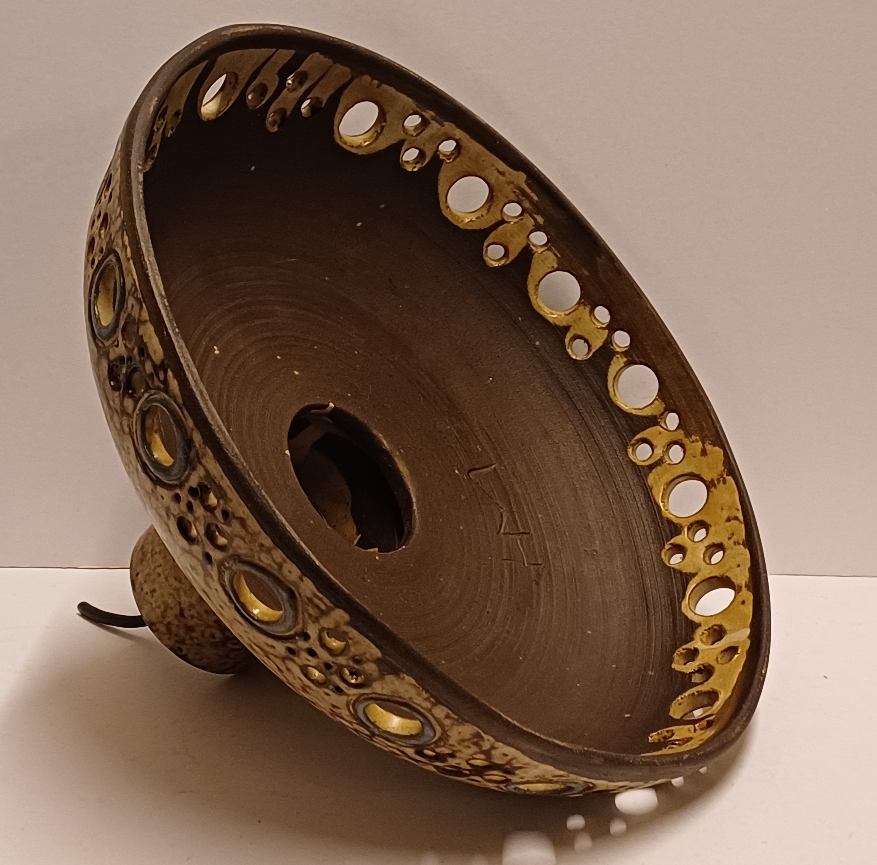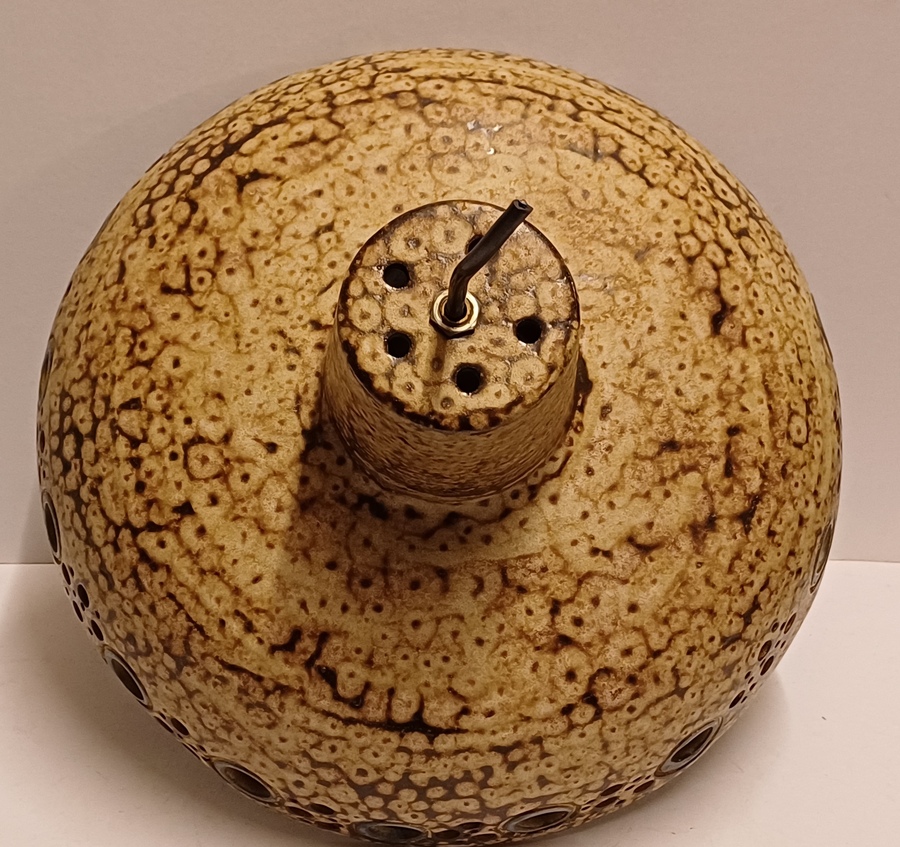 Zeldzame grote hanglamp met opengewerkte rand. Binnenzijde met monogram.