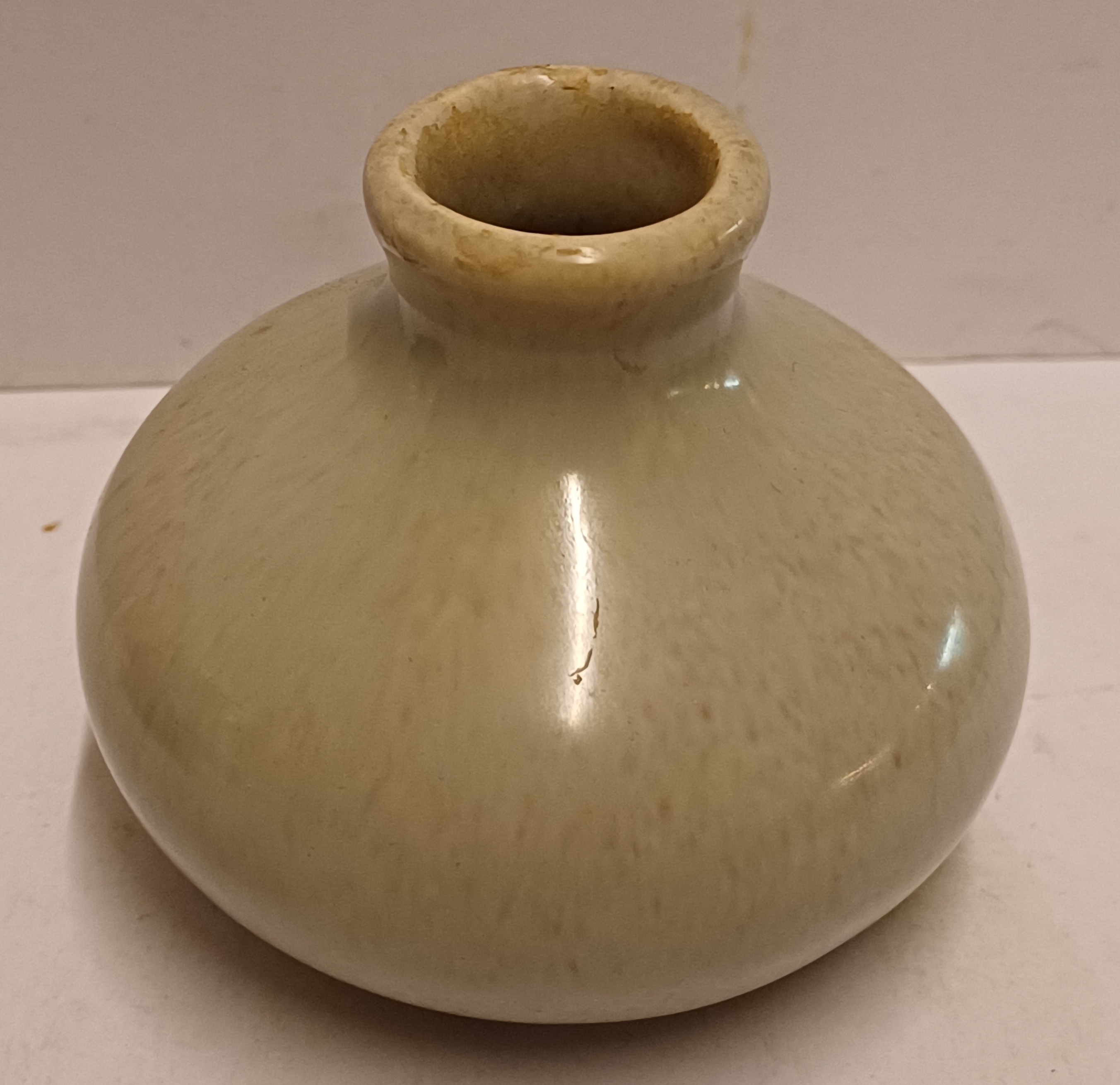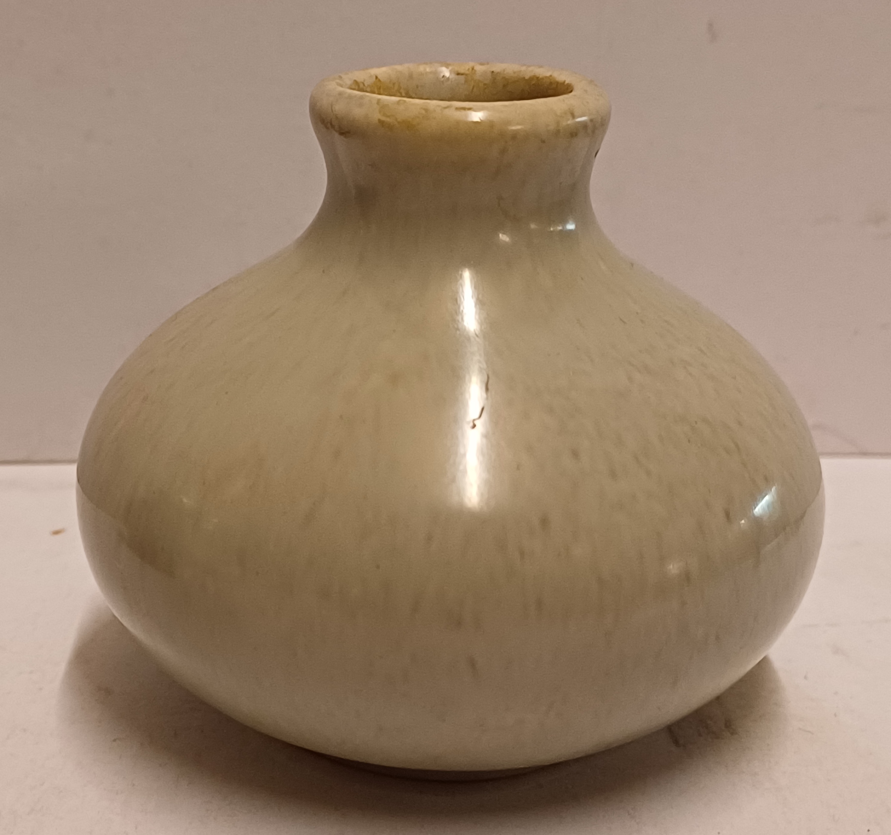 Miniatuur vaasje met grijze glazuur. Niet gesigneerd