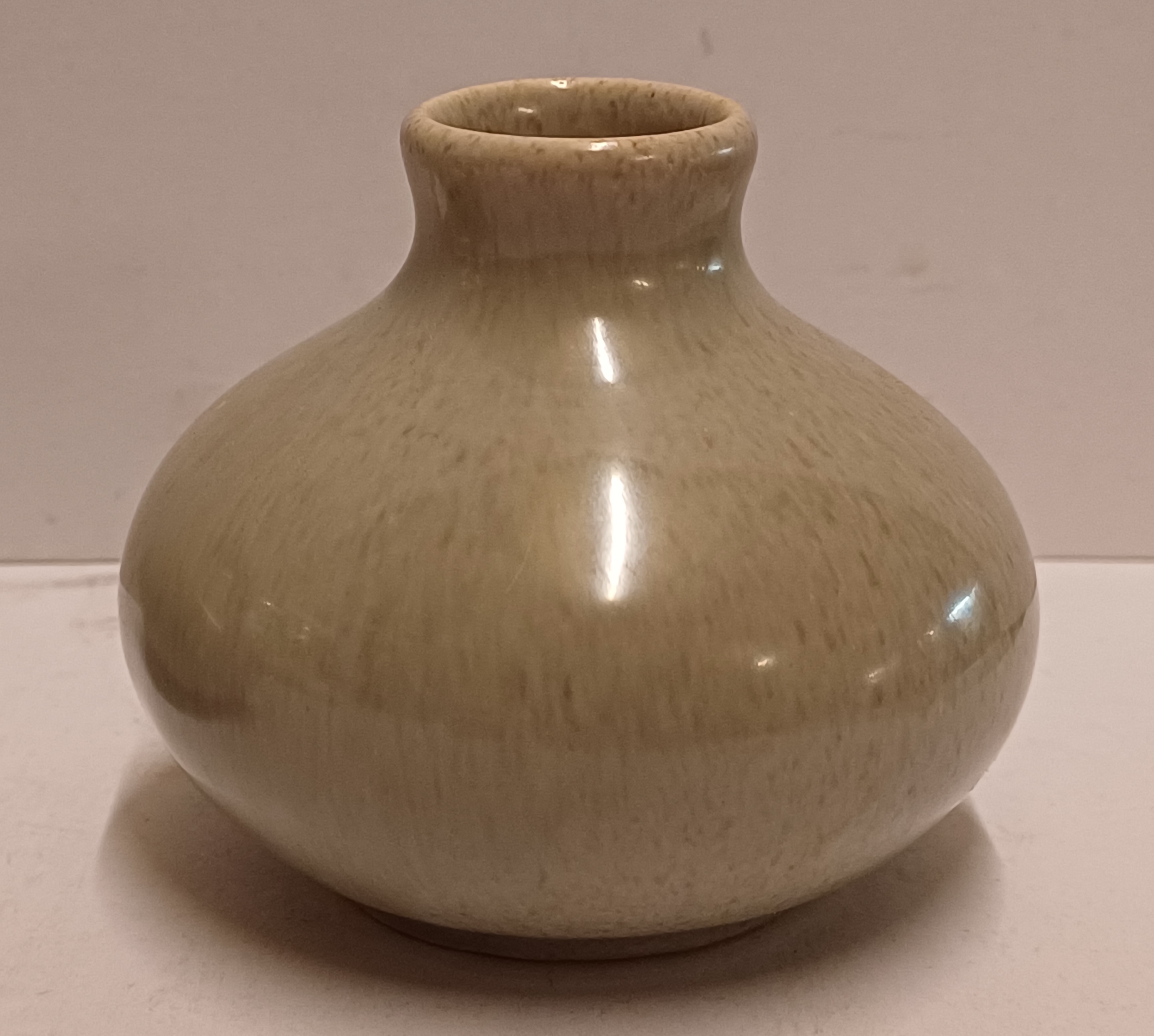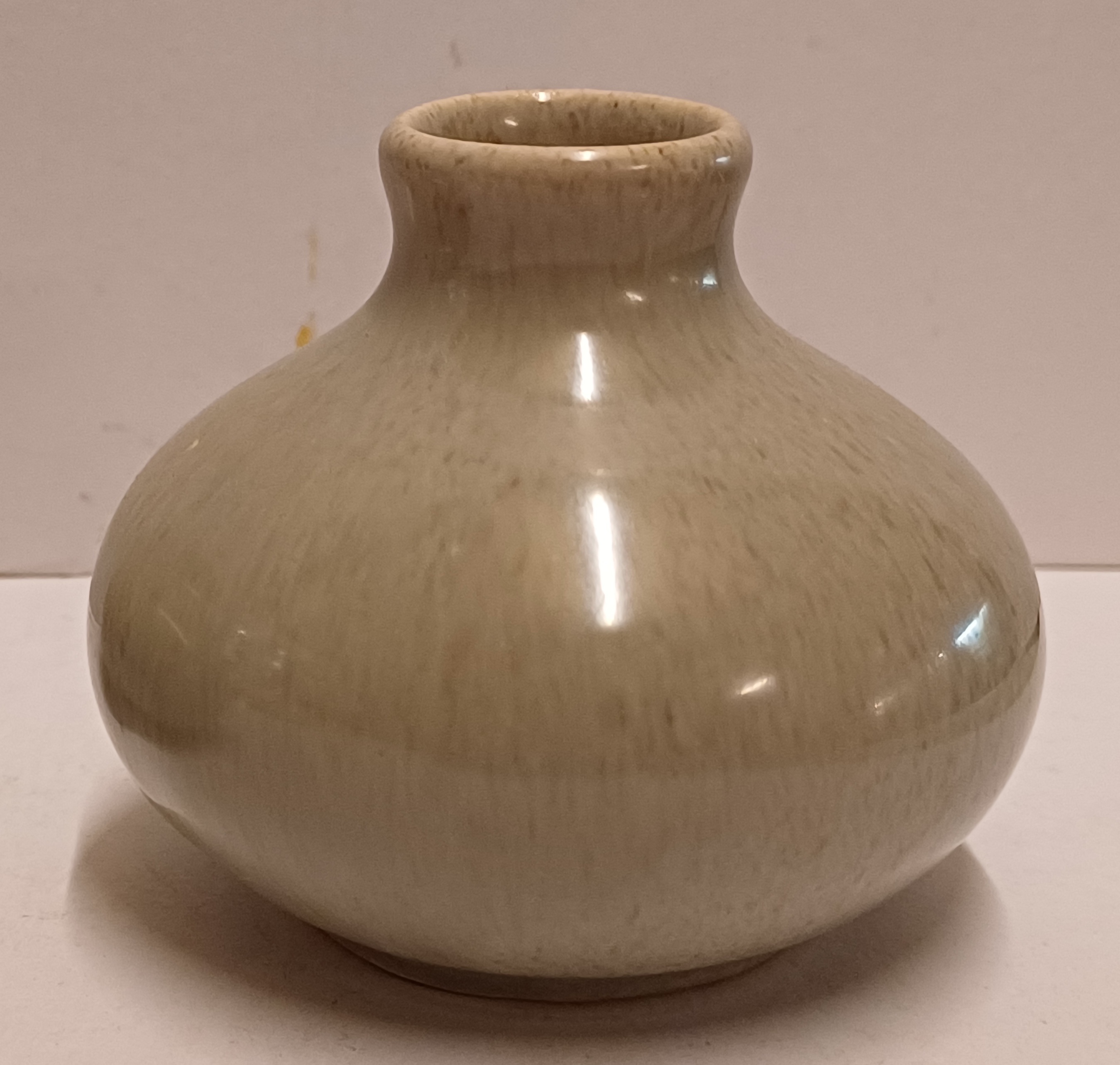 Miniatuur vaasje met grijze glazuur. Niet gesigneerd