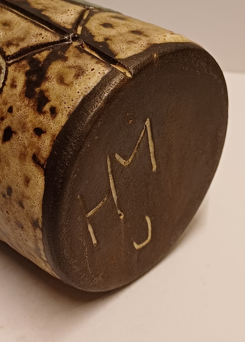 Aardewerken plantenhanger hoog model. Onderzijde gesigneerd.