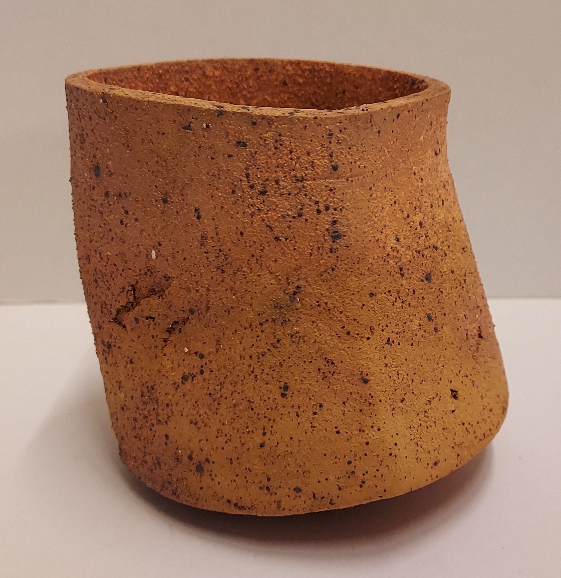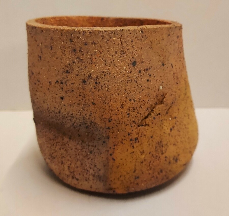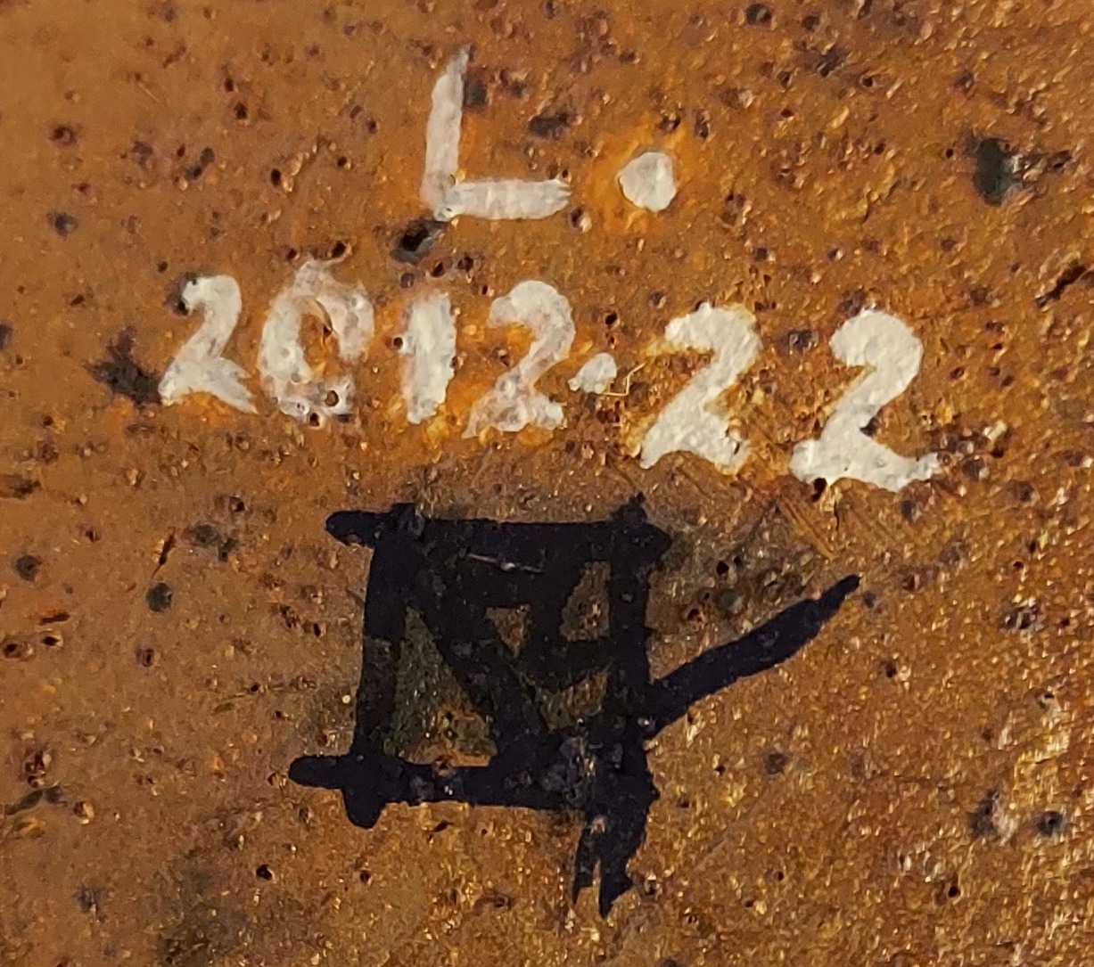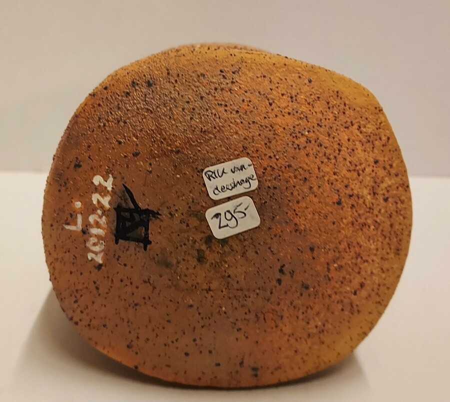 Een steengoed kom, roodbakkende klei, leunend model, gesigneerd met monogram en L. 2012.22.