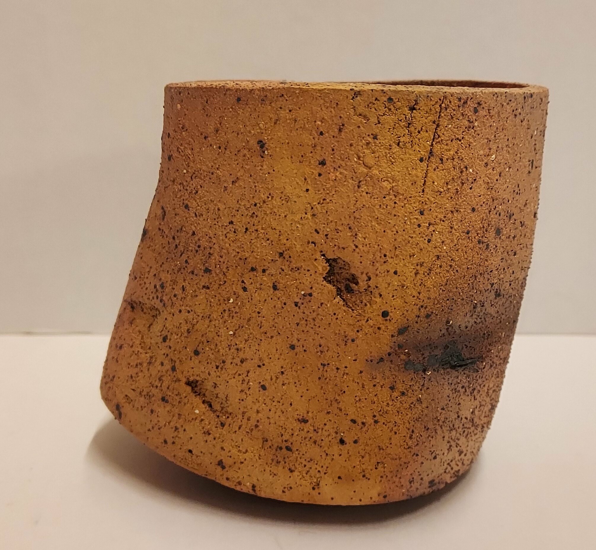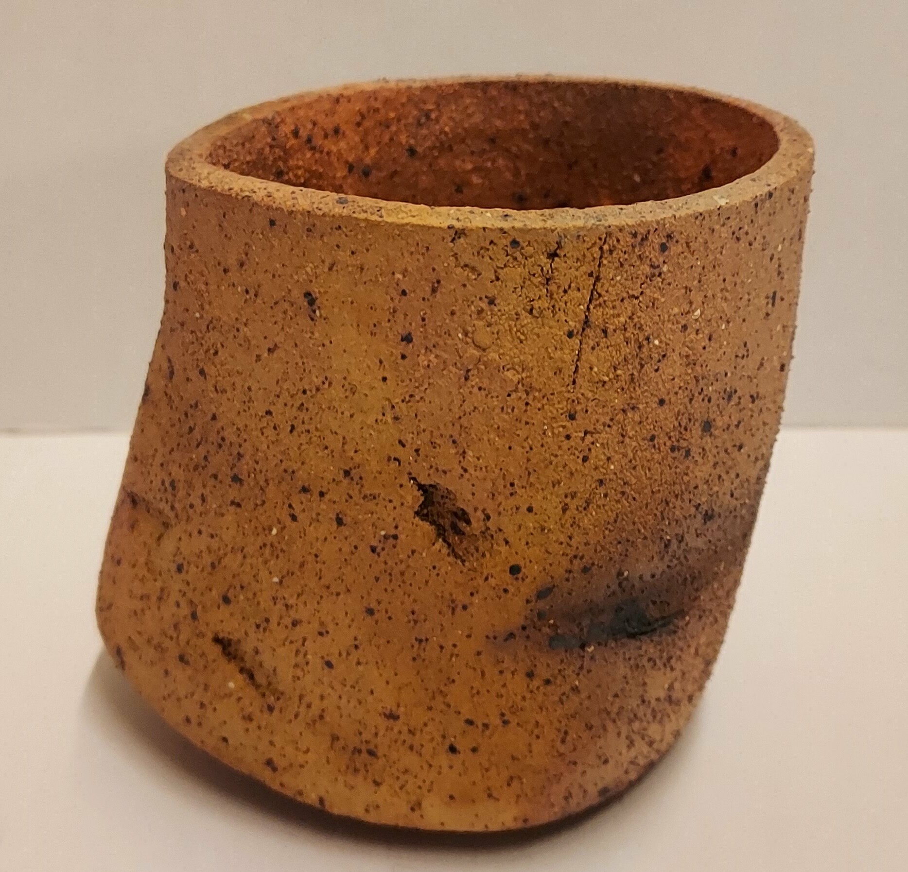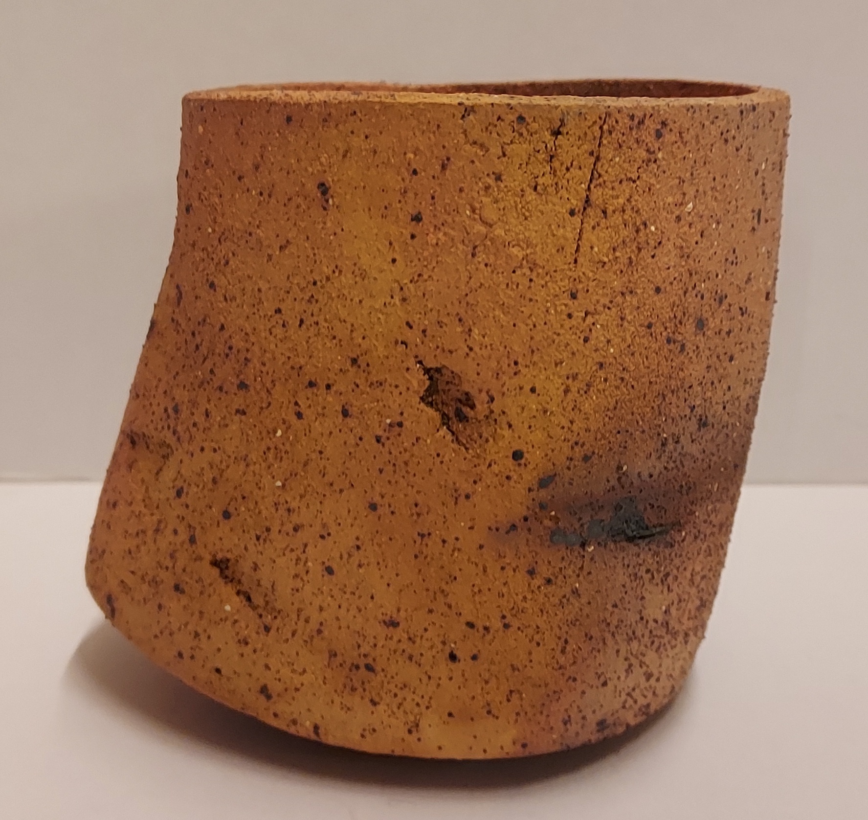 Een steengoed kom, roodbakkende klei, leunend model, gesigneerd met monogram en L. 2012.22.