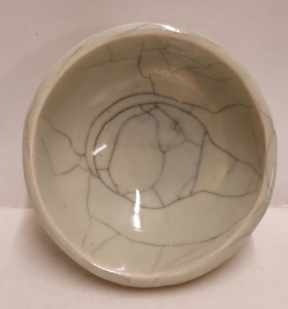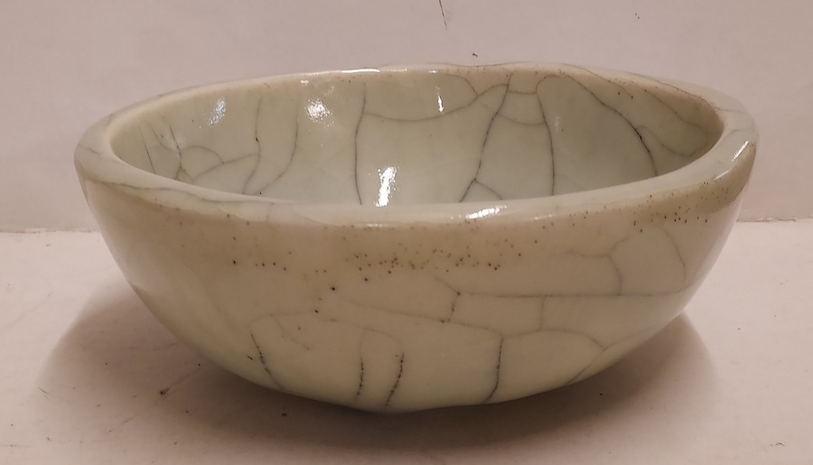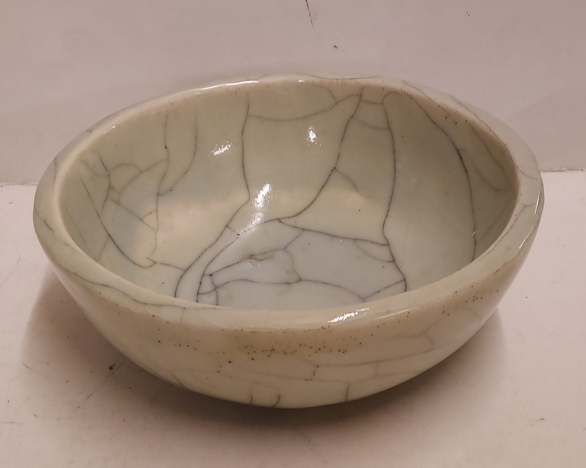Kom met groene gecraqueleerde glazuur. Onderzijde voluit gesigneerd.