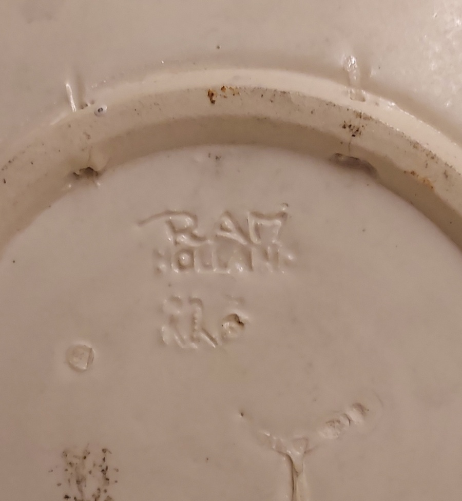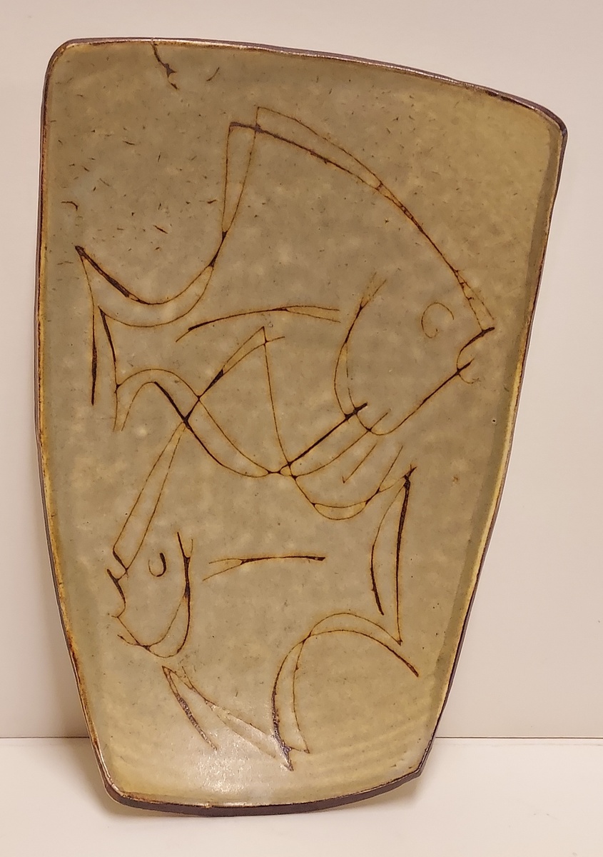 Met decor van 2 maanvissen. Achterzijde fabrieksmerk.