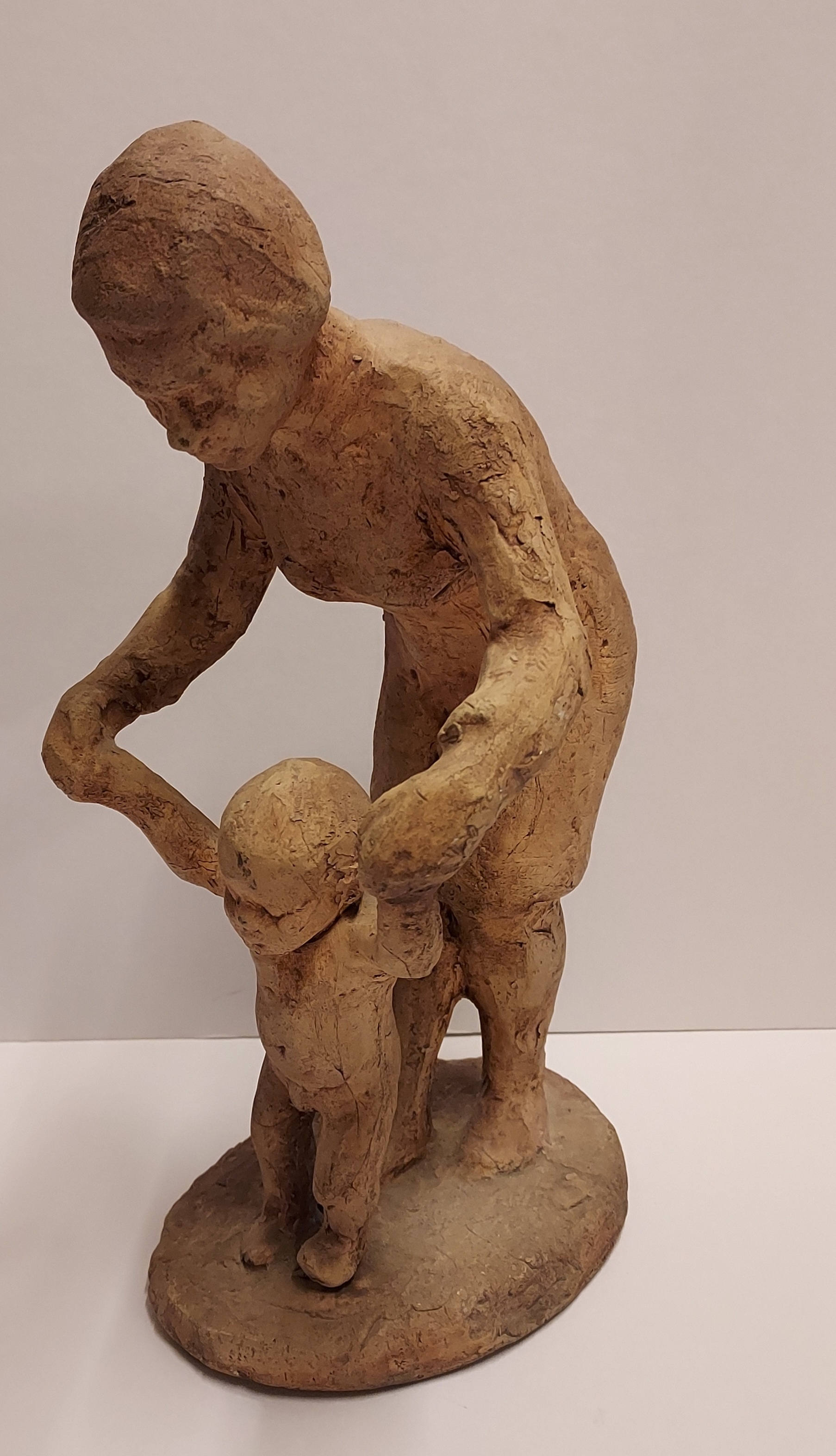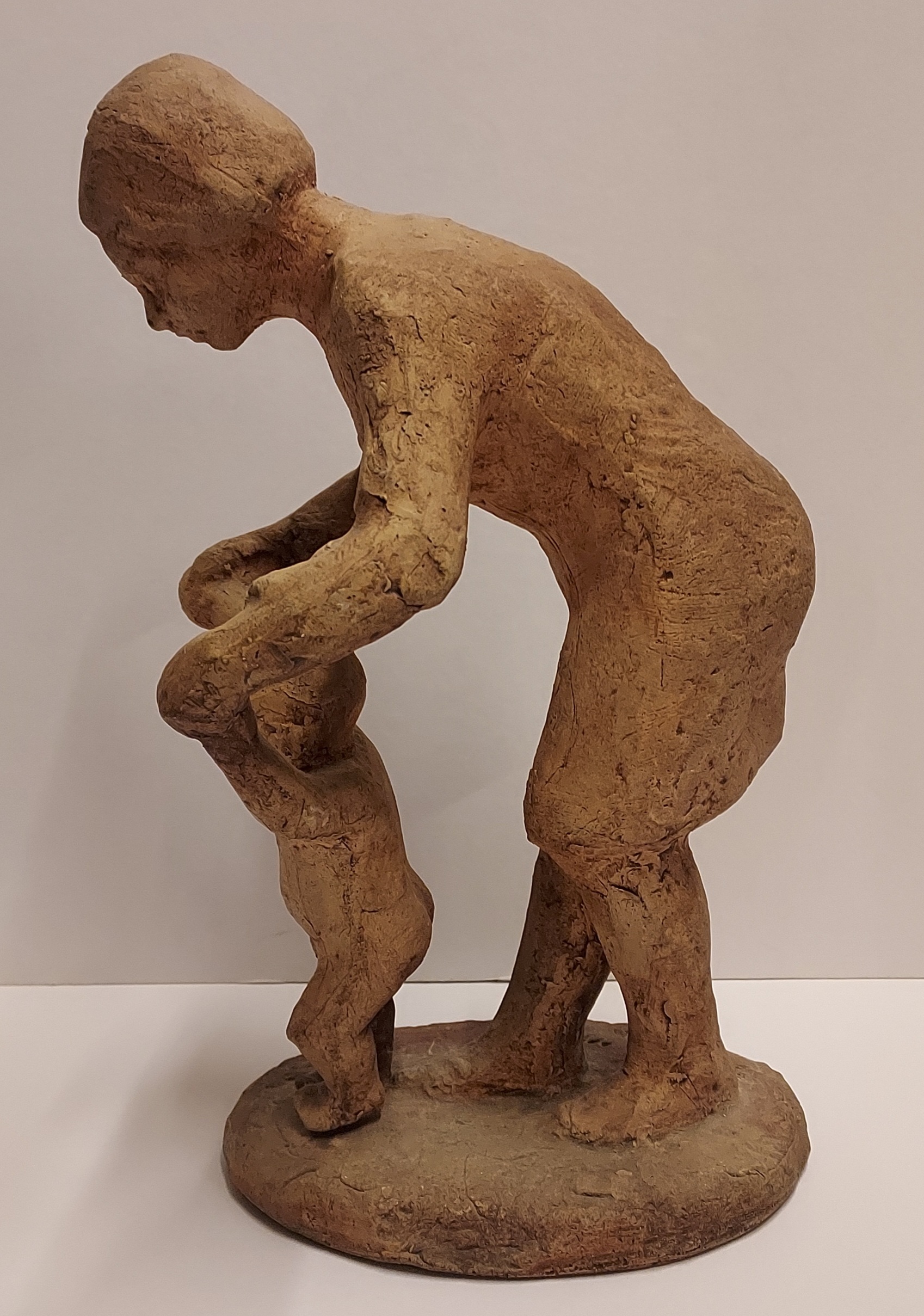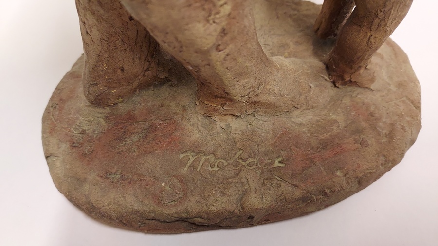 Aardewerken sculptuur naar ontwerp van Hanna Mobach. Moeder met kind. Gesigneerd op de voet.