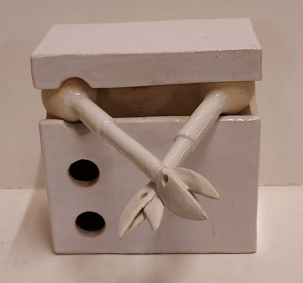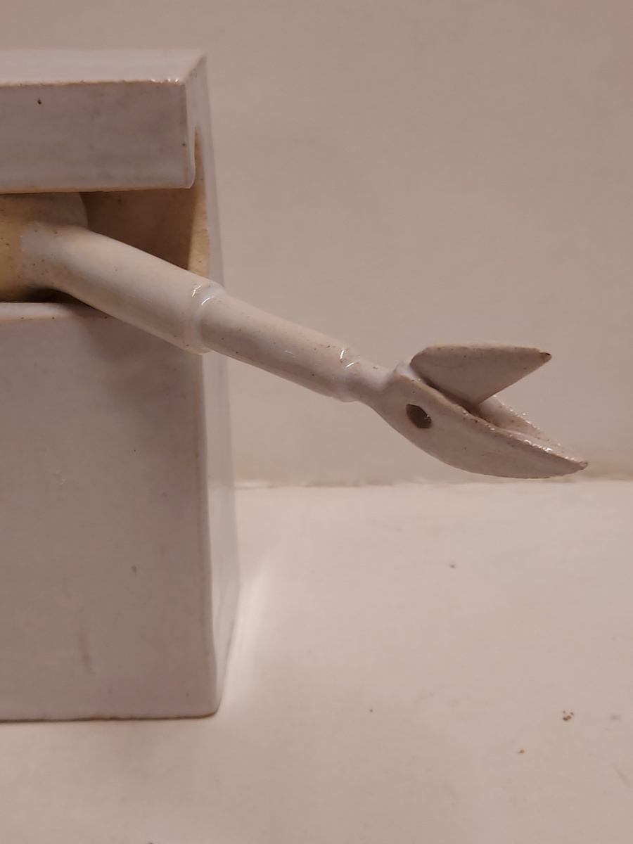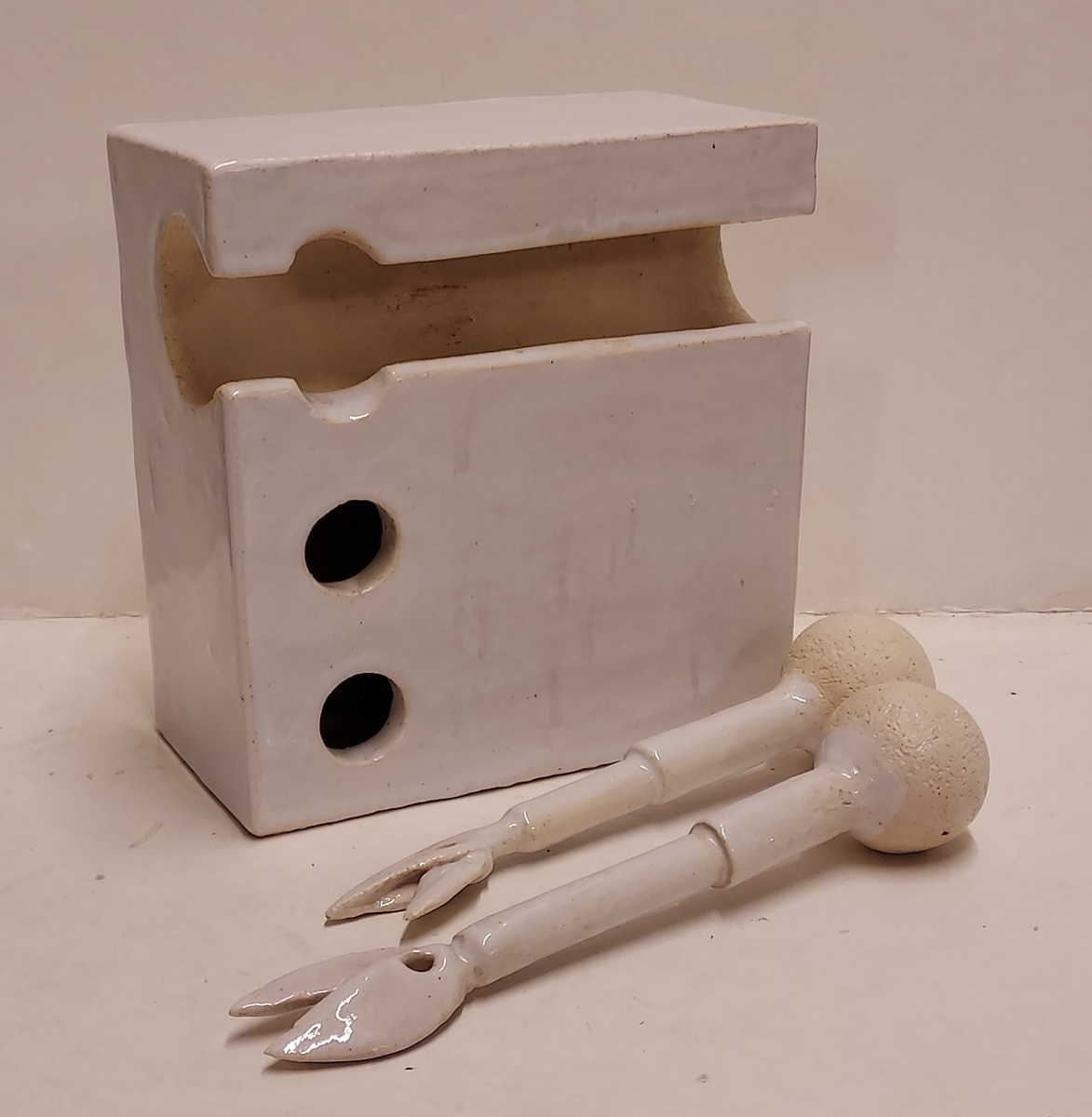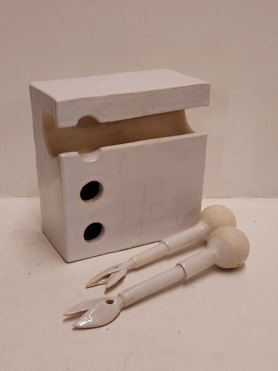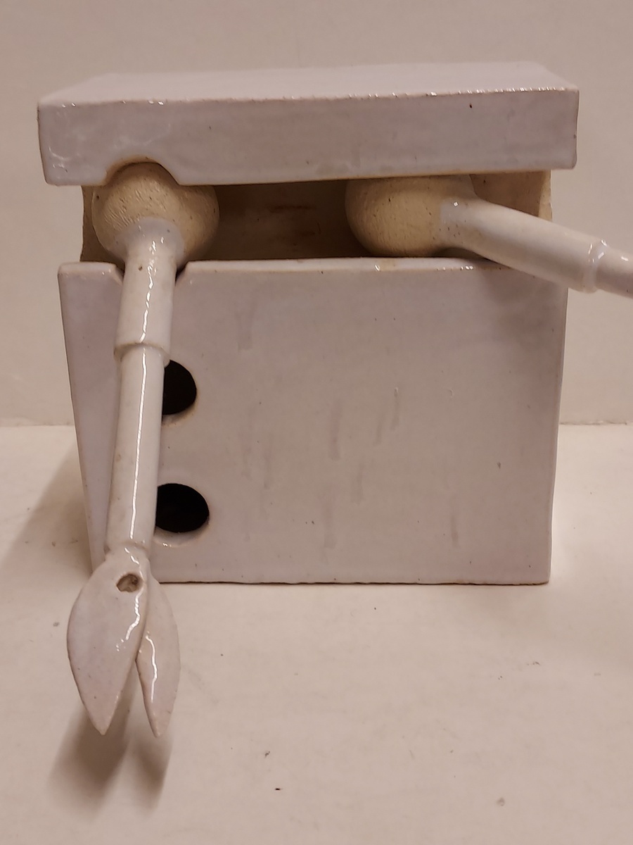 Keramische sculptuur met 2 beweegbare armen. Gesigneerd met monogram.