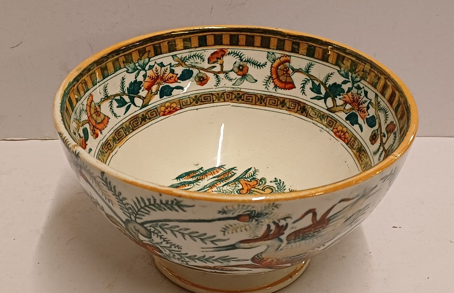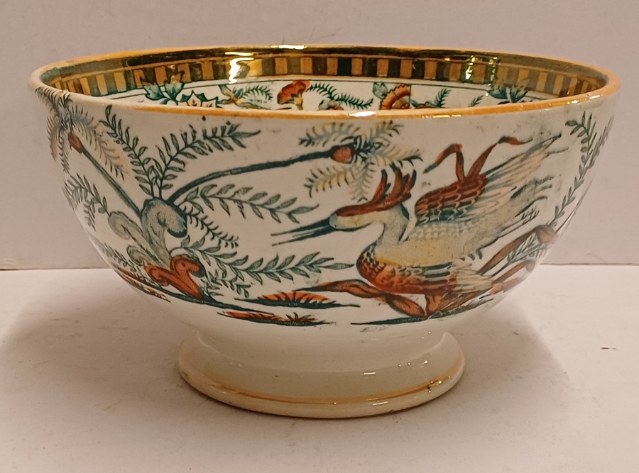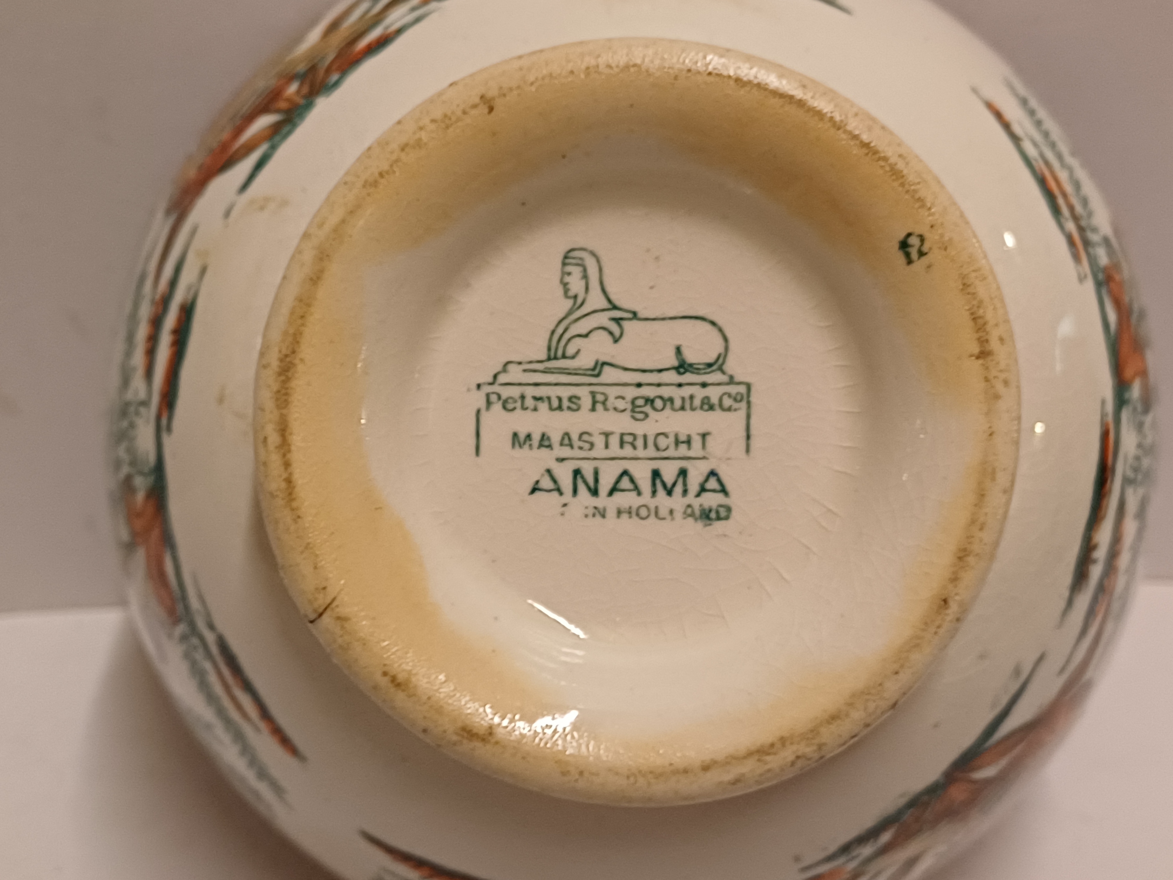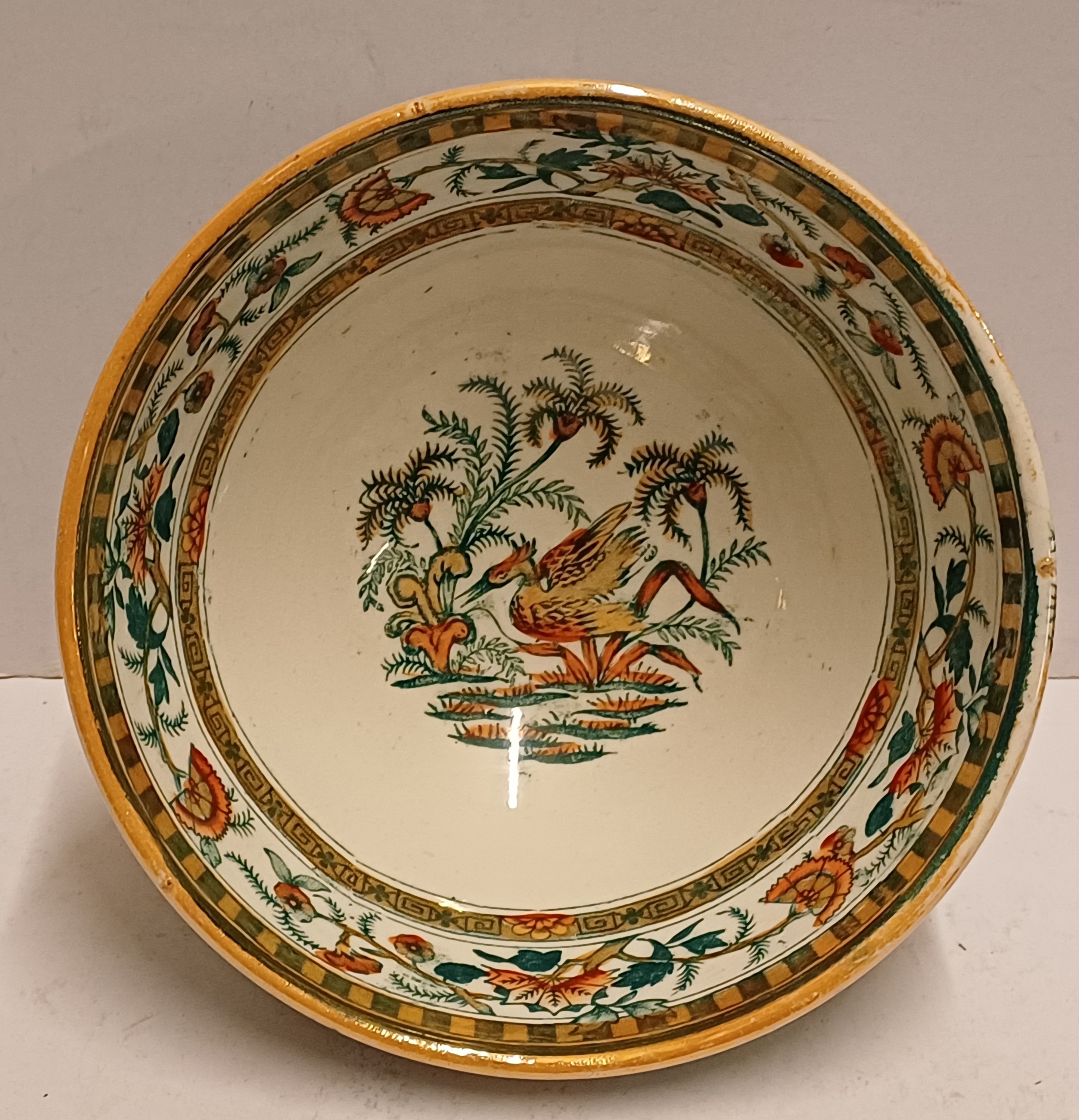 Aardewerken spoelkom met transfer decor Panama. Onderzijde met fabrieksmerk