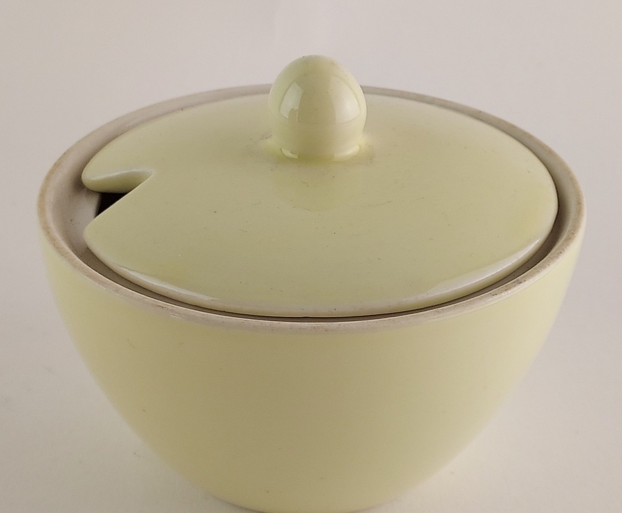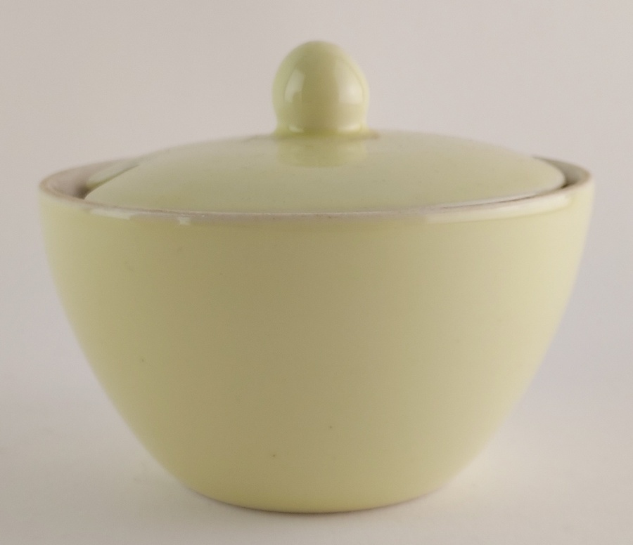 Gele suikerpot. Onderzijde met fabrieksstempel.