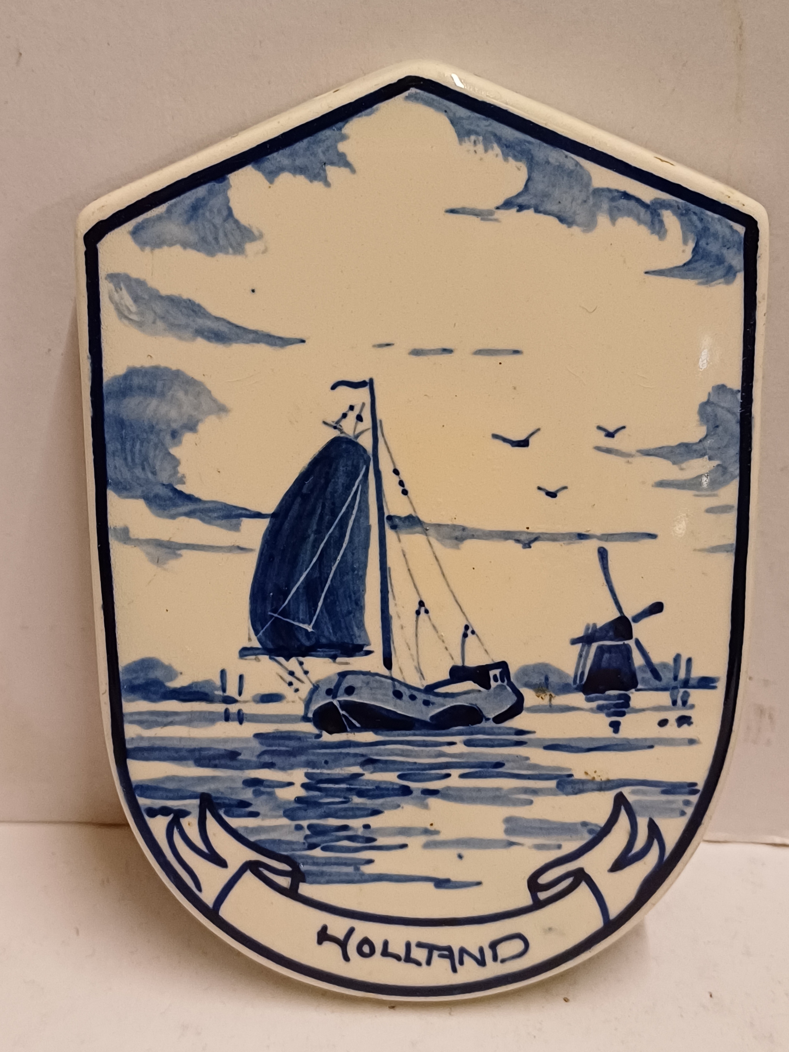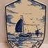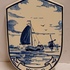 Delfts blauw gedecoreerde tegel van de Adco fabreike, met voorstelling van Tjalk in hollands landschap. Achterzijde gemerkt